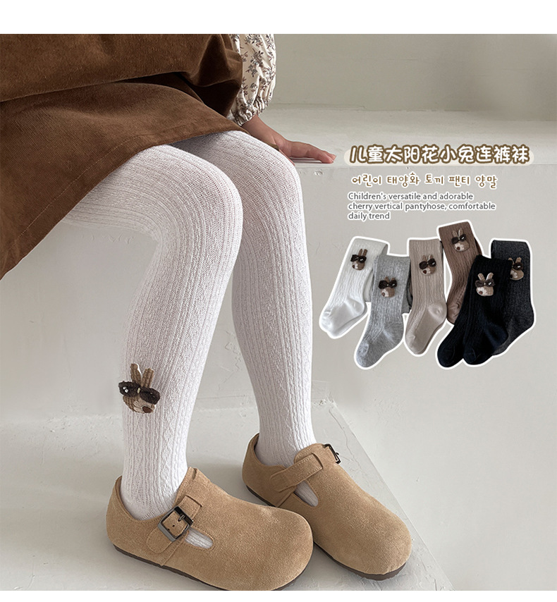 2024 새로운 봄과 가을 소녀 레깅스 작은 다이아몬드 해바라기 토끼 아기 어린이 레깅스 소녀 바지