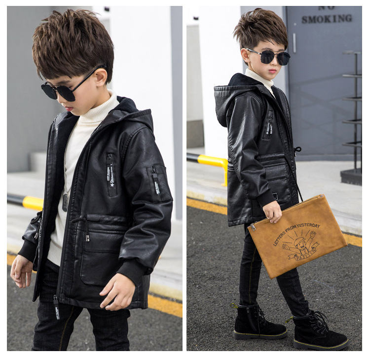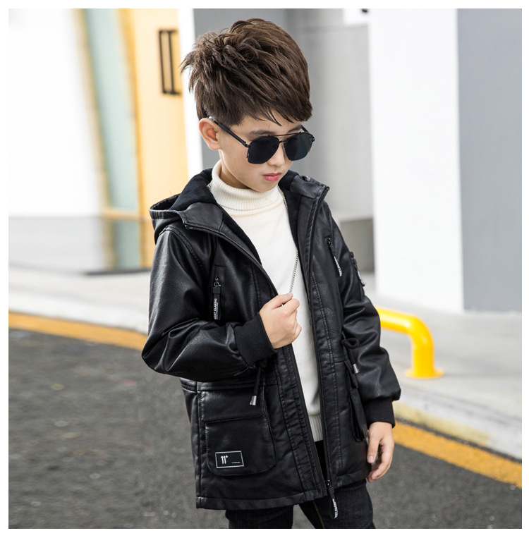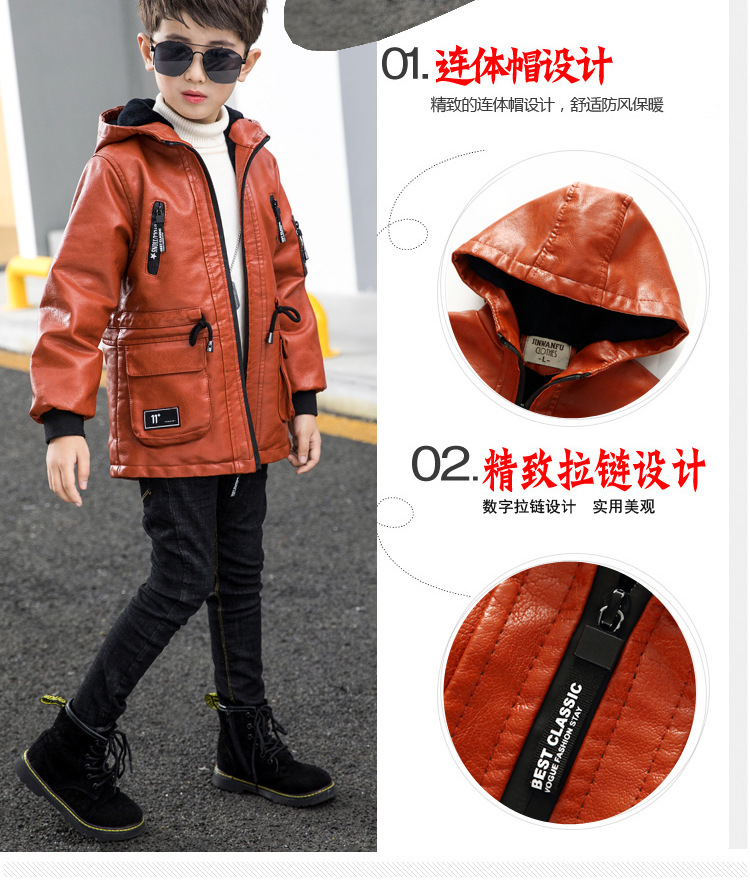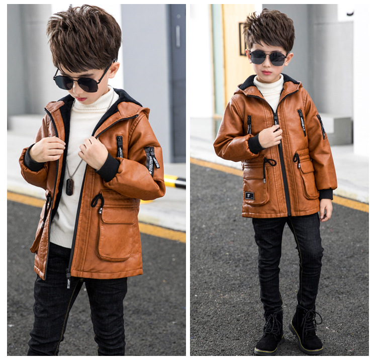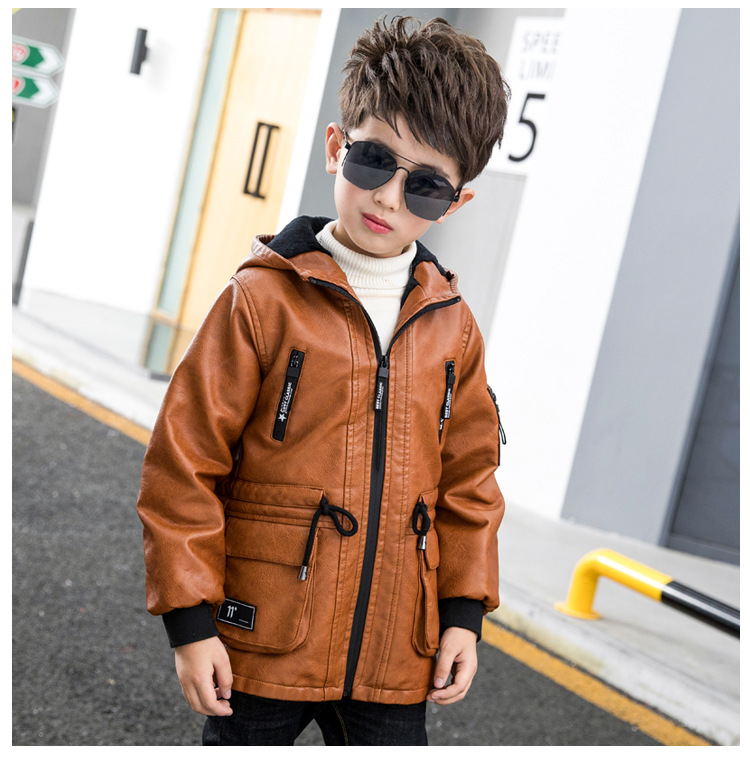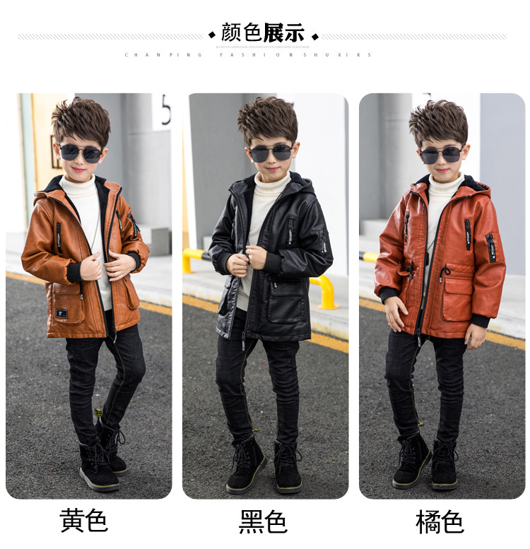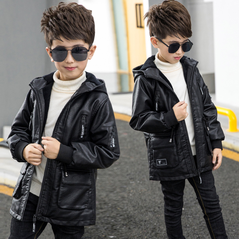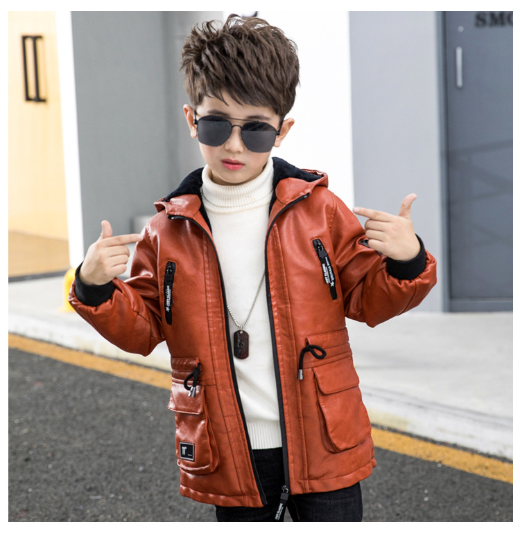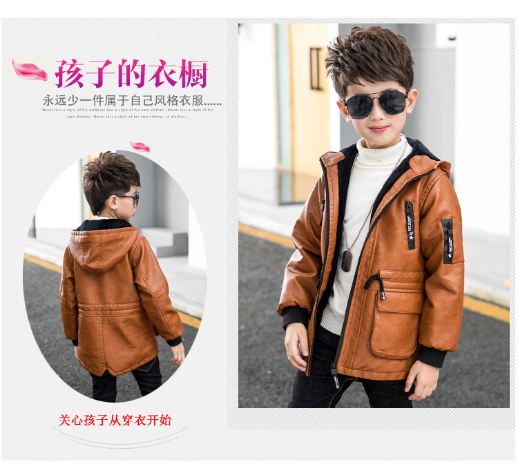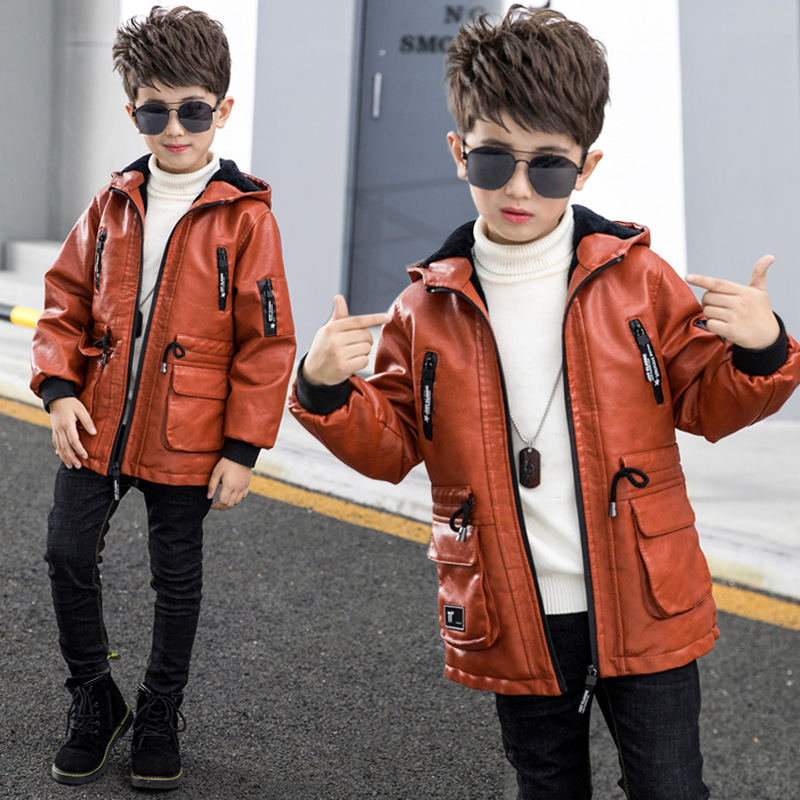 남아용 가죽 코트, 기모 안감, 두꺼운 보온 PU 재킷, 중대형 아동용 2025 겨울 신상 파카 스타일 상의스토어 가기
