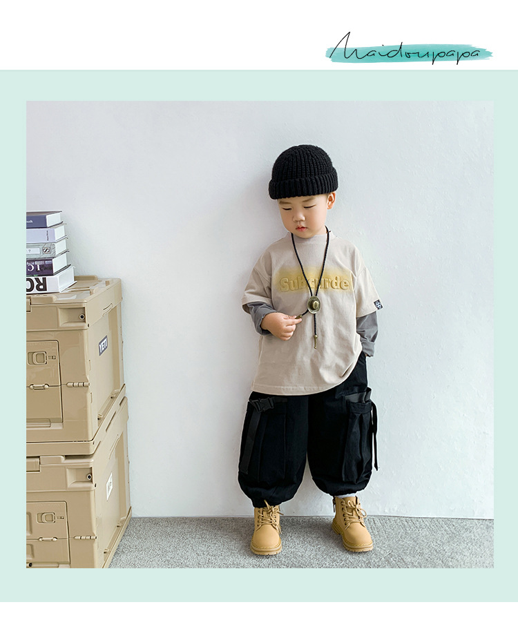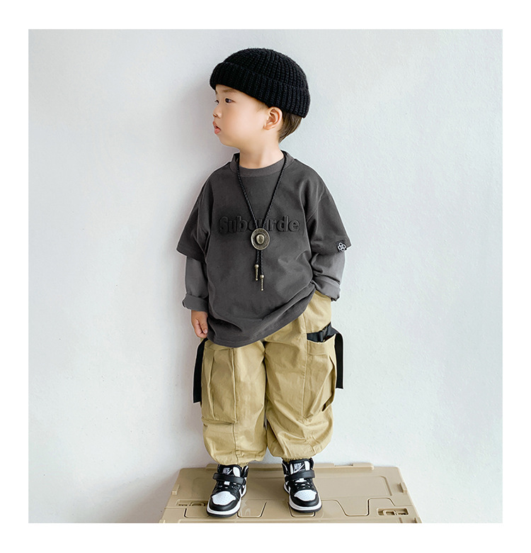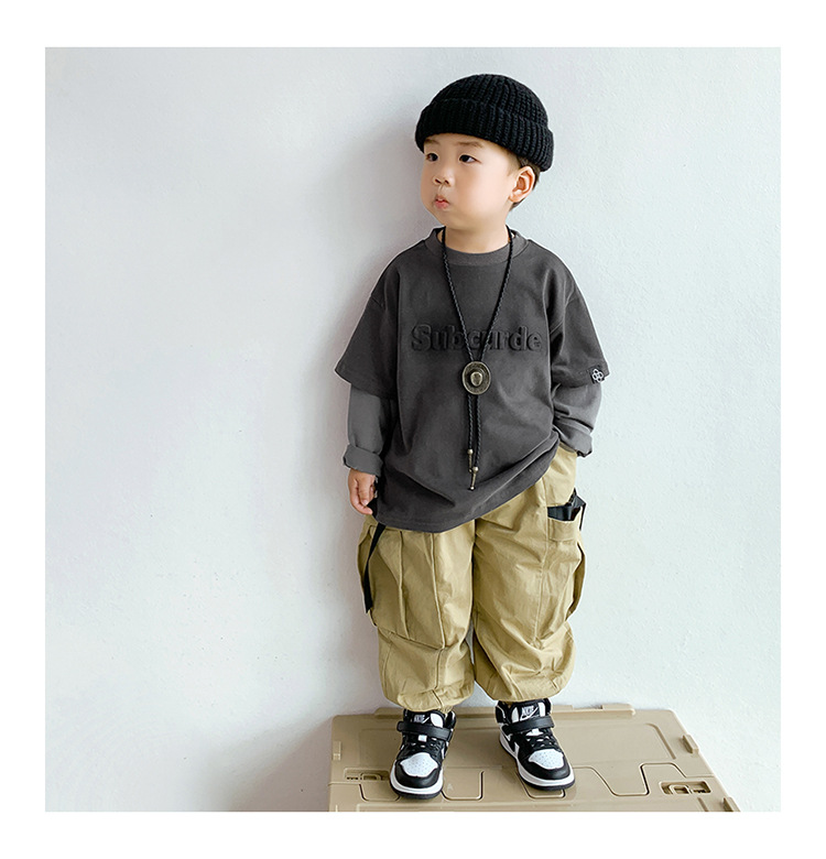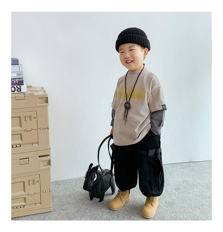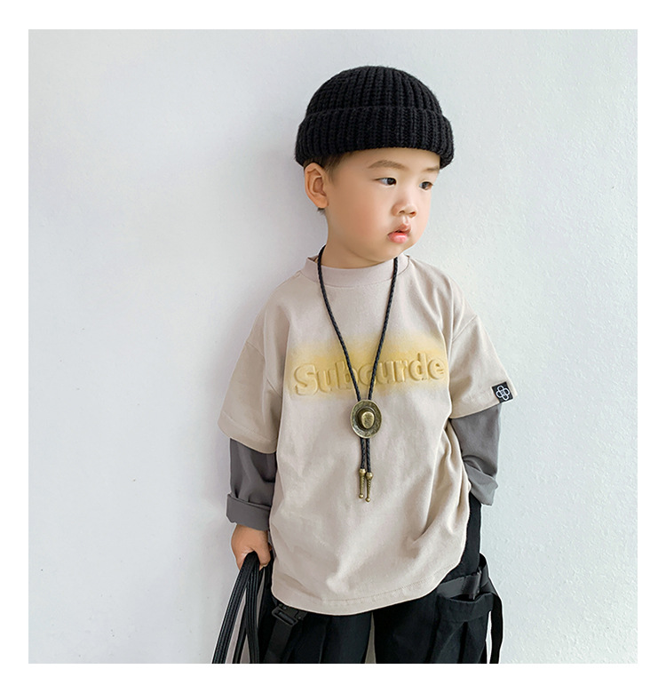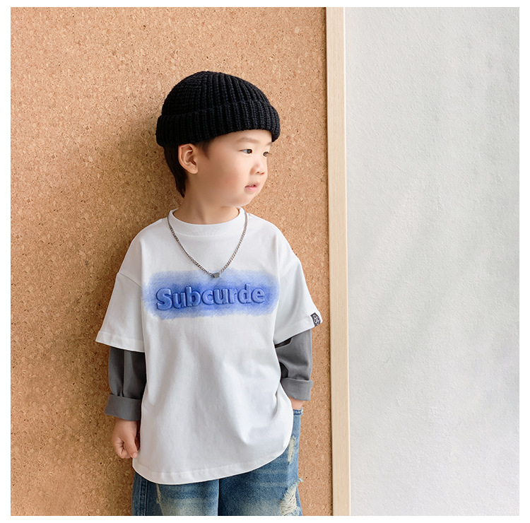 [7A 항균] AINI 어린이 양털 가짜 투피스 긴소매 티셔츠 봄 · 가을 기모 중대형 아동복 베이스 셔츠스토어 가기