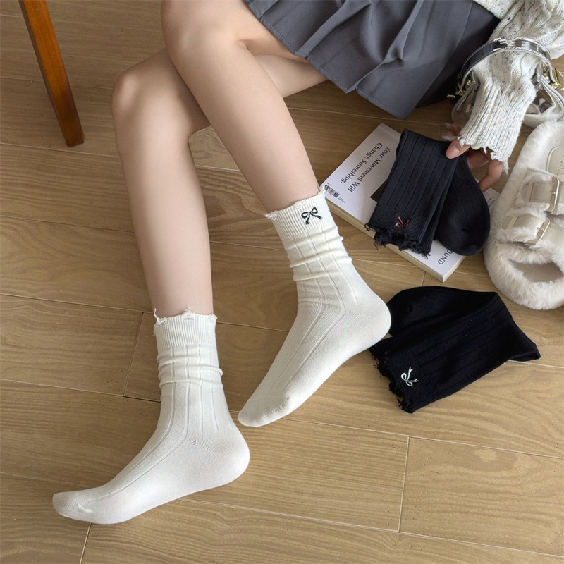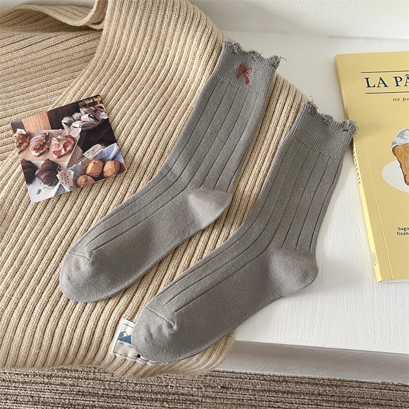 가을 2024 새로운 립 수직 활 자수 튜브 양말 단색 코튼 올매치 인 트렌드 더미 양말