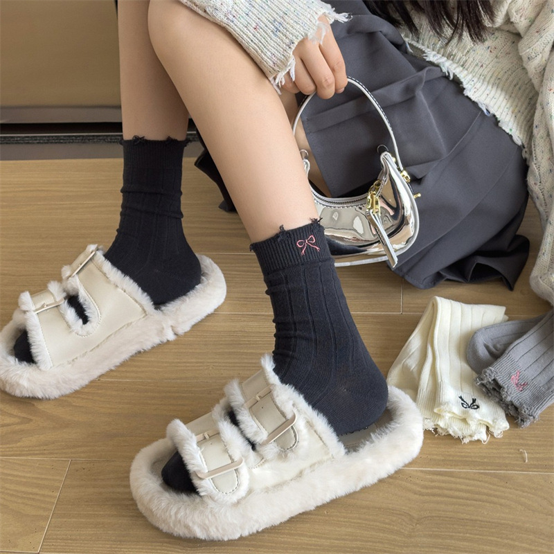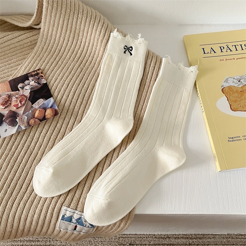 가을 2024 새로운 립 수직 활 자수 튜브 양말 단색 코튼 올매치 인 트렌드 더미 양말스토어 가기