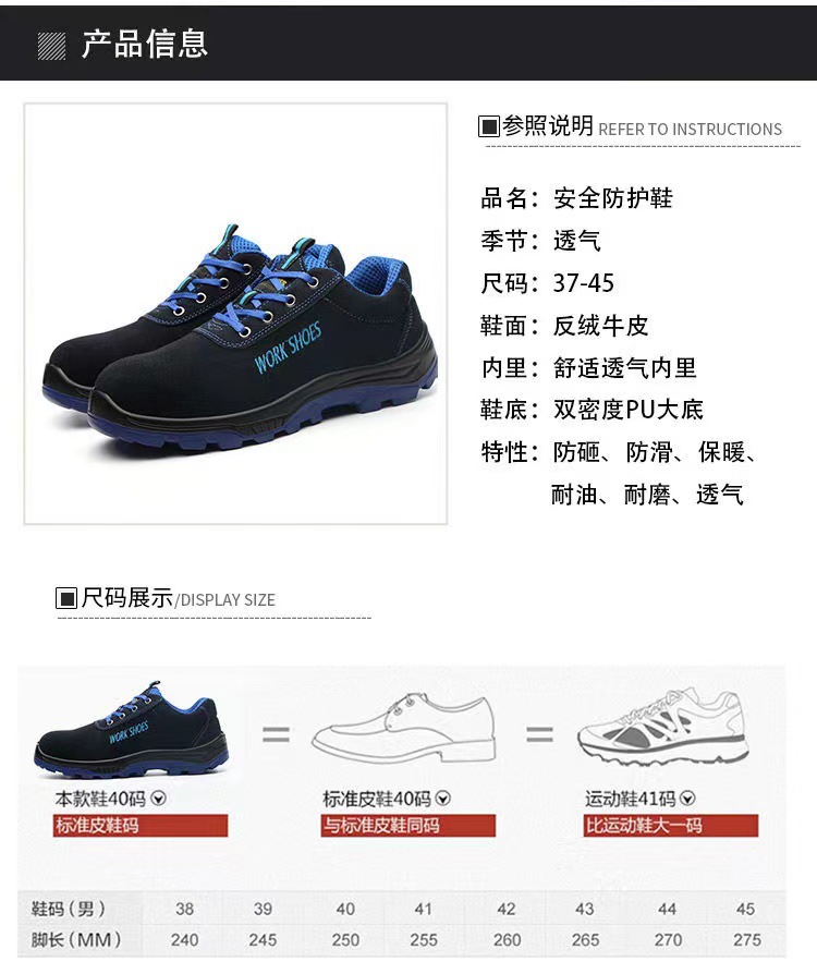 사계절 낮은 남성 노동 보호 신발 미끄럼 방지 건설 현장 착용 보호 안전 신발 국경 간 노동 보호 신발 도매스토어 가기
