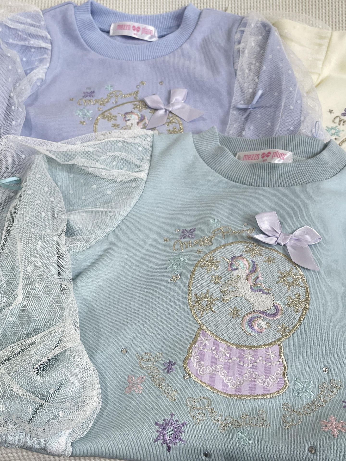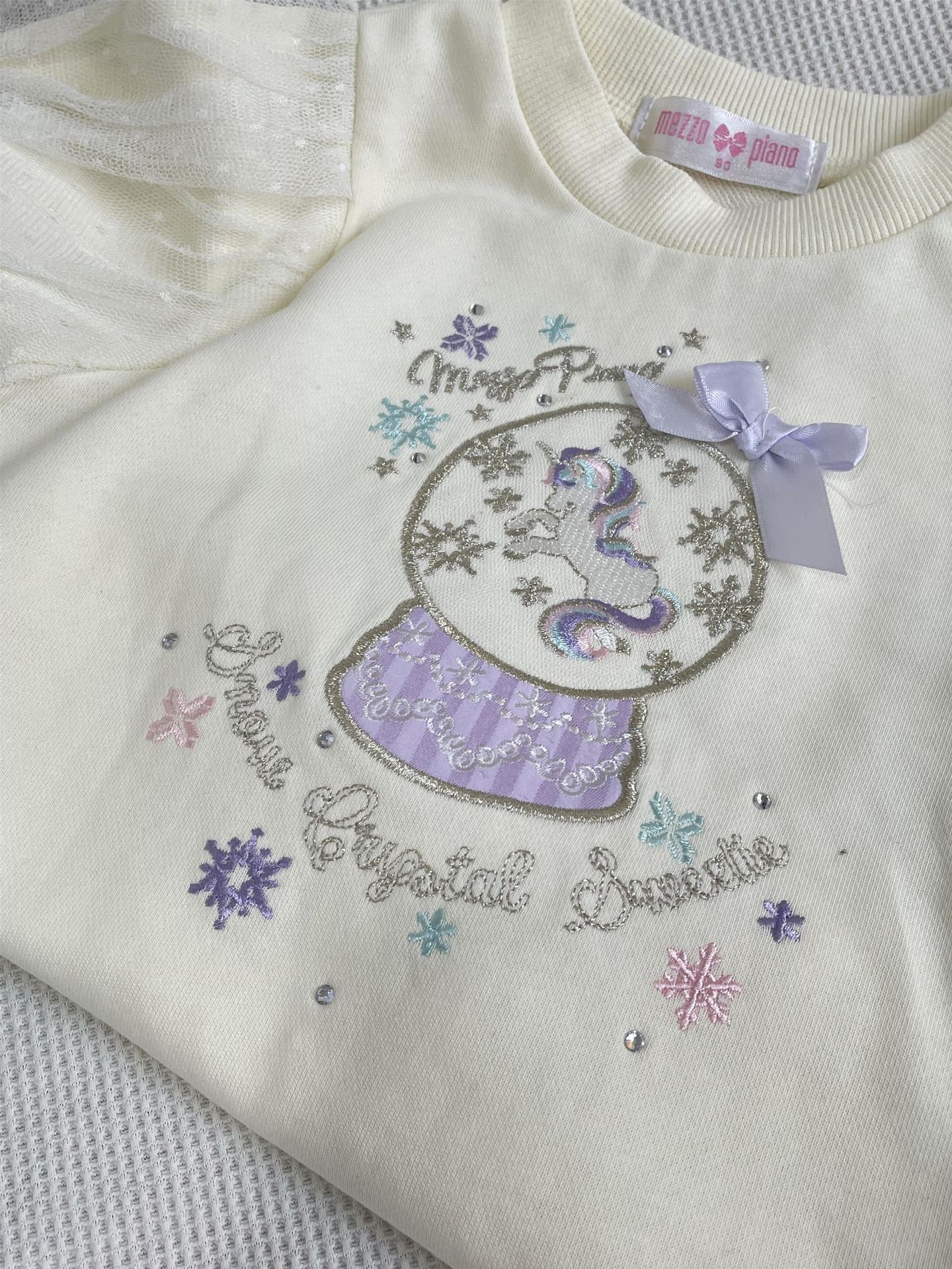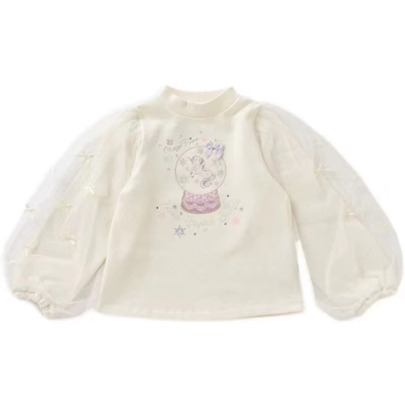2024 가을 소녀 유니콘 크리스탈 볼 버블 슬리브 스웨터