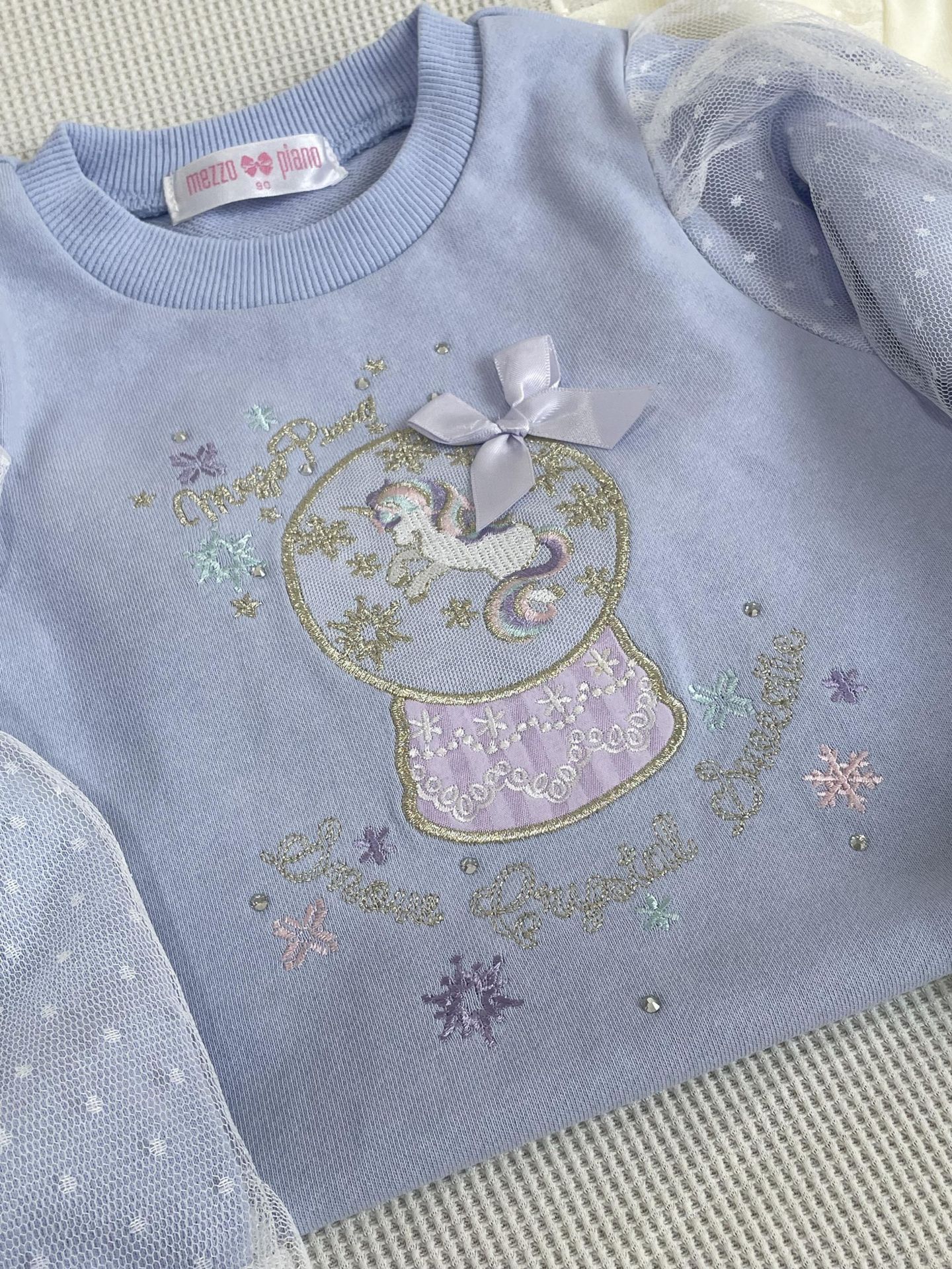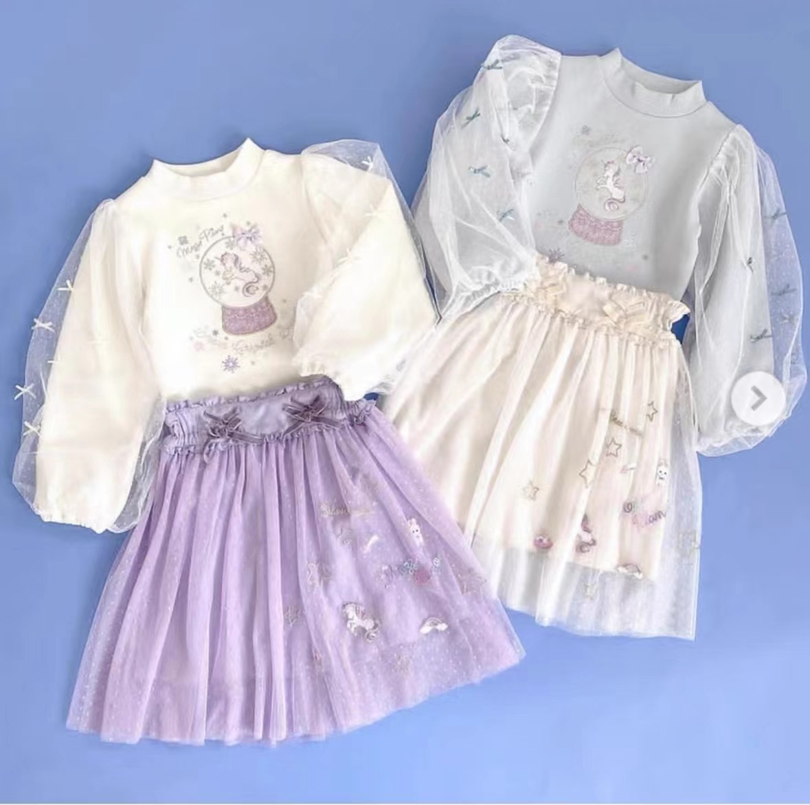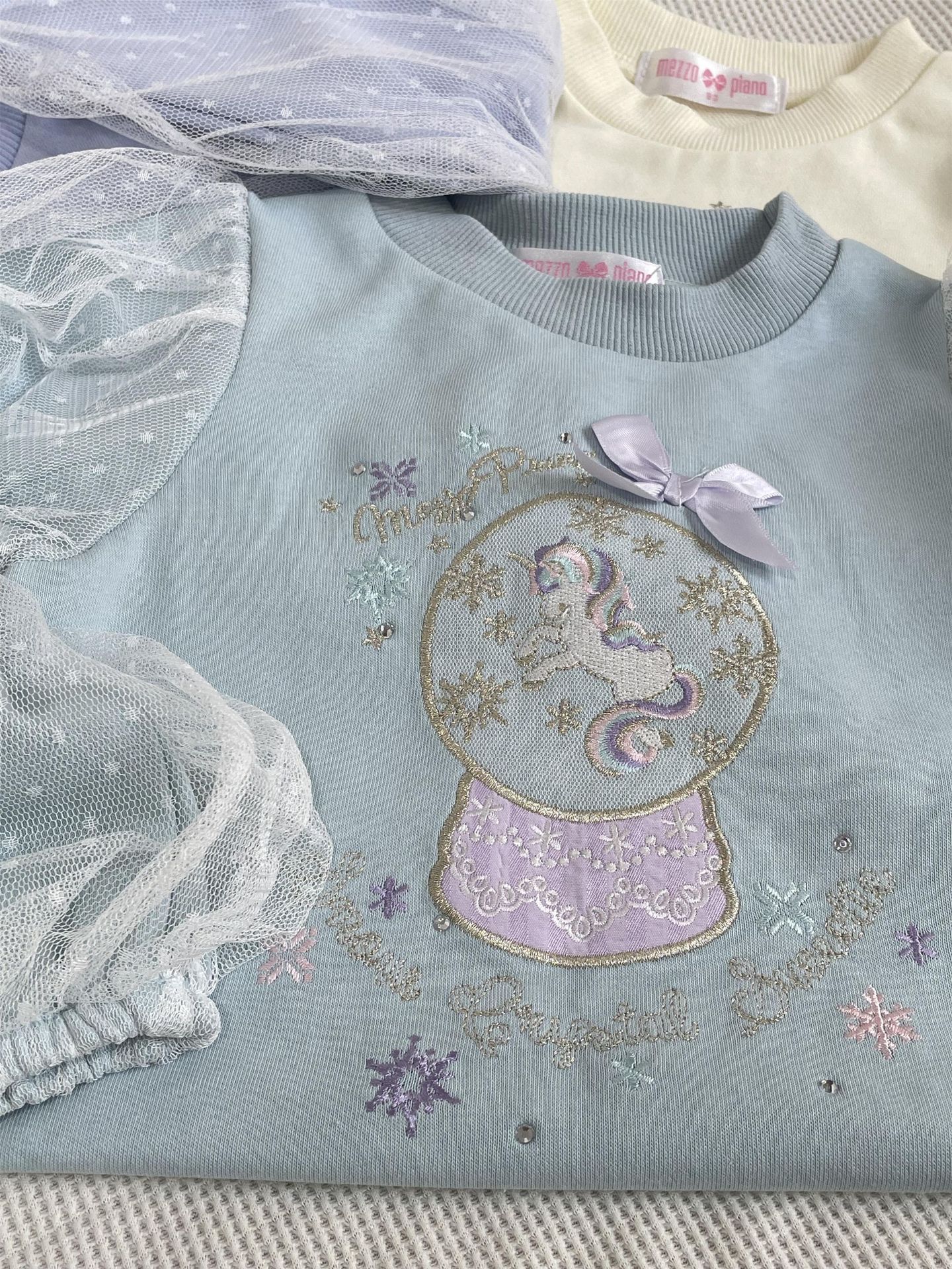 2024 가을 소녀 유니콘 크리스탈 볼 버블 슬리브 스웨터