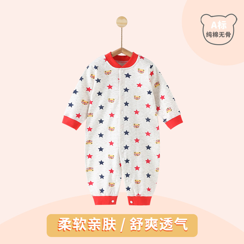 아기 옷 봄과 가을 점프 수트 순수 코튼 신생아 하퍼 속옷 긴팔 크롤링 옷 홈 파자마