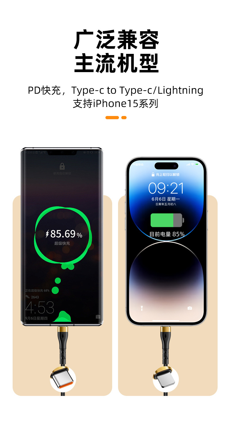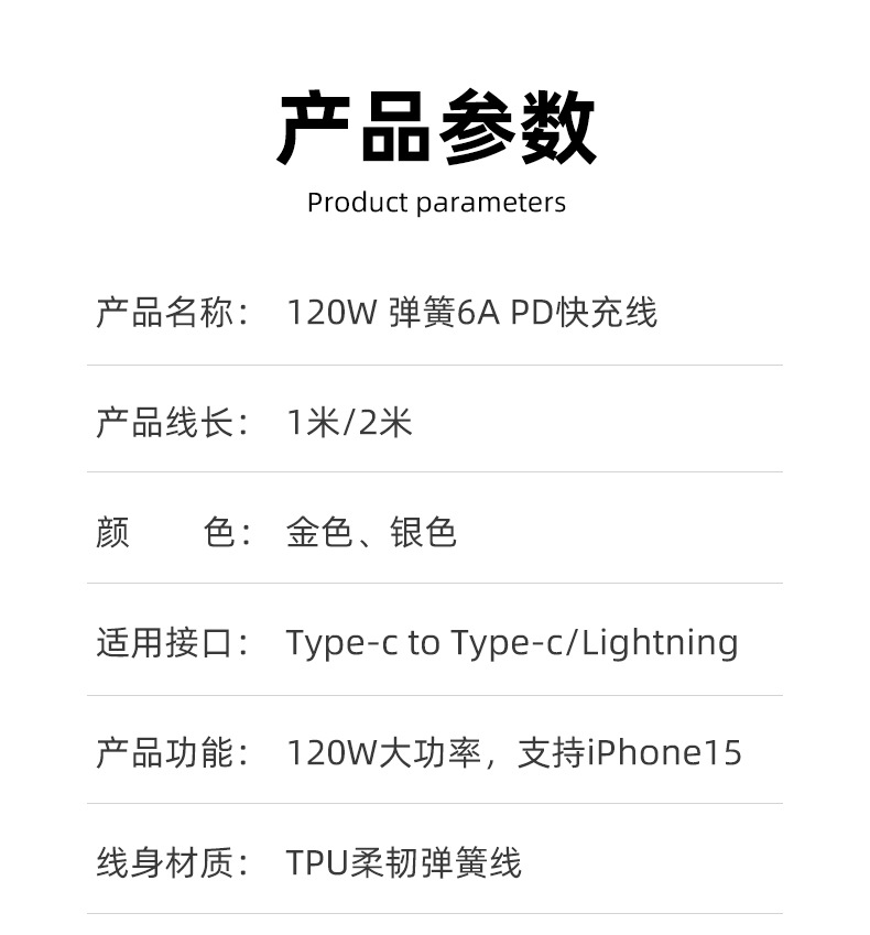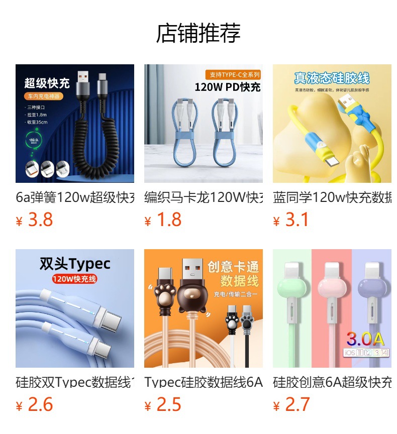 봄 120W 빠른 충전 듀얼 Typec 데이터 케이블 애플 15 화웨이 샤오미 컴퓨터 6A 충전 라인 국경스토어 가기