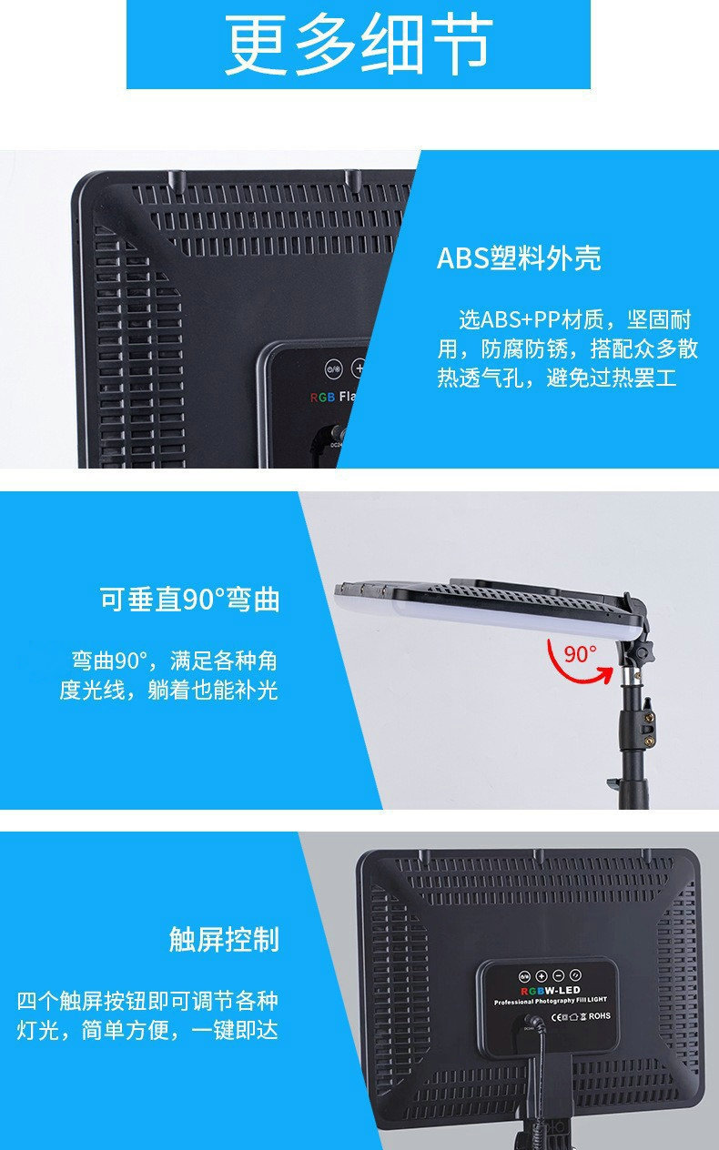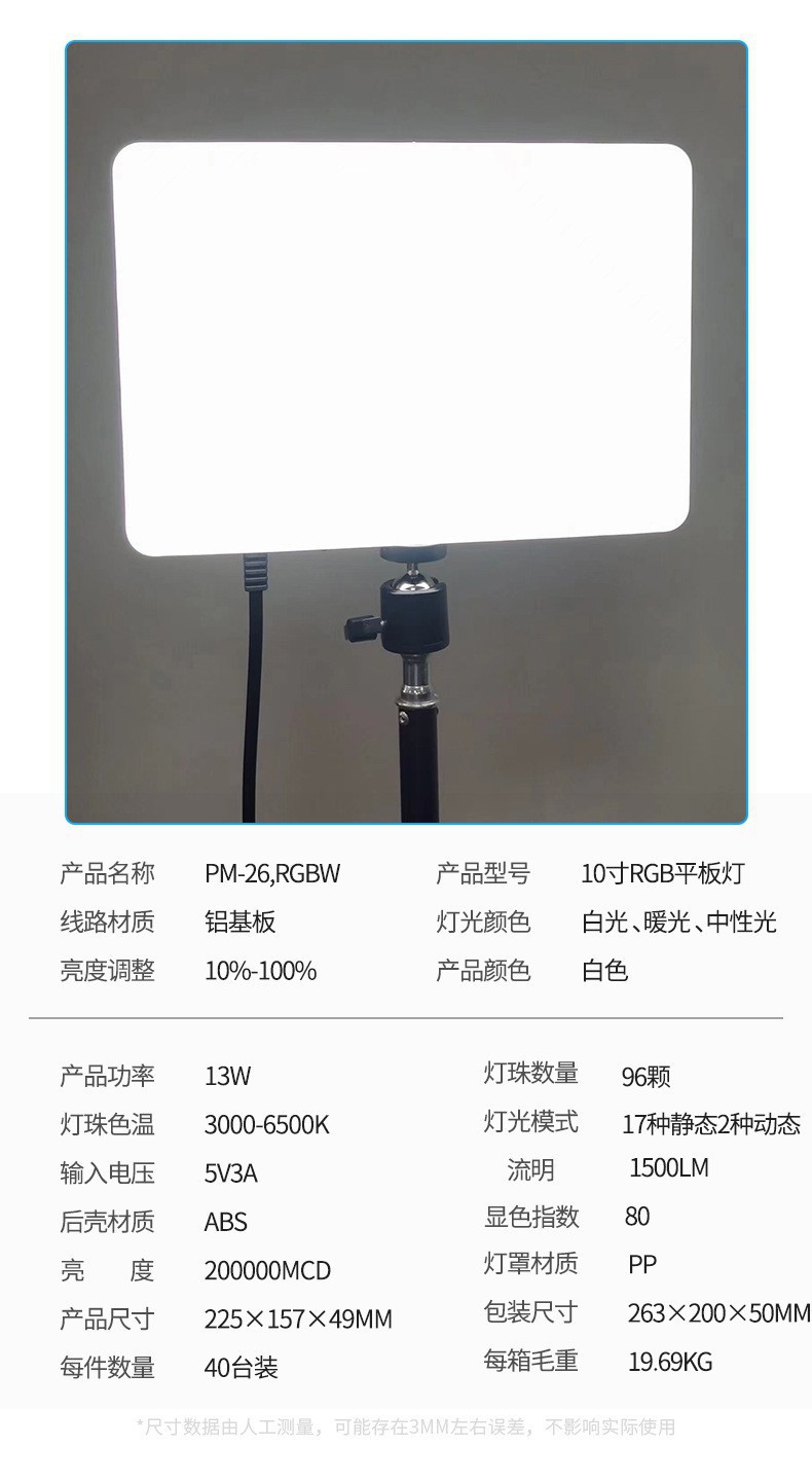 PM26 분위기 빛 10 인치 평면 채우기 빛 라이브 사진 셀카 LED 조명 빛 부드러운 빛 RGB 사각형 빛