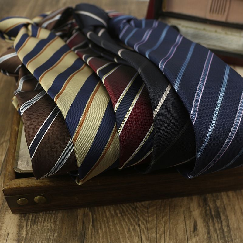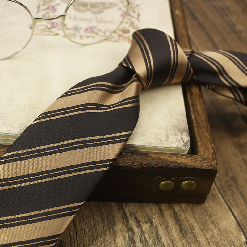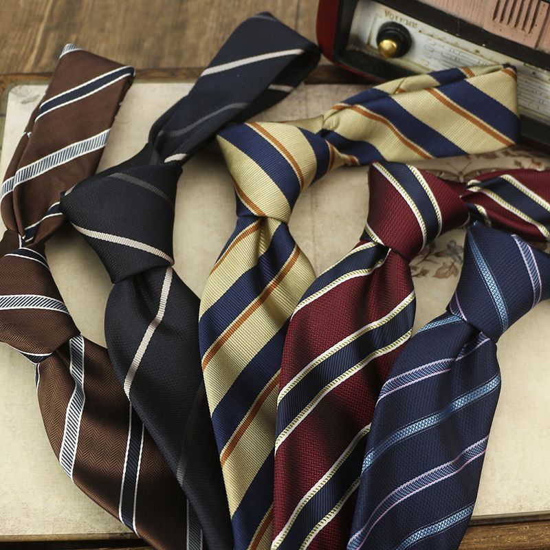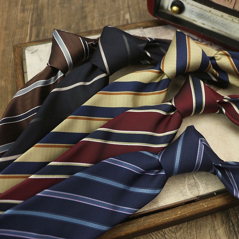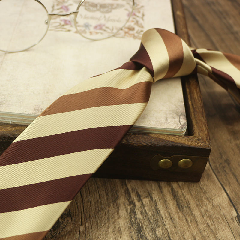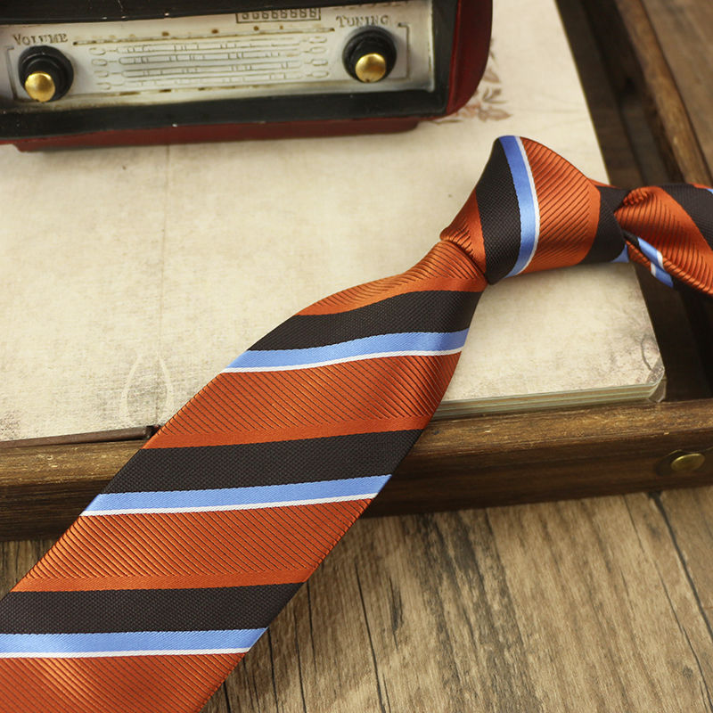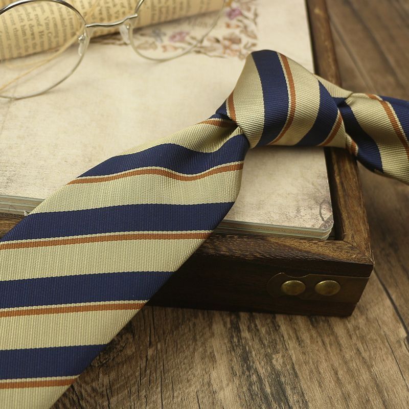 빈티지 골드 다크 브라운 블루 스트라이프 타이 남자 8CM 한국 영국 원피스 비즈니스 캐주얼 신랑 웨딩 올매치