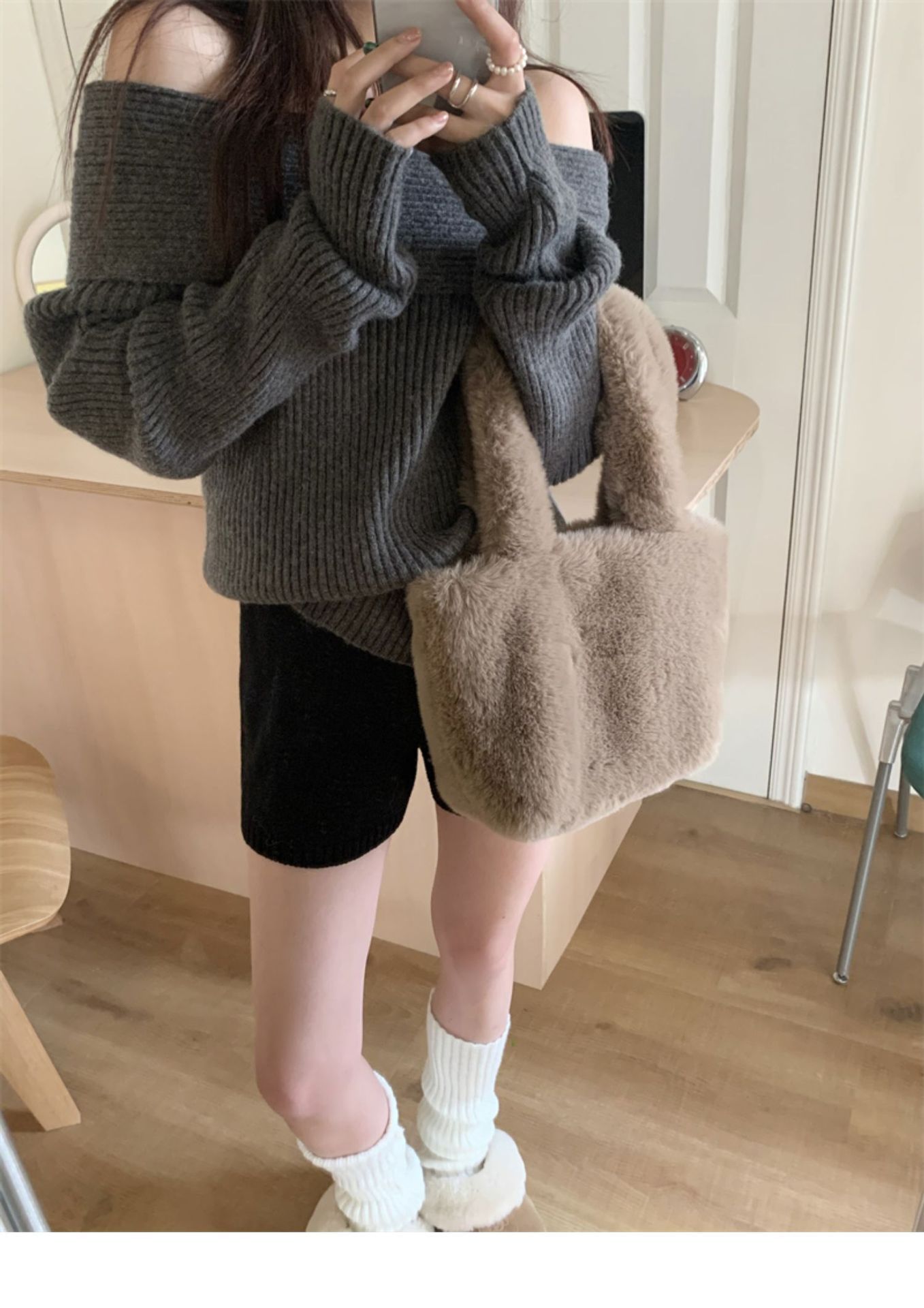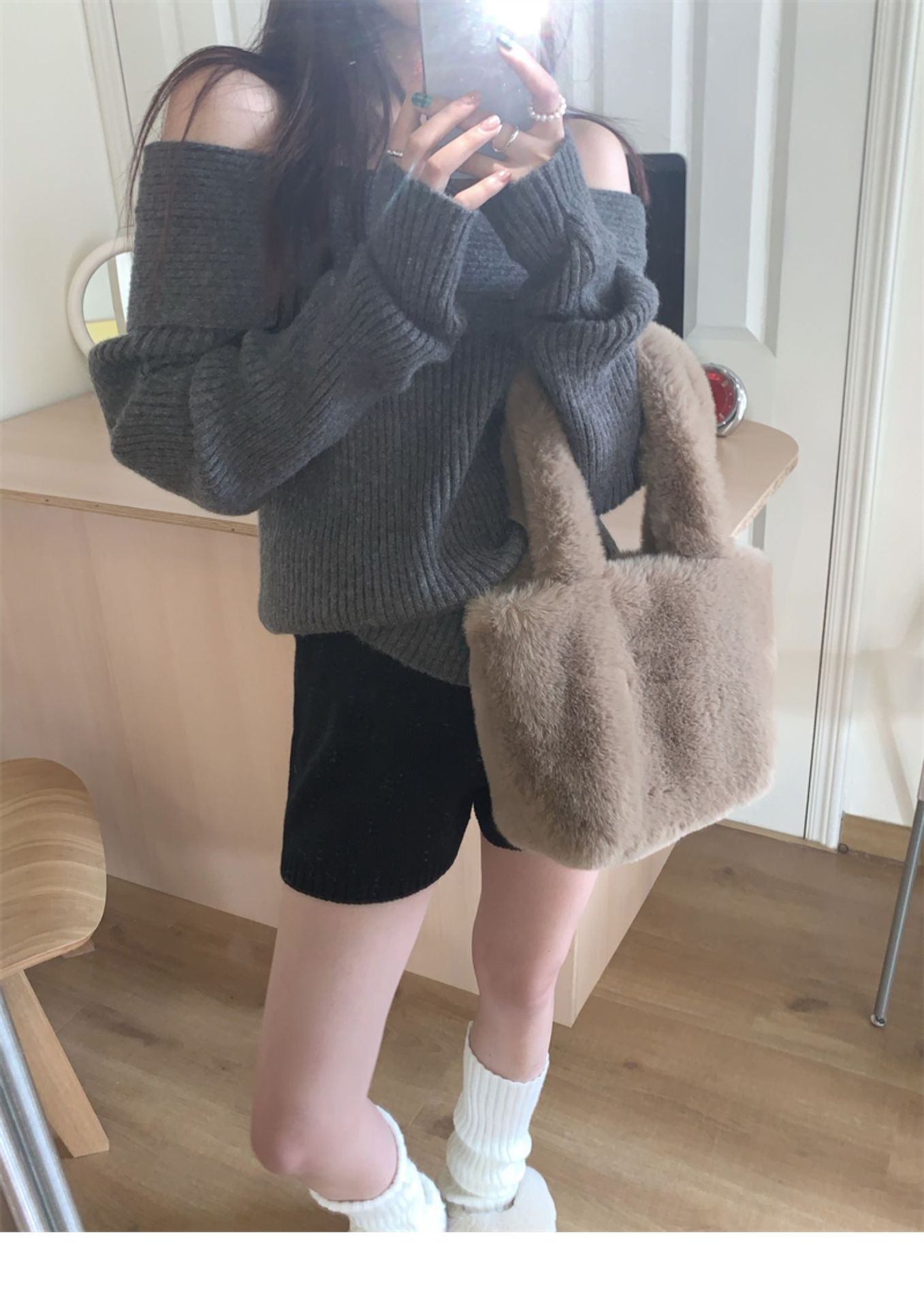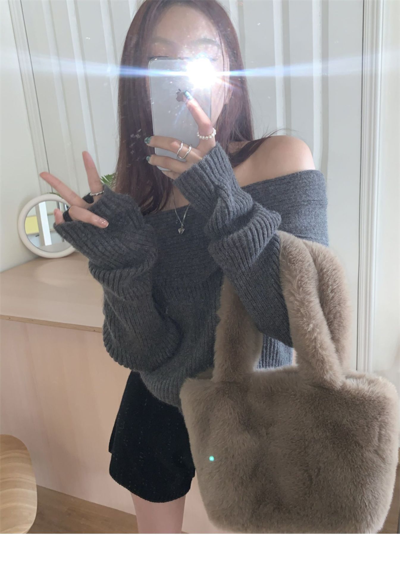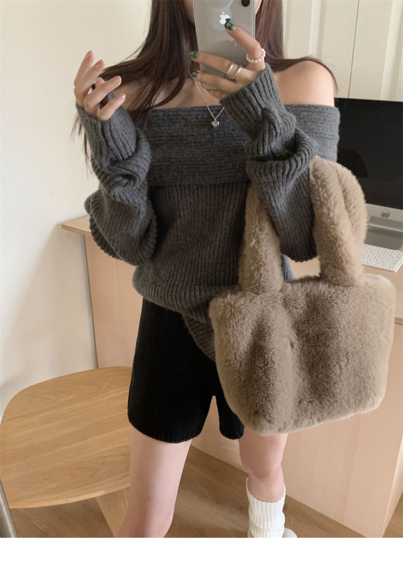 여성 기질 쇄골 어깨 노출 니트웨어 슬리밍 아우터웨어를 곁들인 섹시한 화이트 오프 칼라 스웨터베이스 셔츠스토어 가기