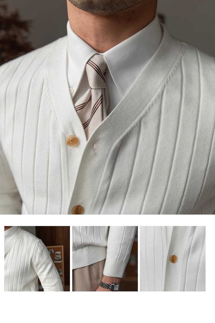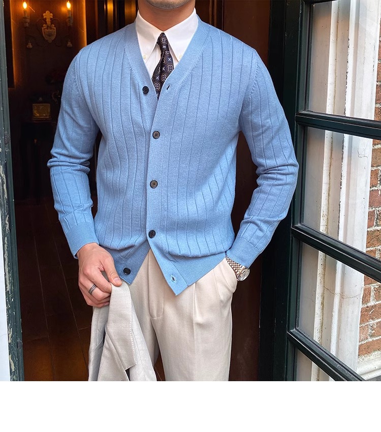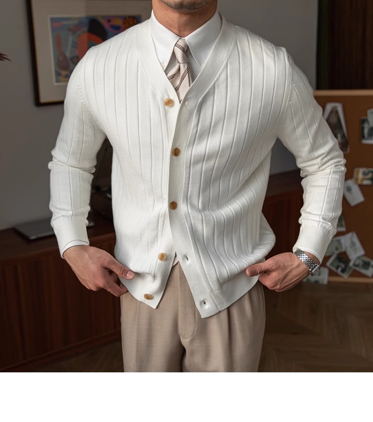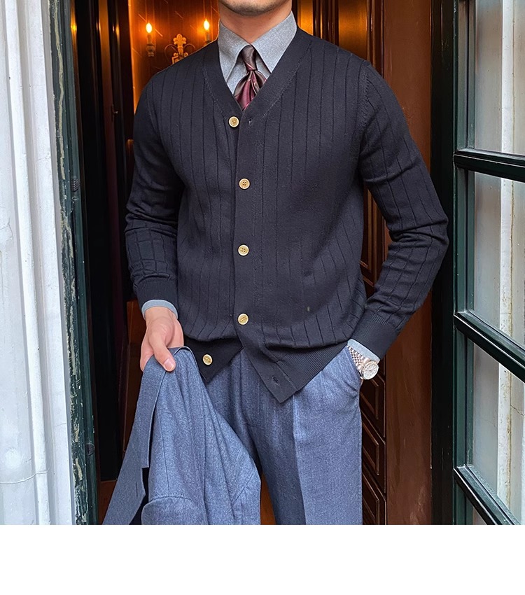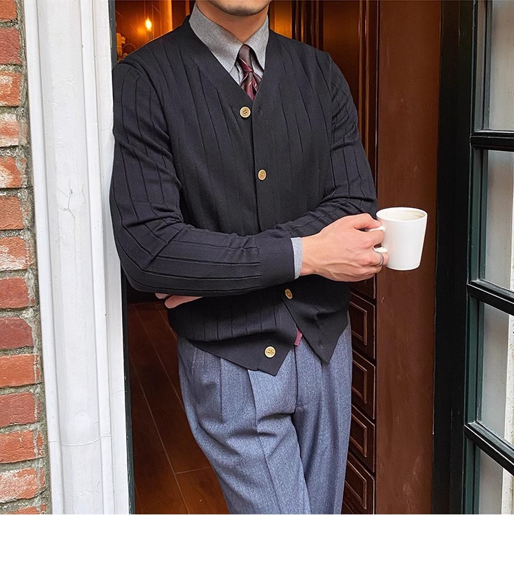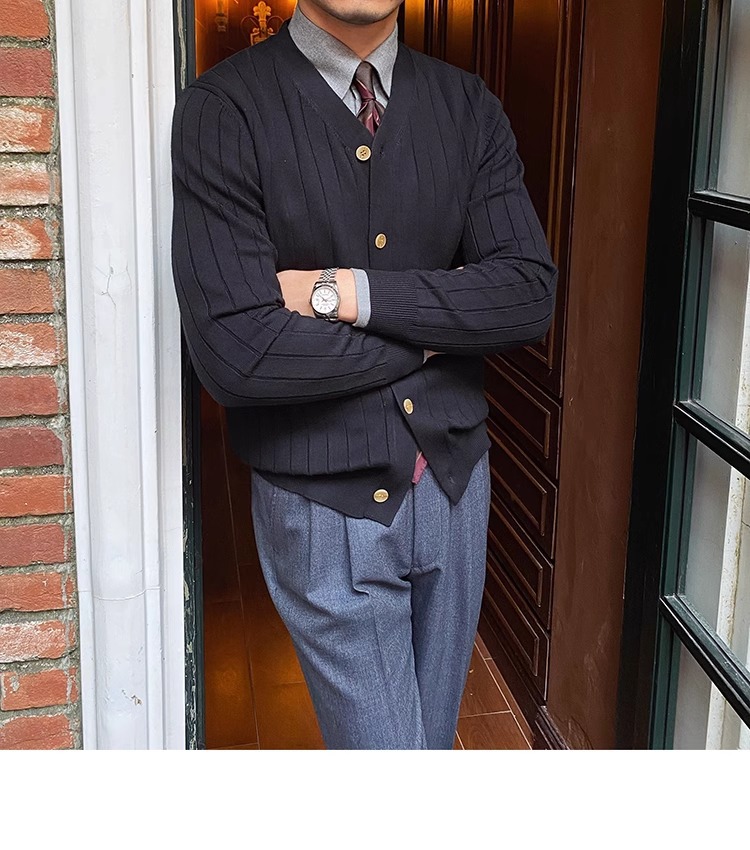 봄과 가을 남성용 니트 V-넥 카디건 일본식 빈티지 슬림 핏 핏 긴팔 스웨터 코트 젠트리 캐주얼 스웨터