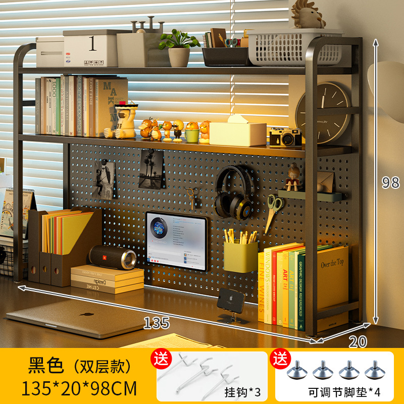 • 검정색 단일 레이어 천공 보드 책장 135CM