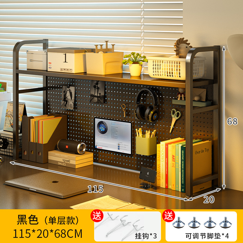 • 검정색 단일 레이어 천공 보드 책장 115CM