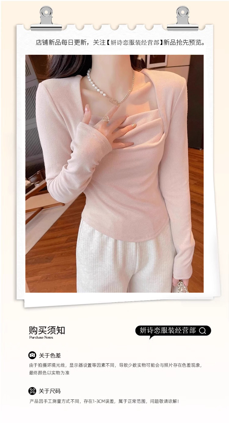 초가을 2024 새로운 핑크 스퀘어 칼라 베이스 셔츠 여성의 가을과 겨울 순수한 소원 인테리어 디자인 독특한 세련된 작은 탑스토어 가기