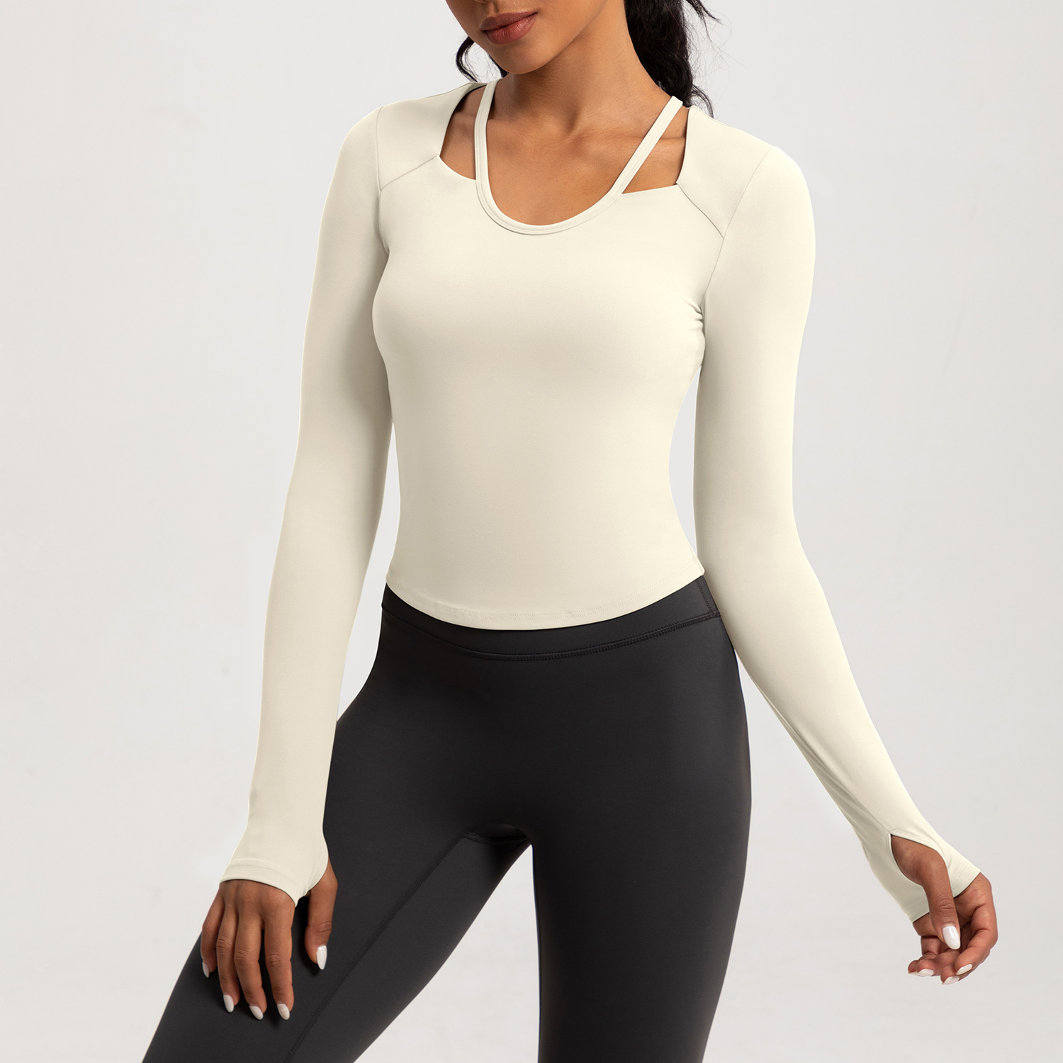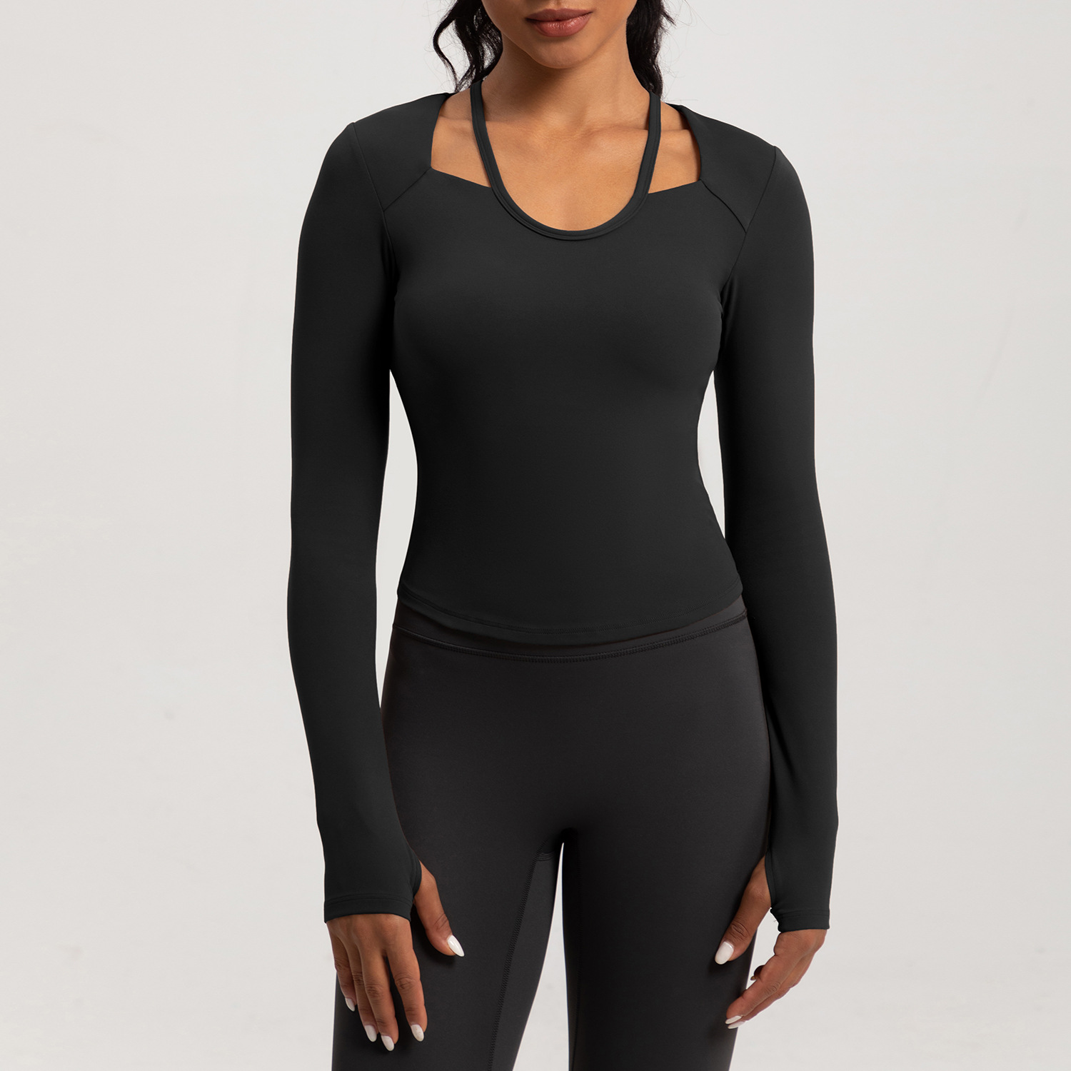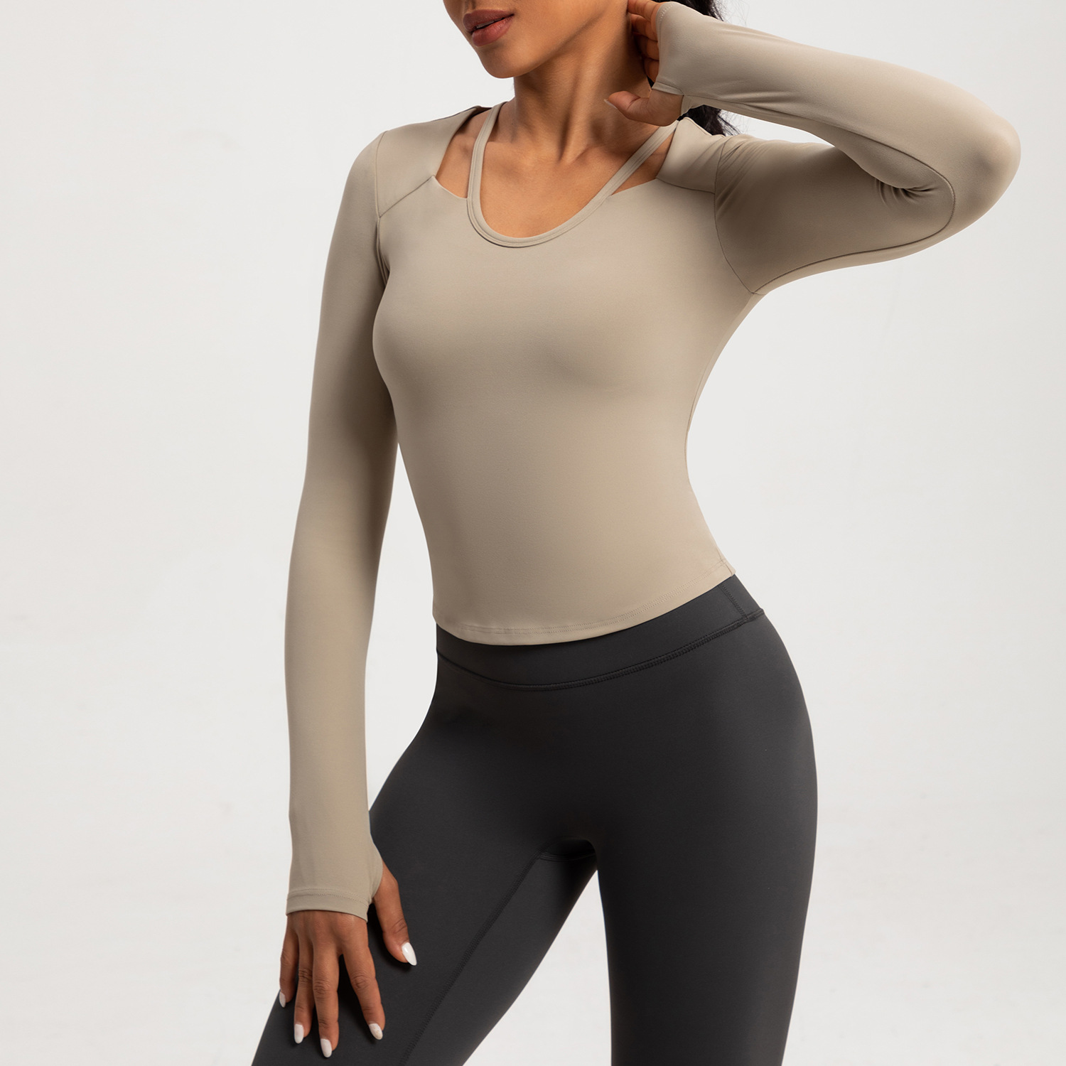 가을 겨울 신상 요가복 여성용 티셔츠 가슴 패드 포함 타이트 핏 슬림 요가 긴팔 러닝 스포츠 피트니스 상의