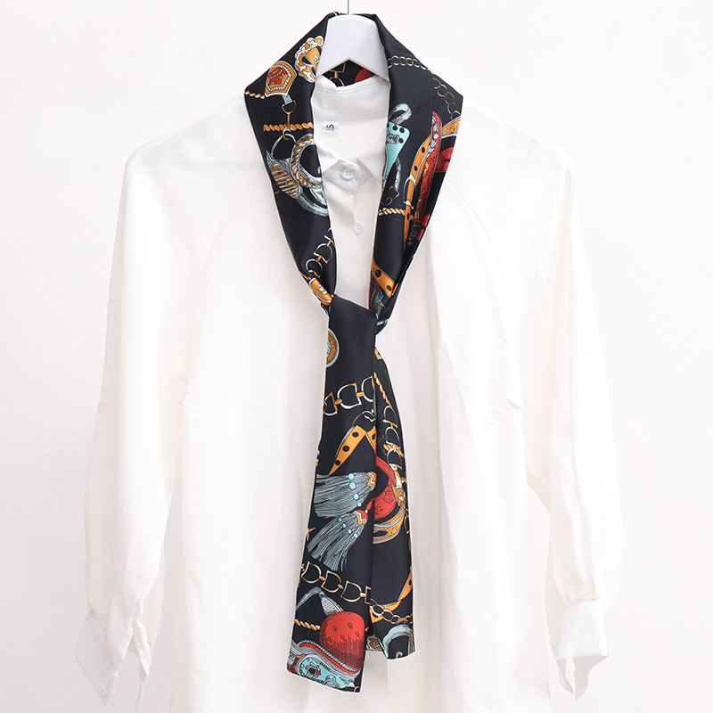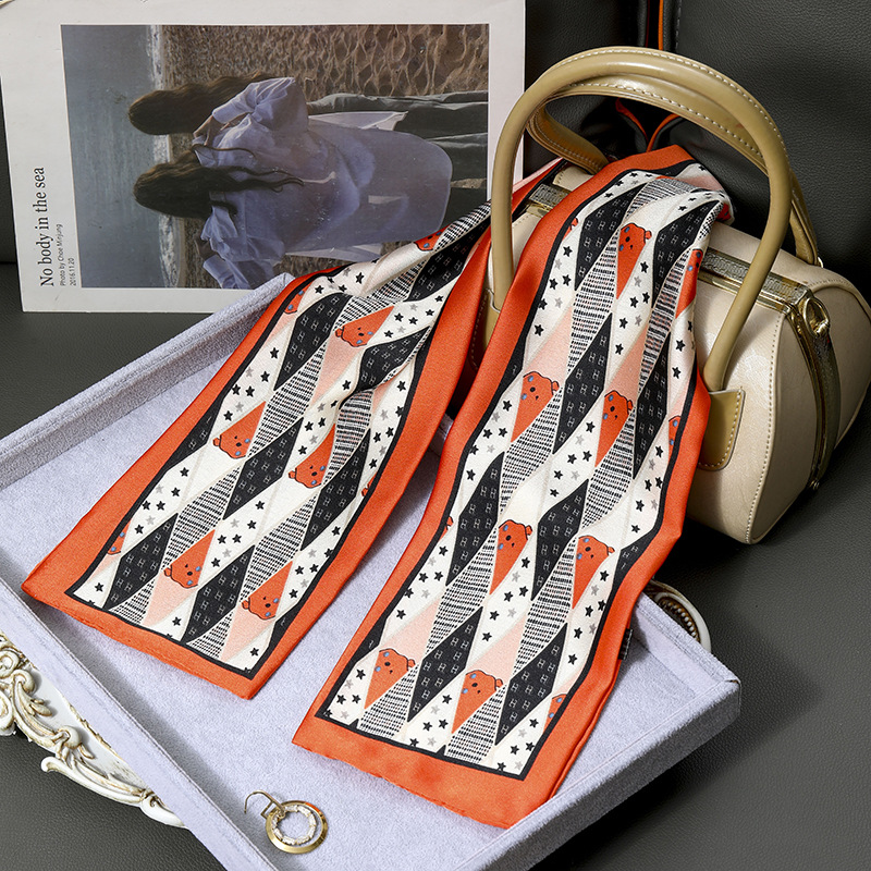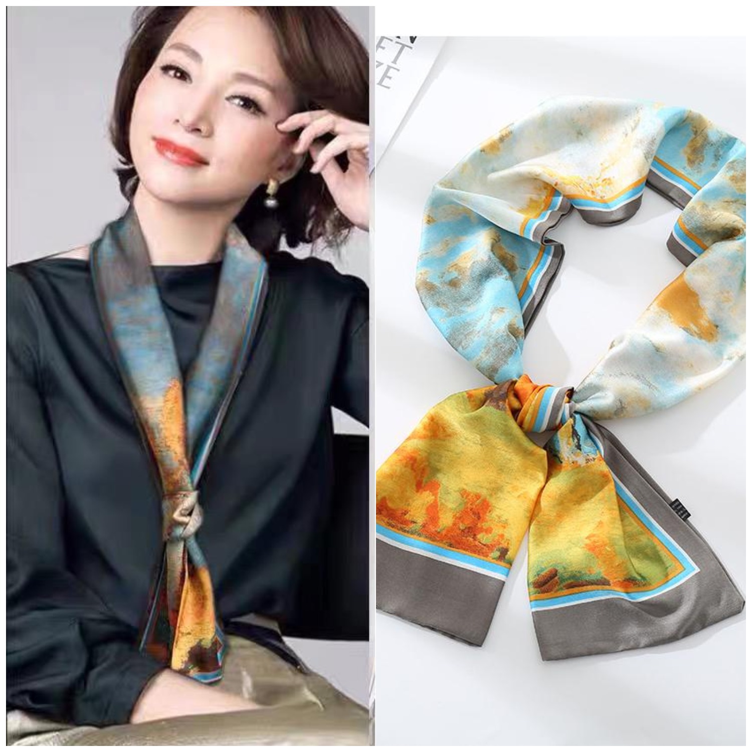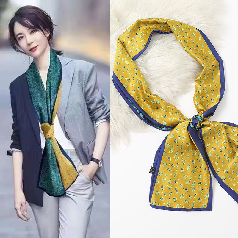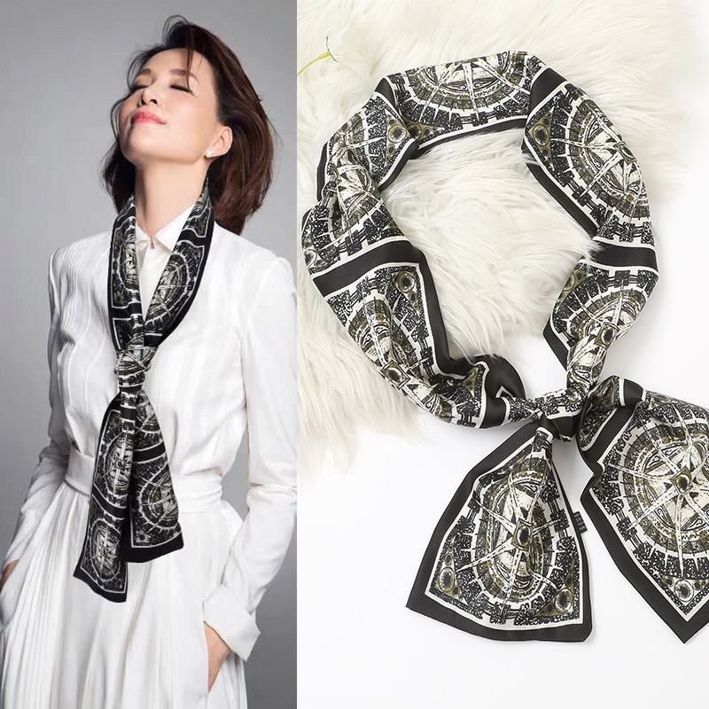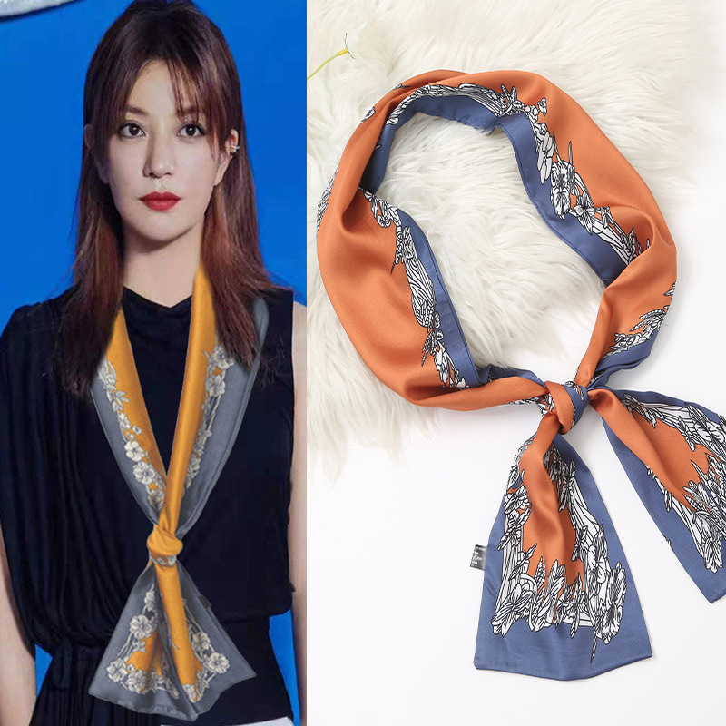 2023 최신 스타 같은 스타일의 얇고 긴 작은 실크 스카프 여성 봄 스타일 유행 다목적 장식 스카프