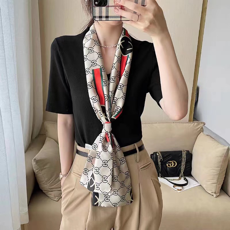 2023 최신 스타 같은 스타일의 얇고 긴 작은 실크 스카프 여성 봄 스타일 유행 다목적 장식 스카프스토어 가기