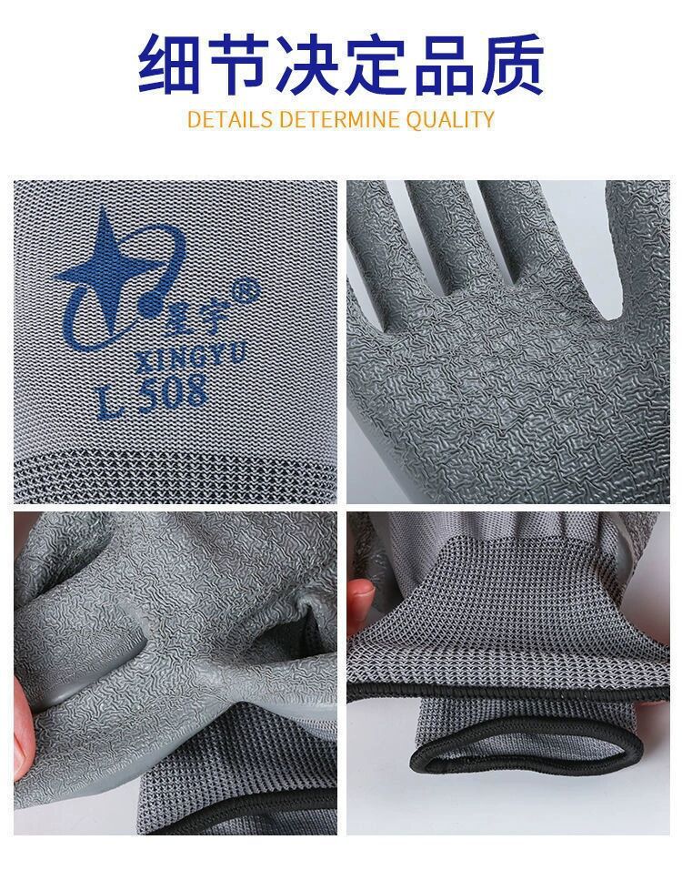 Xingyu L508 작업 사이트 보호 미끄럼 방지 내마모성 디핑 작업 라텍스 주름 통기성 노동 보호 장갑스토어 가기
