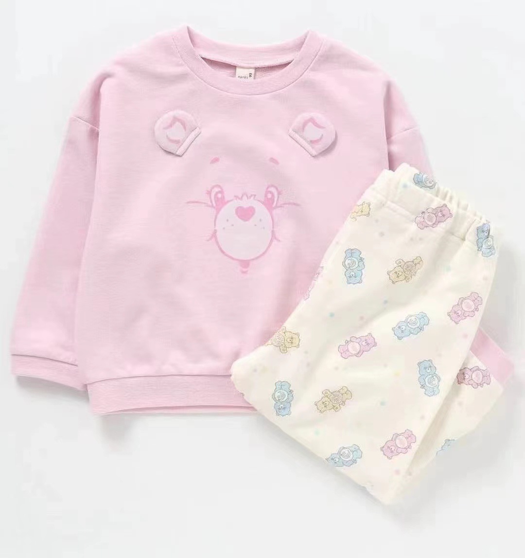 2024 일본 가을 스타일 만화 곰돌이 세트 긴팔 상의와 긴바지 투피스 세트스토어 가기