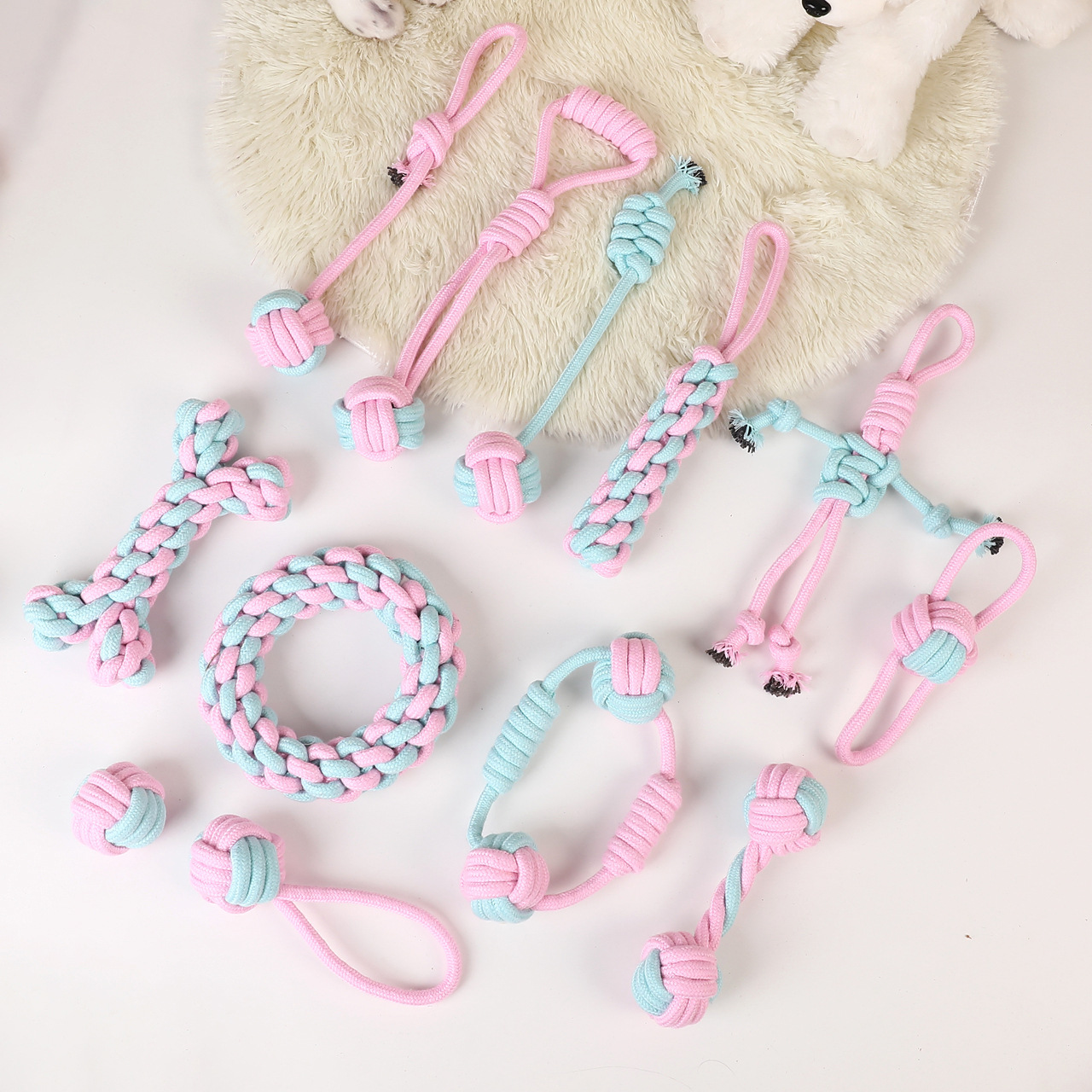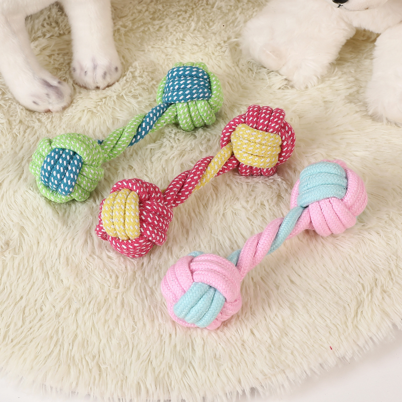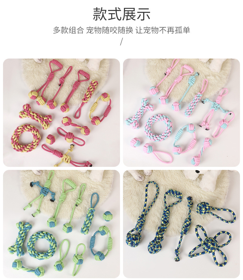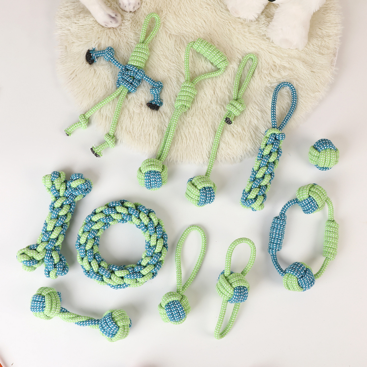 애완동물 면 로프 장난감 세트, 치아 연마 및 물림 방지, 땋은 로프 매듭 공, 강아지 훈련 및 교육용품, 애완견스토어 가기