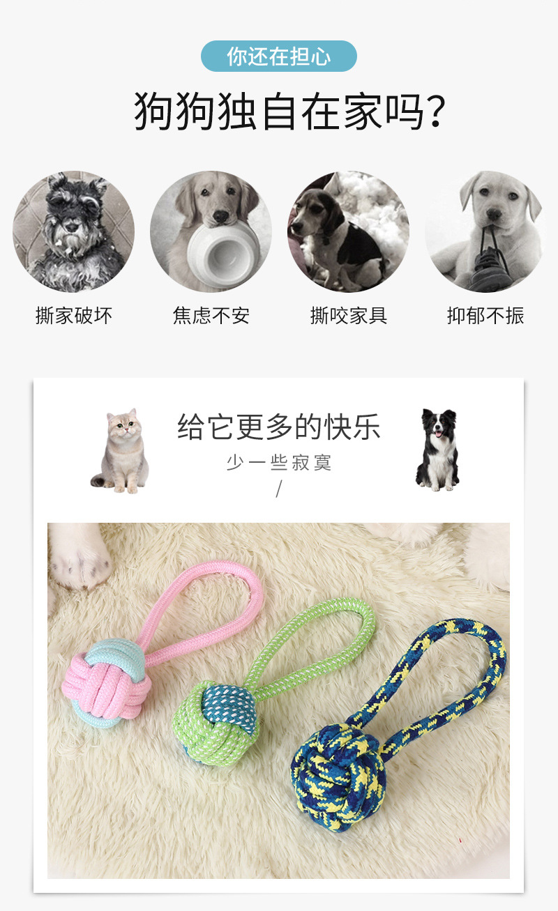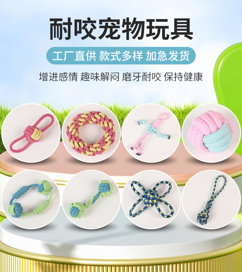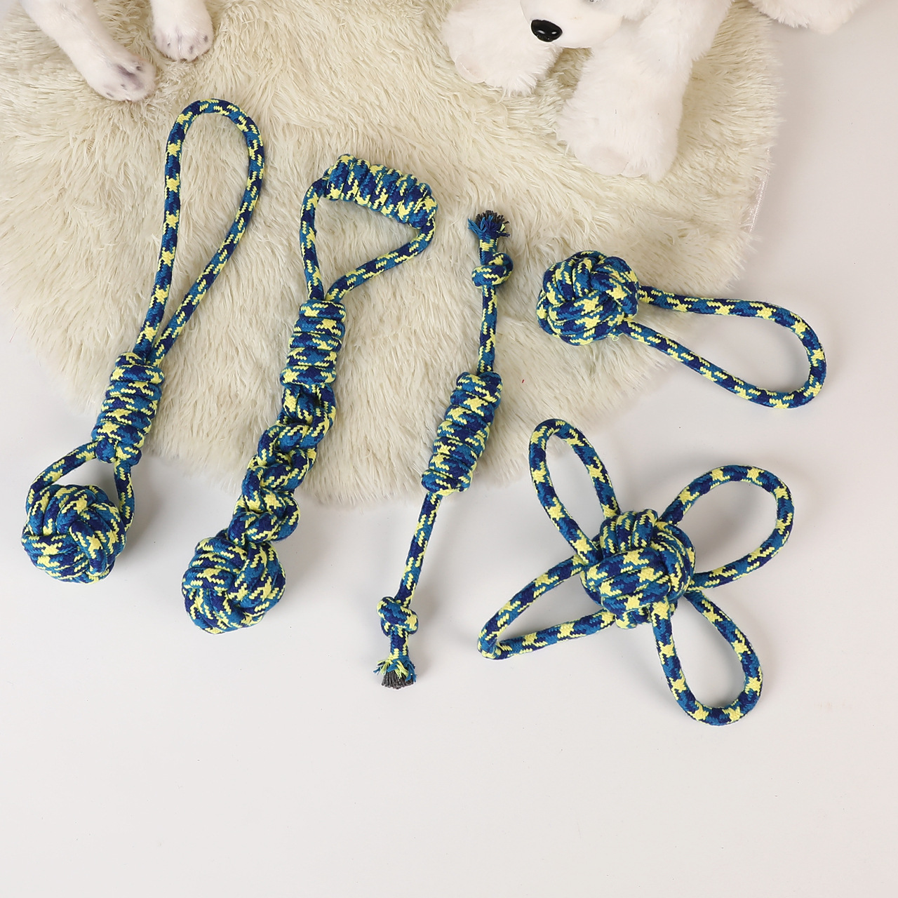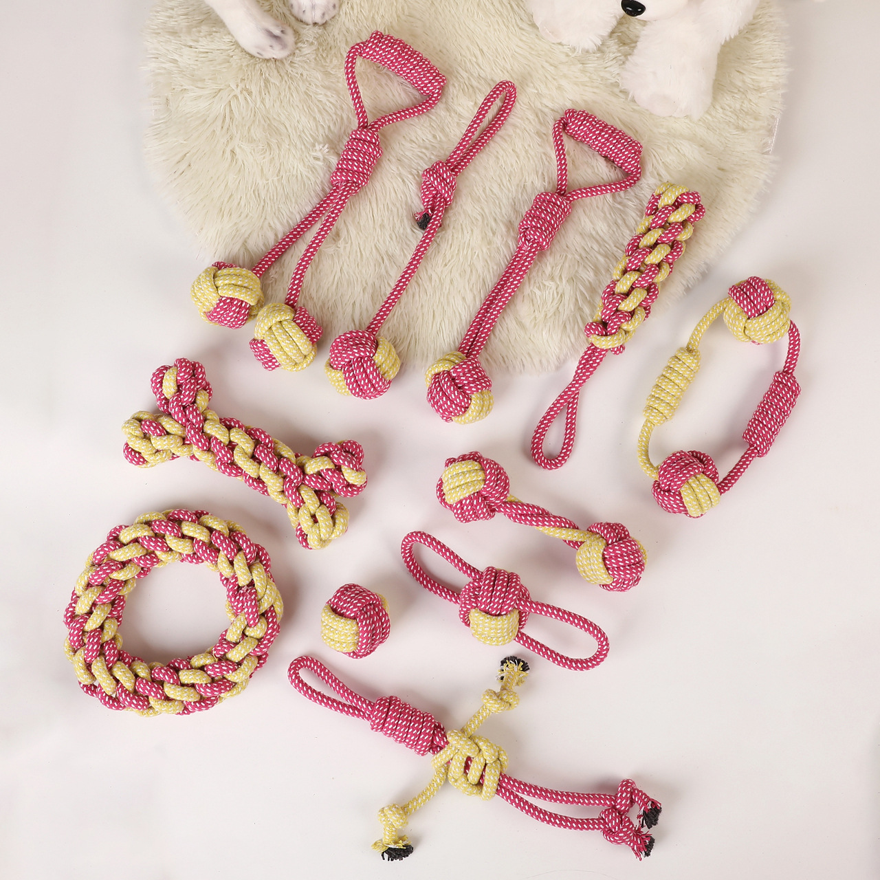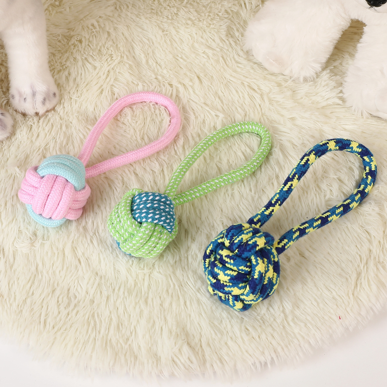 애완동물 면 로프 장난감 세트, 치아 연마 및 물림 방지, 땋은 로프 매듭 공, 강아지 훈련 및 교육용품, 애완견스토어 가기