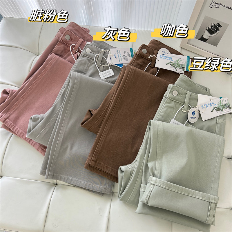 따뜻한 9 여름 쥬스 뷰티 부서! 여성용 슬림핏 슬리밍 청바지 4 면 스트레치 더티핑크 자른 스트레이트 팬츠스토어 가기