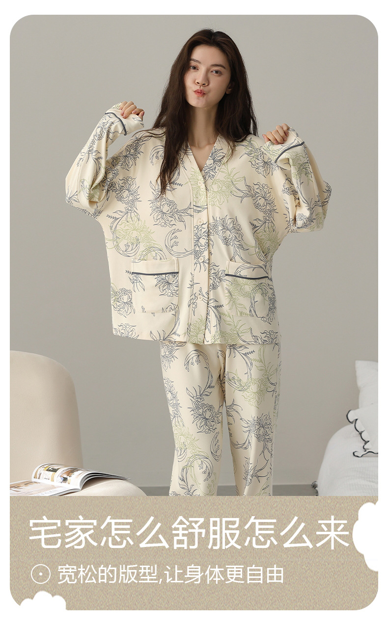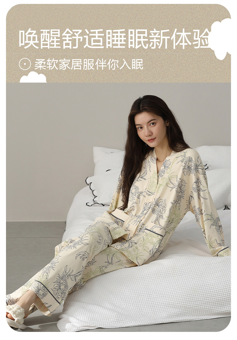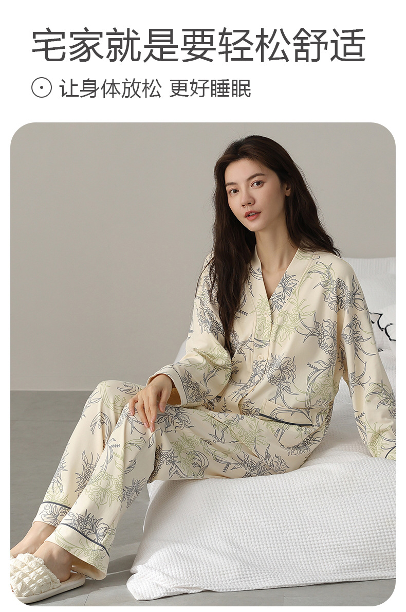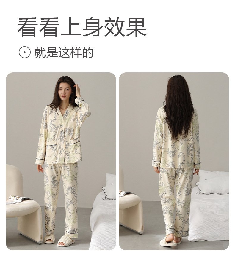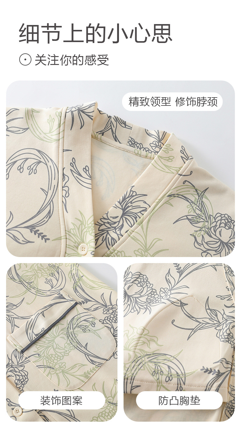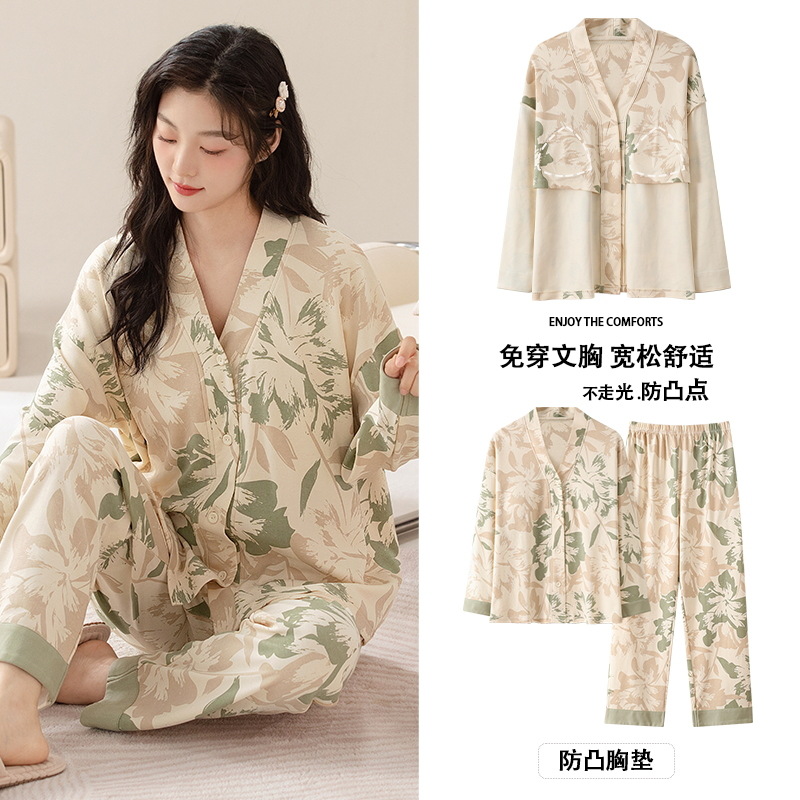 파자마 여성의 봄과 가을 통합 2024 년 가슴 패드 새로운 긴 소매 카디건 고급 캐주얼 아웃투 홈