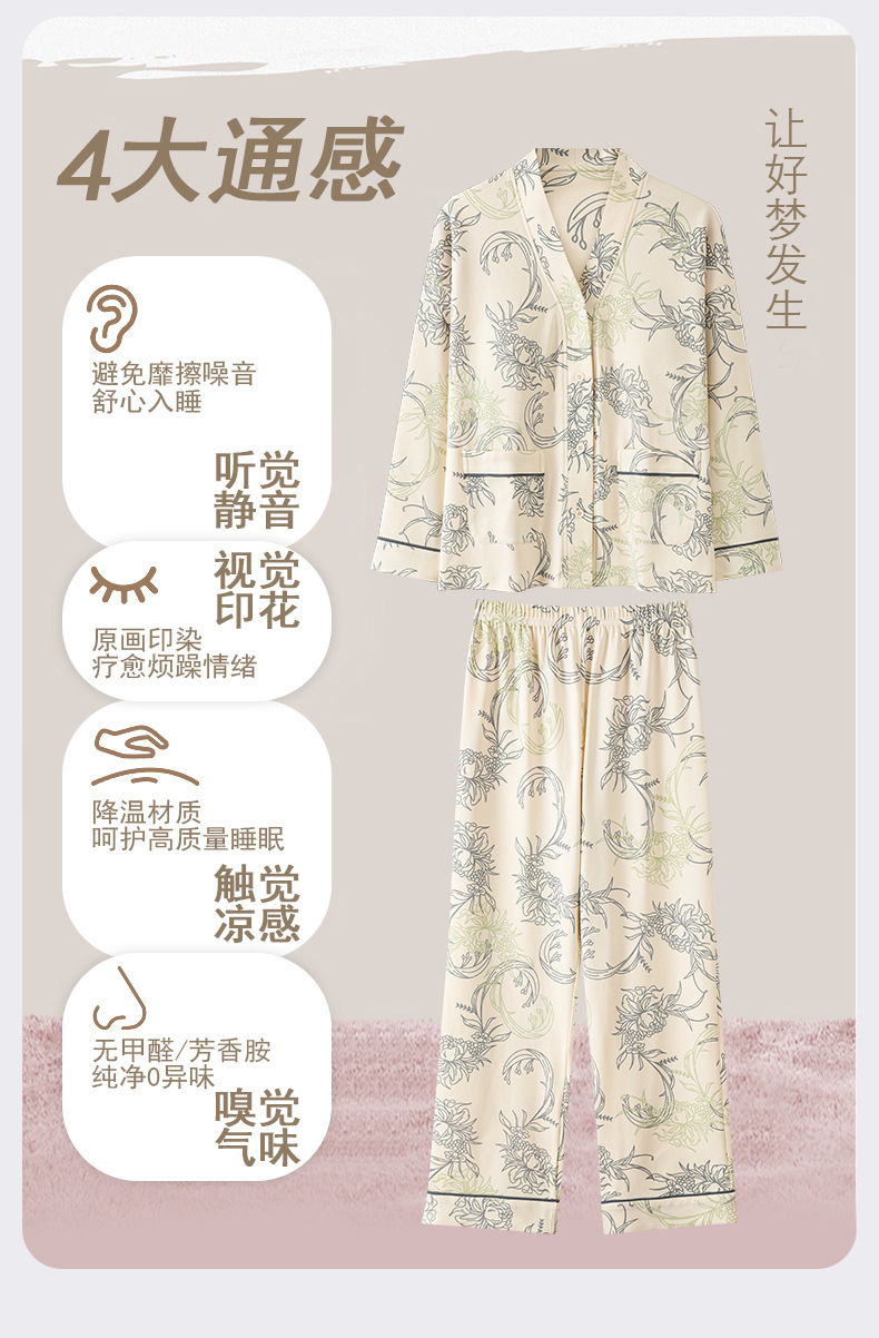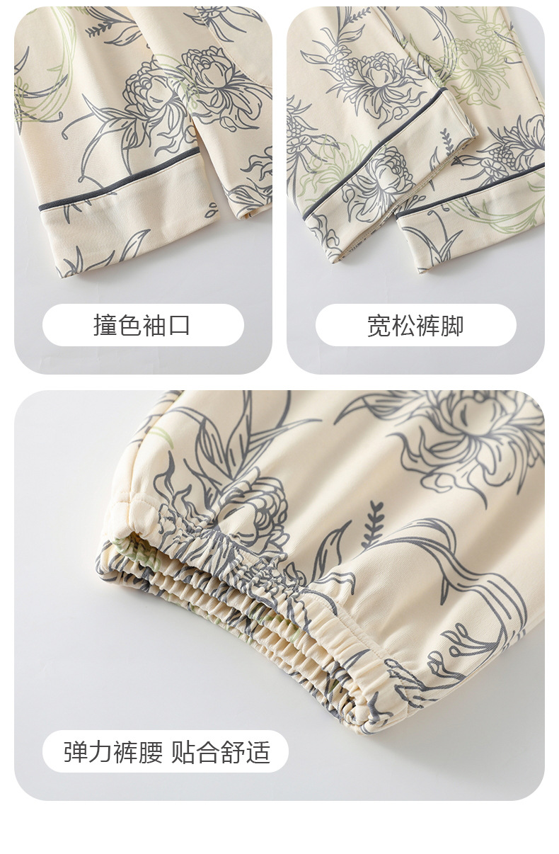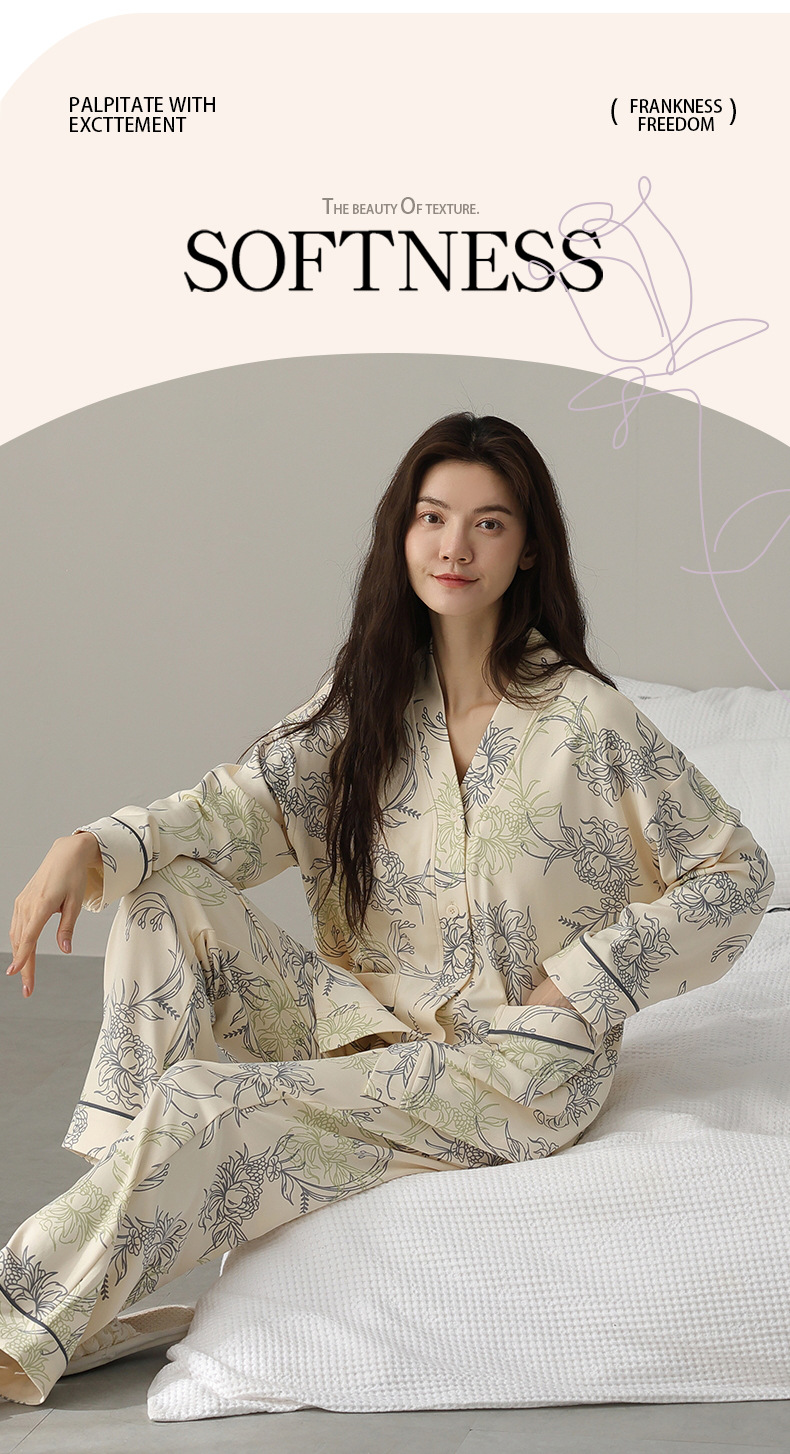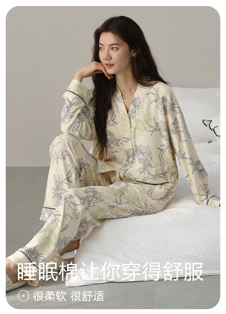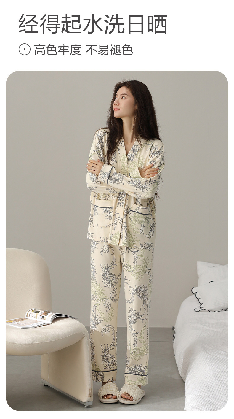 파자마 여성의 봄과 가을 통합 2024 년 가슴 패드 새로운 긴 소매 카디건 고급 캐주얼 아웃투 홈