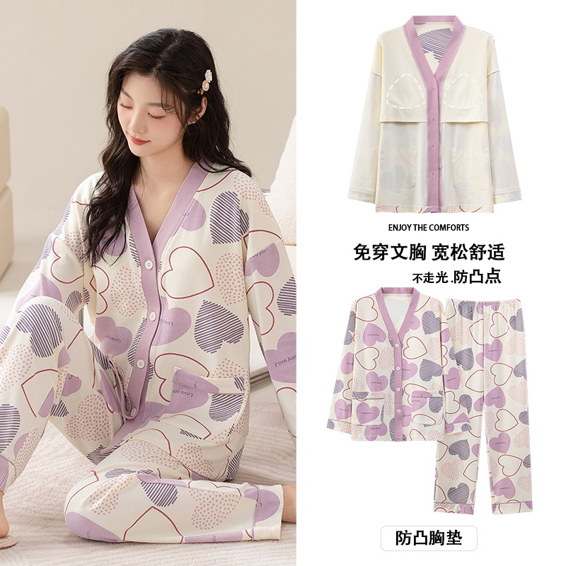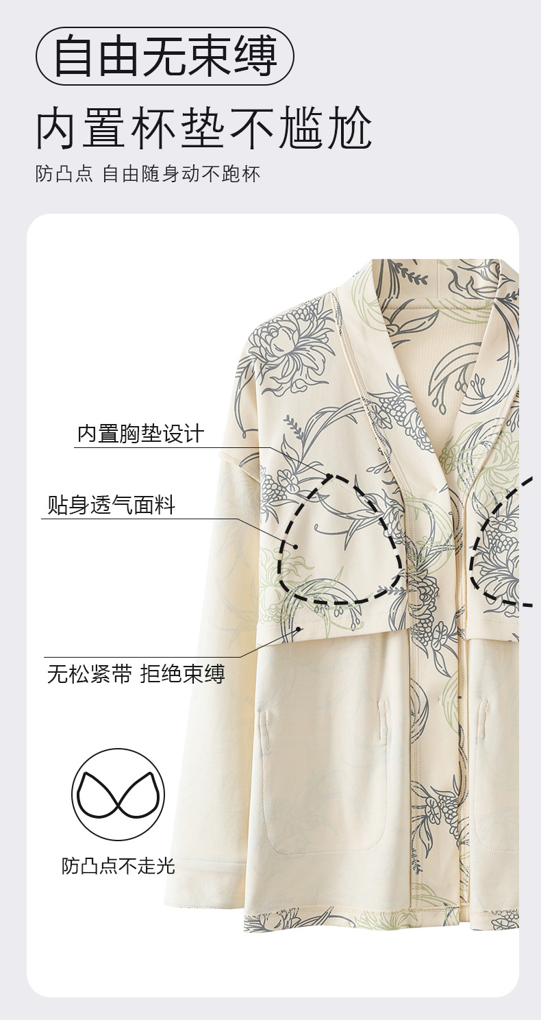 파자마 여성의 봄과 가을 통합 2024 년 가슴 패드 새로운 긴 소매 카디건 고급 캐주얼 아웃투 홈스토어 가기