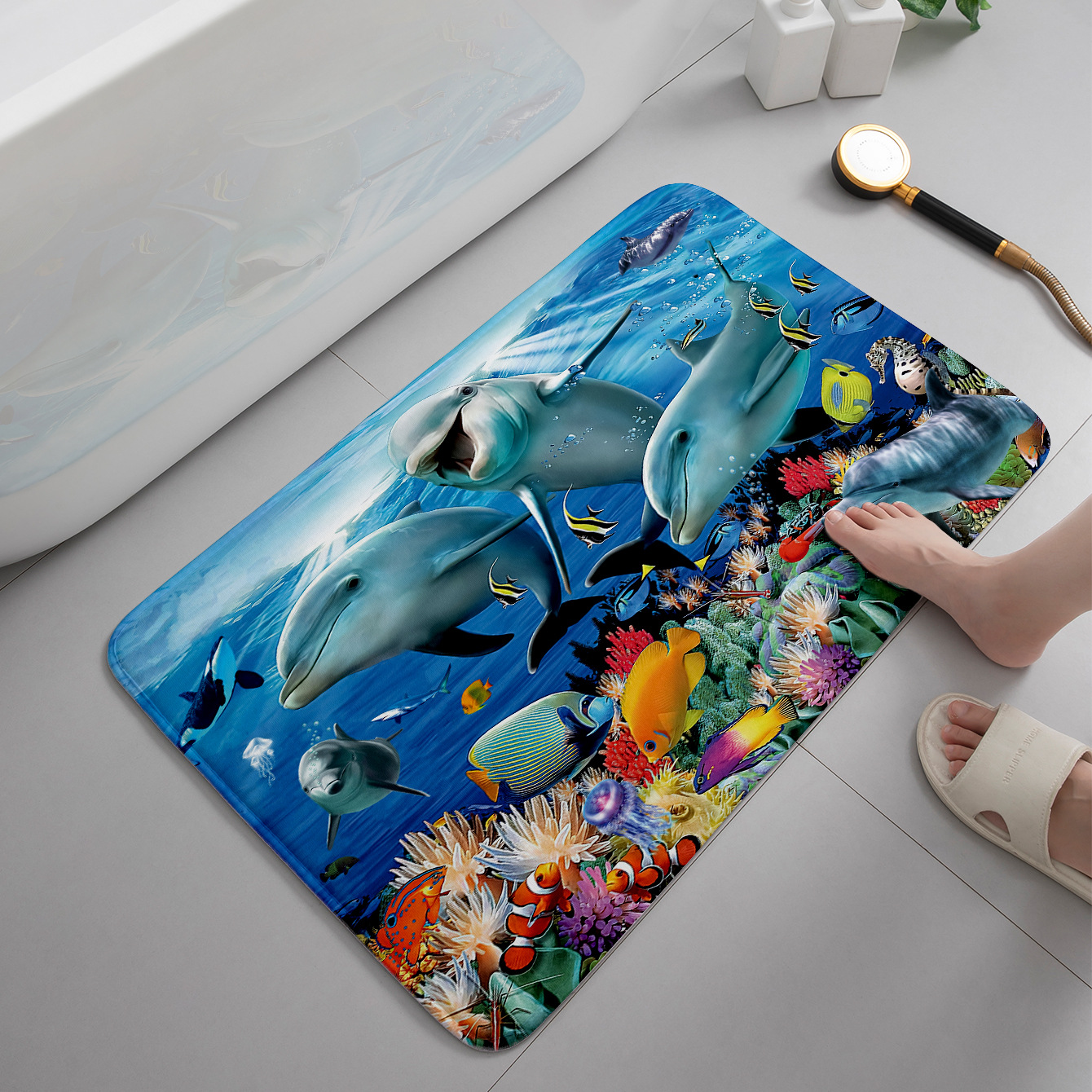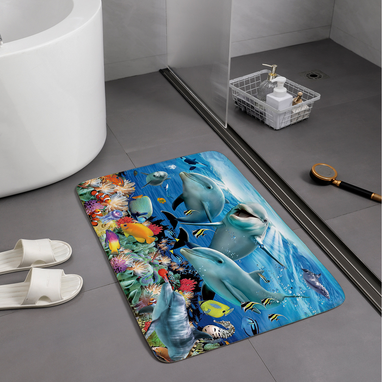 국경 바다 세계 돌고래 인쇄 화장실 매트 세트, 미끄럼 방지 욕실 카펫 회색 바닥 스폰지 매트, U 모양스토어 가기