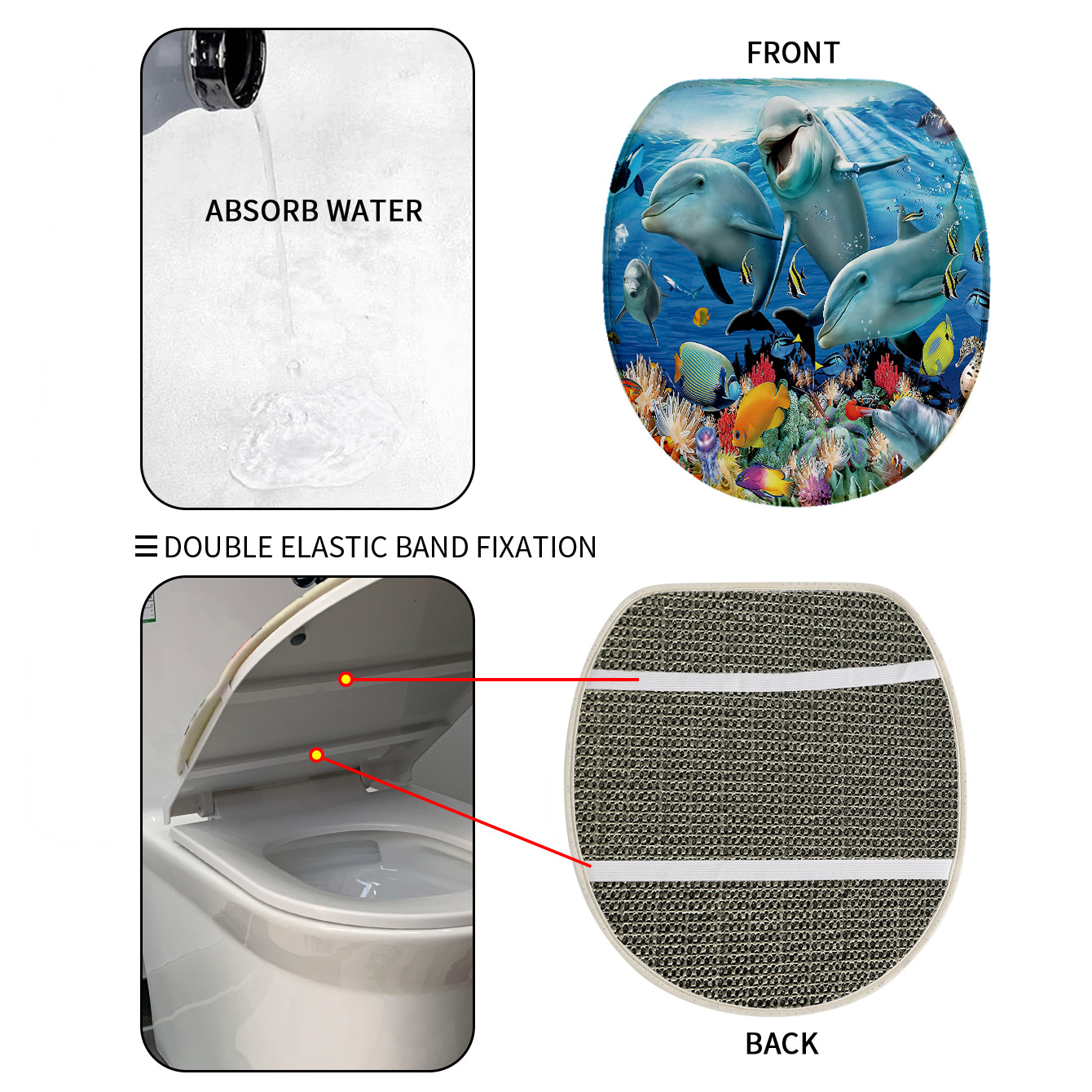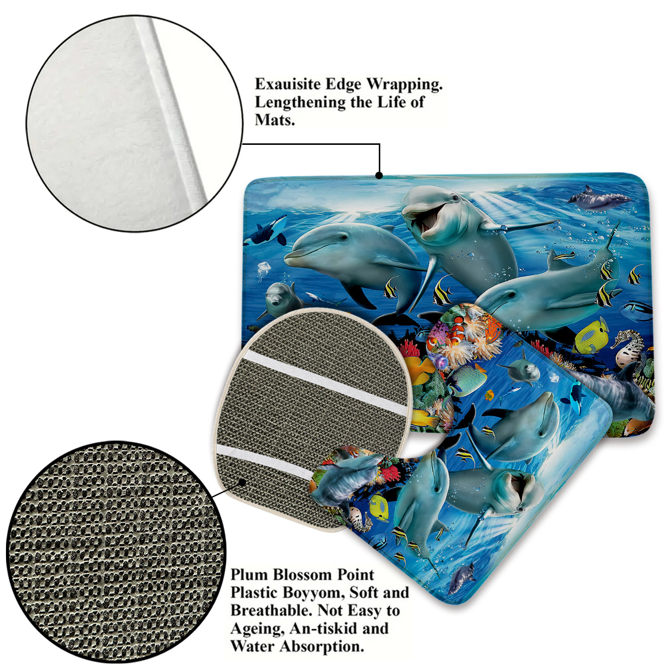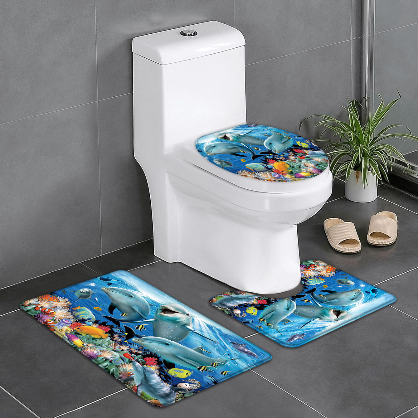 국경 바다 세계 돌고래 인쇄 화장실 매트 세트, 미끄럼 방지 욕실 카펫 회색 바닥 스폰지 매트, U 모양