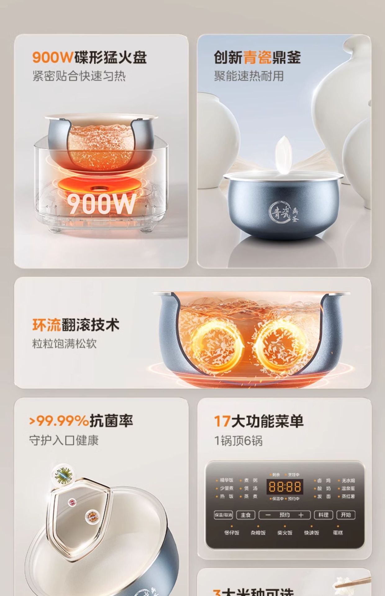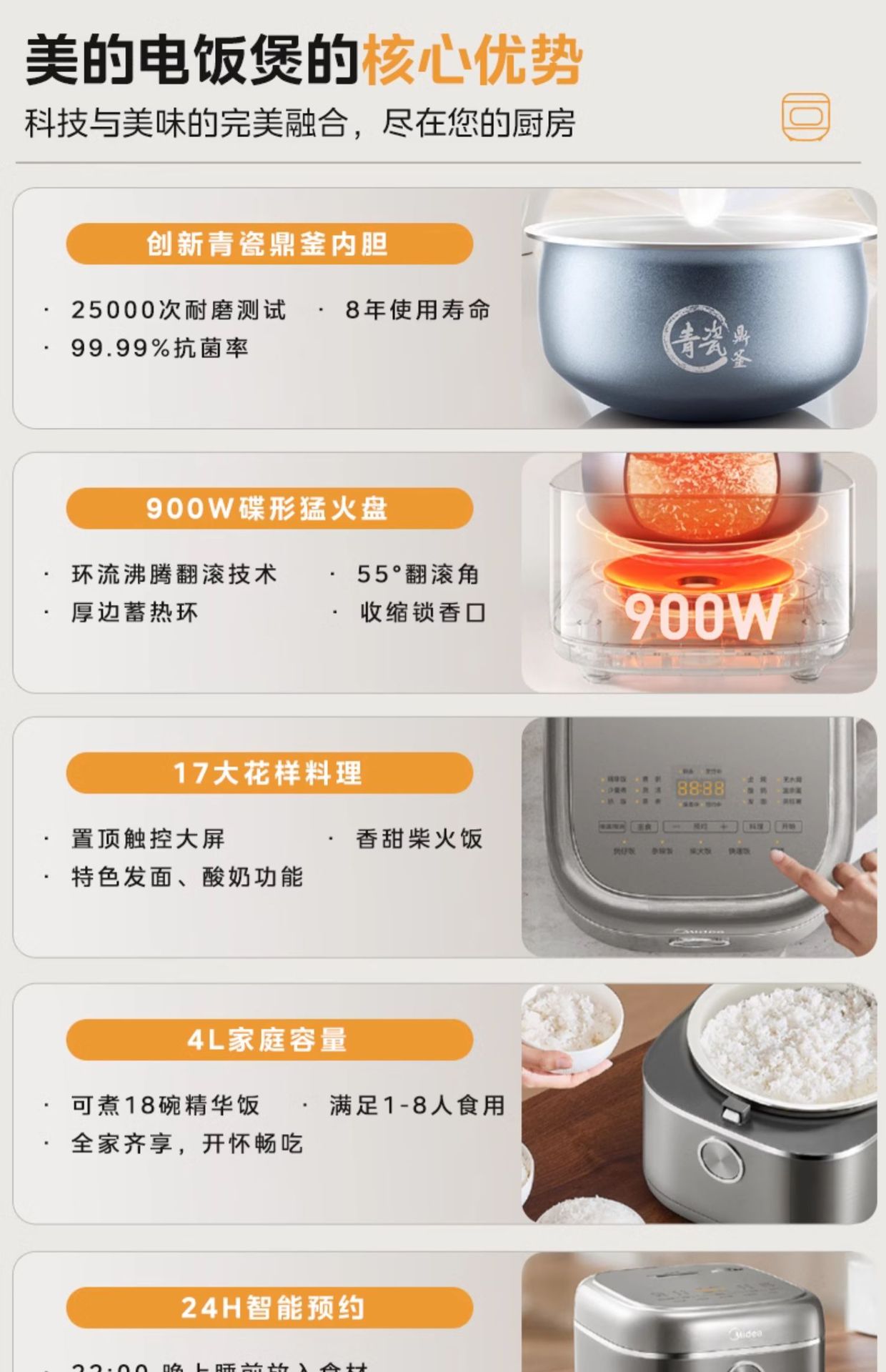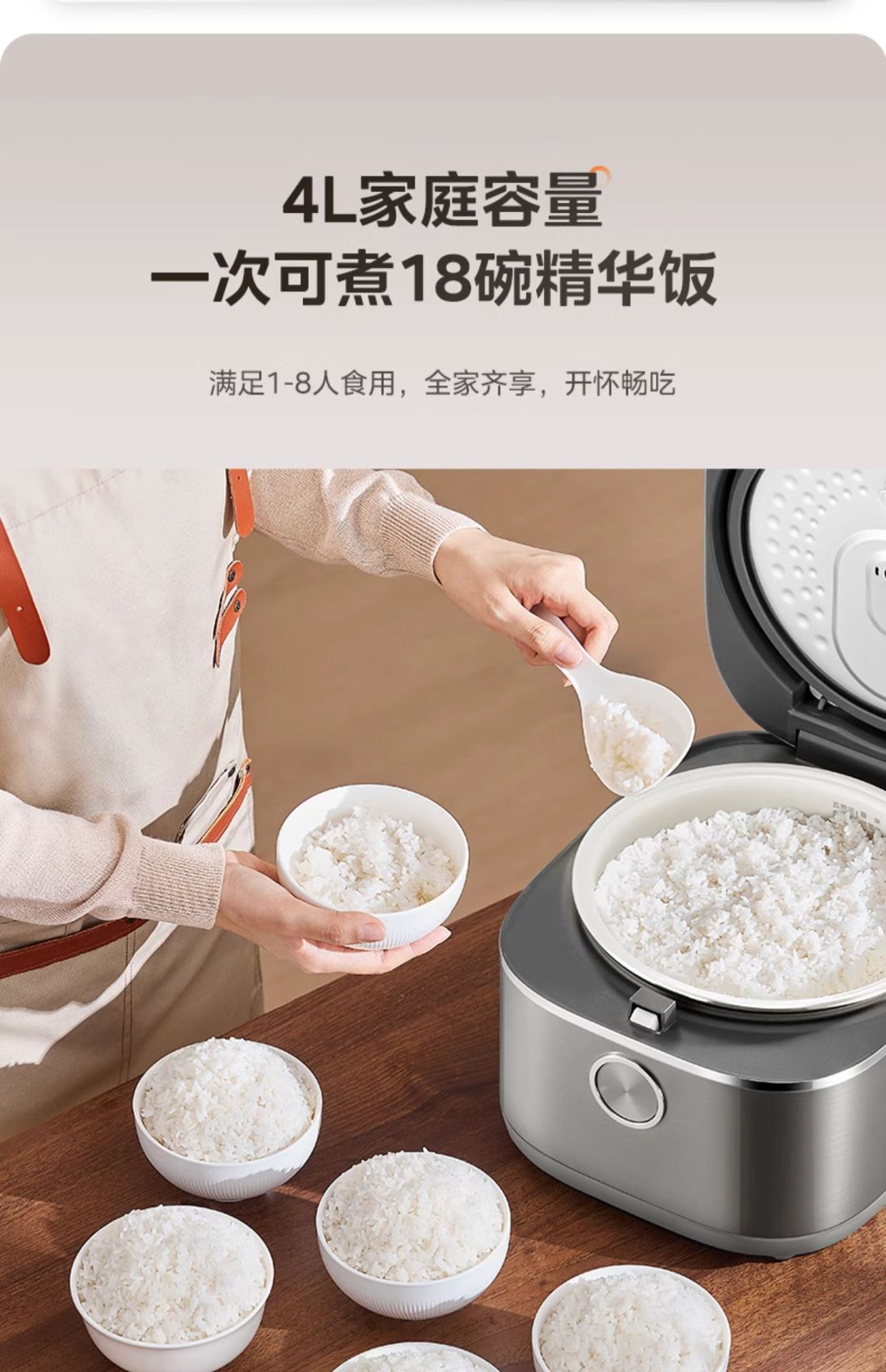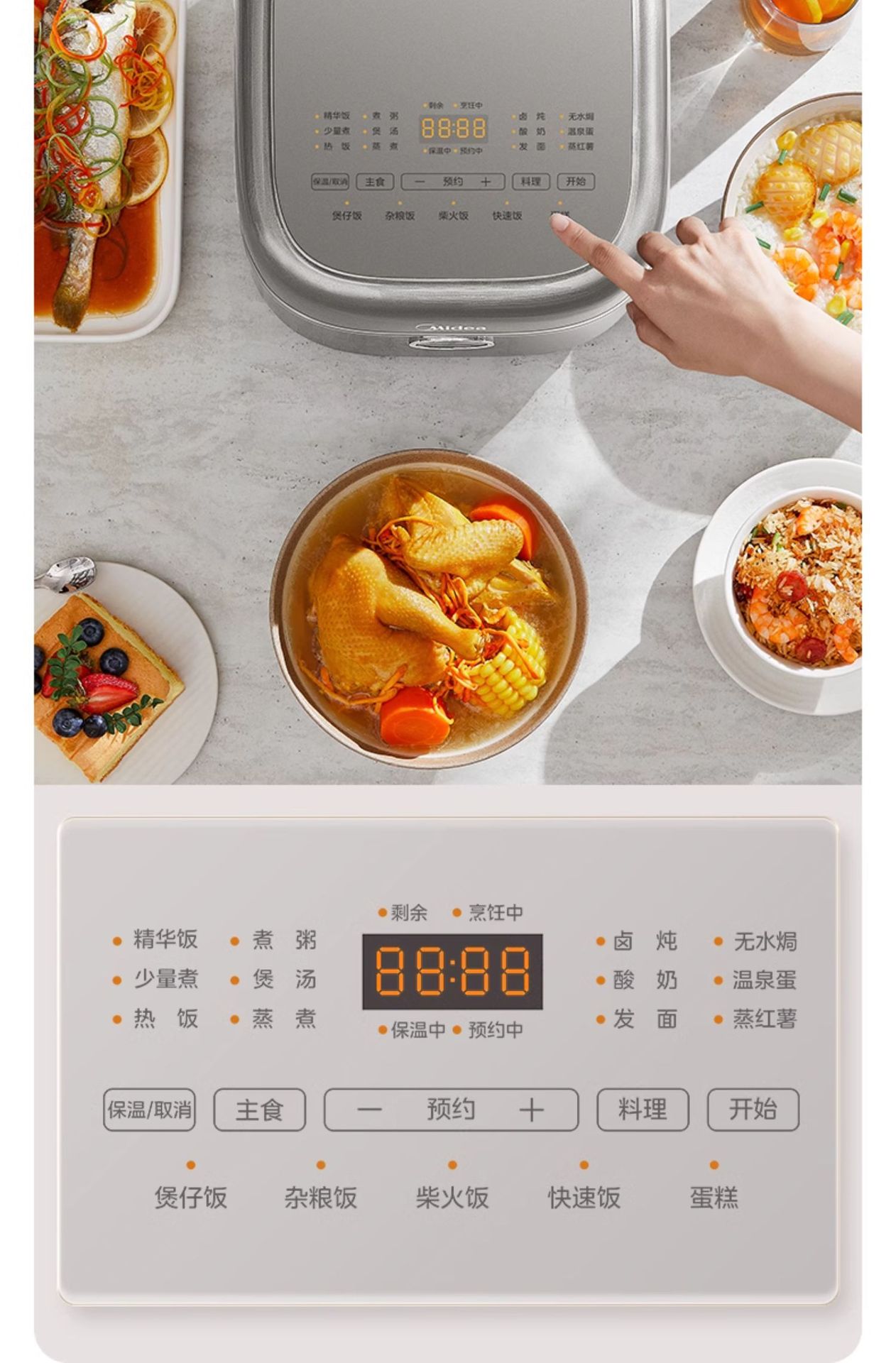 Midea 전기 밥솥 가정용 4L 대용량 지능형 예약 비 스틱 패스트 스위트 라이스 요리 마이크로 압력 할로겐 스튜 전기 밥솥스토어 가기