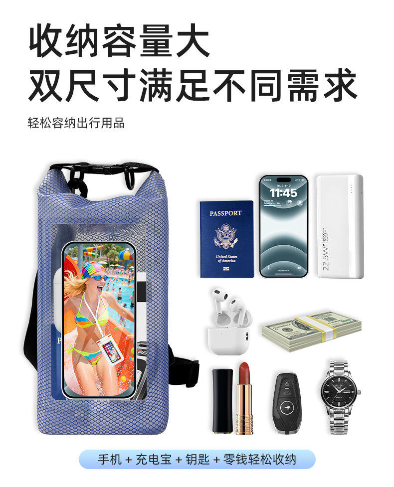 국경을 넘는 신제품 방수 가방 PVC 대용량 야외 방수 버킷백 수영 래프팅 크로스백 메쉬 방수 가방스토어 가기