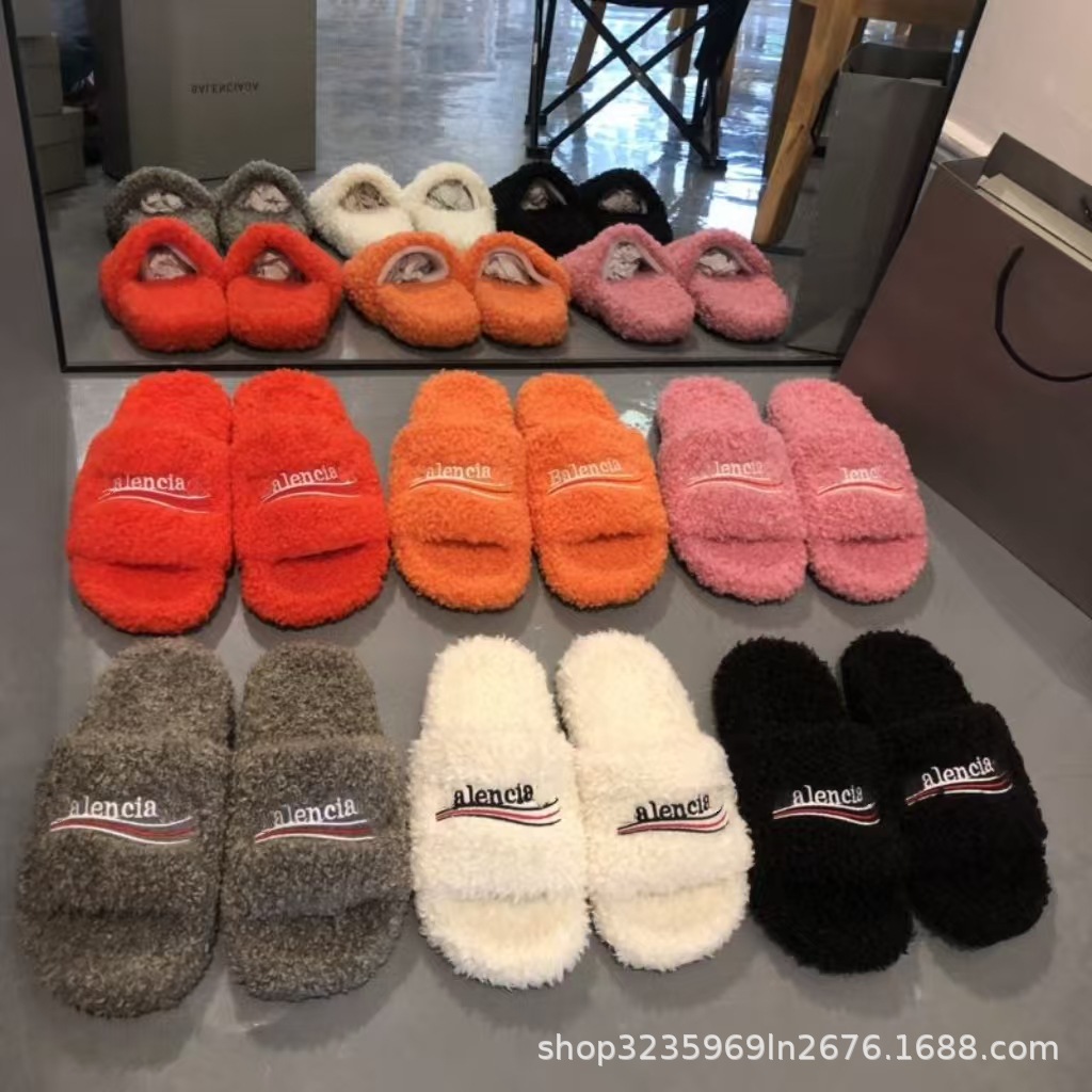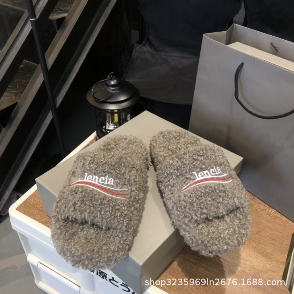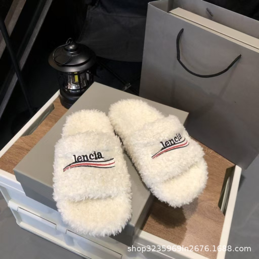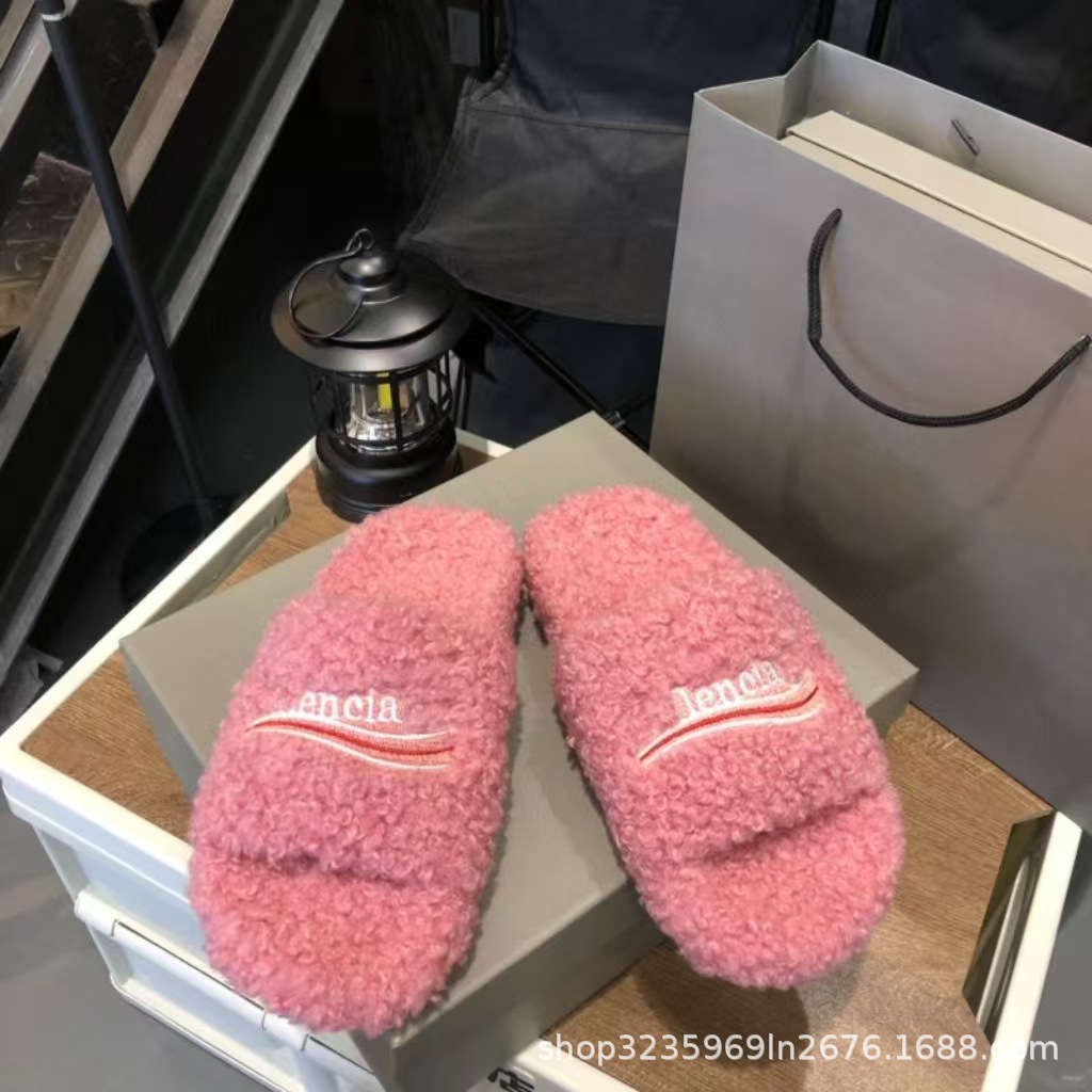 자수 B 파리 한 단어 모직 슬리퍼 여성의 2024 새로운 진짜 양모 두꺼운 외주 슬리퍼 커플 슬리퍼 여성스토어 가기