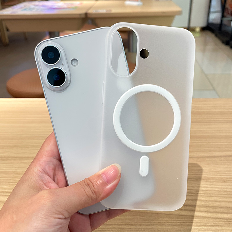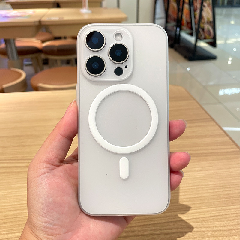 Iphone16promax 마그네틱 휴대 전화 케이스 초박형 얼음 안개 애플 15 프로스트 스킨 센스 드롭 방지 보호 케이스에 적합스토어 가기
