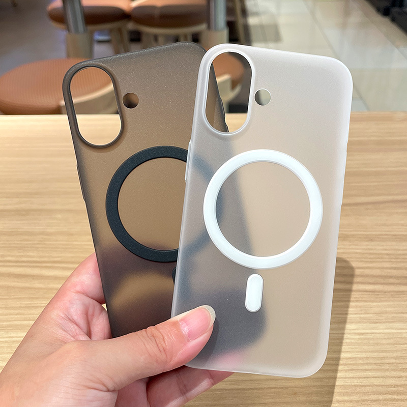 Iphone16promax 마그네틱 휴대 전화 케이스 초박형 얼음 안개 애플 15 프로스트 스킨 센스 드롭 방지 보호 케이스에 적합