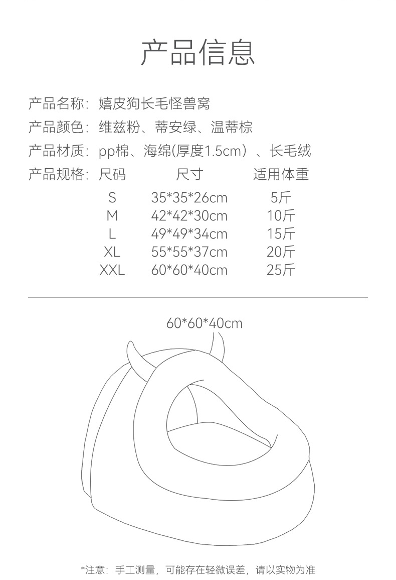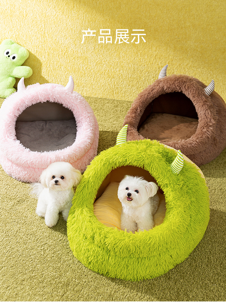 가을과 겨울 개 봉제 따뜻한 두꺼운 작은 괴물 사육장 깊은 수면 매체 및 작은 개 고양이 둥지 애완 동물 둥지스토어 가기
