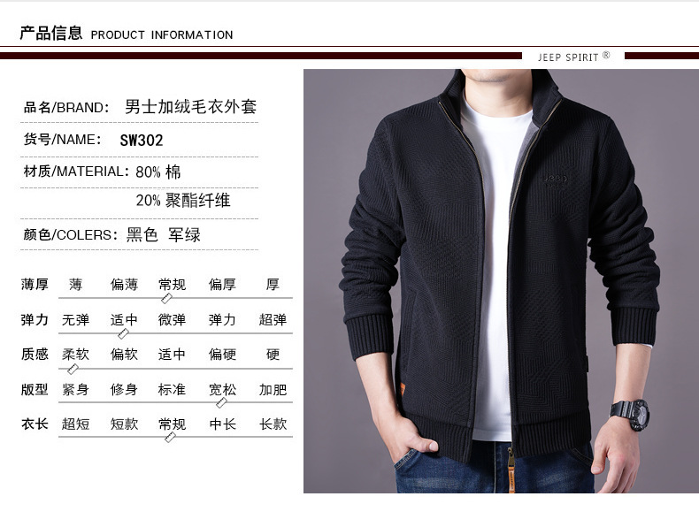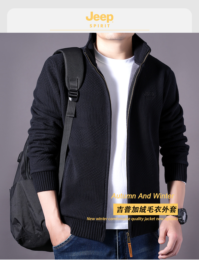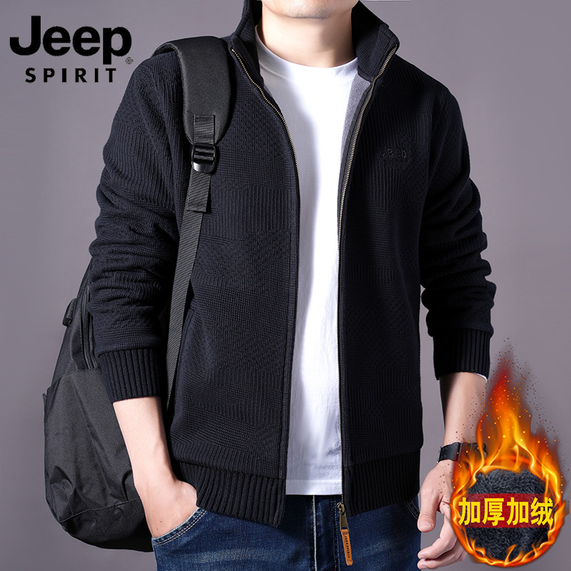 JEEPSPIRIT 스웨터 가을과 겨울 남성 스웨터 두꺼운 따뜻한 기모 카디건 스웨터 코트 302스토어 가기