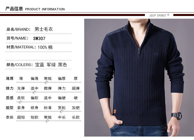 JEEPSPIRIT 스웨터 가을과 겨울 남자 풀오버 면 스웨터 코트 307스토어 가기