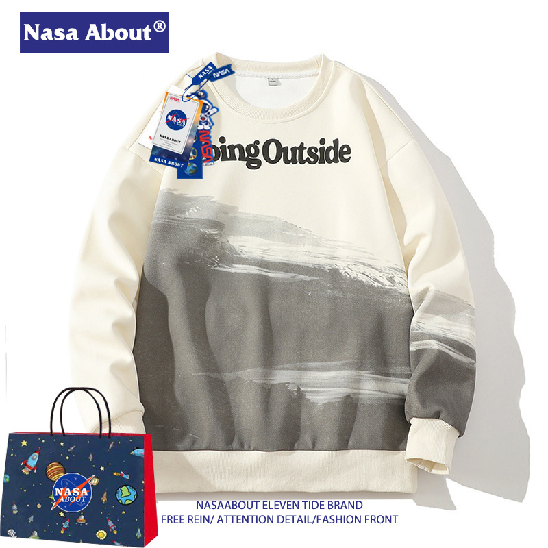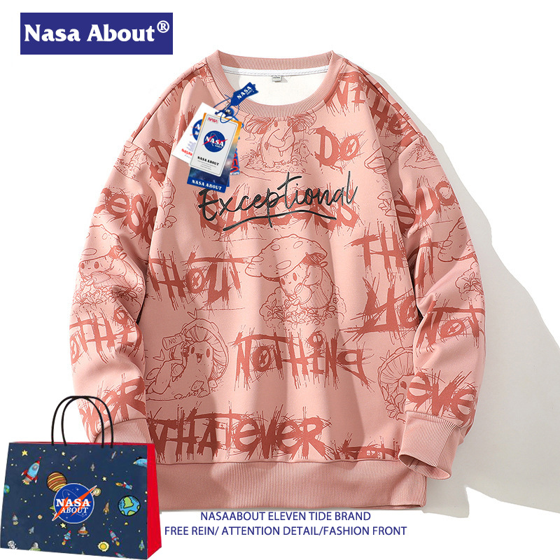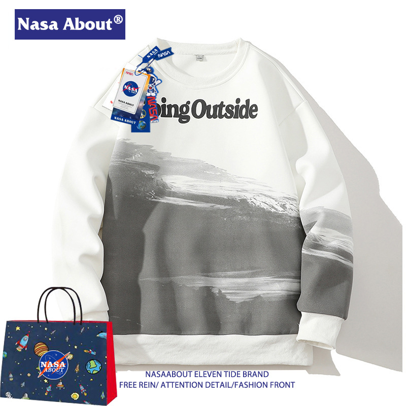 NASA 봄과 가을 새로운 패션 브랜드 전체 인쇄 스웨트 셔츠 남녀 라운드 넥 캐주얼 긴 소매 티셔츠 올 매치 루즈 탑스토어 가기