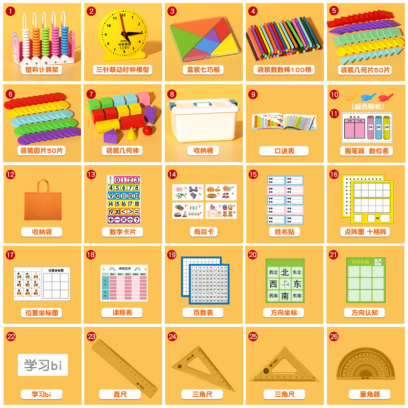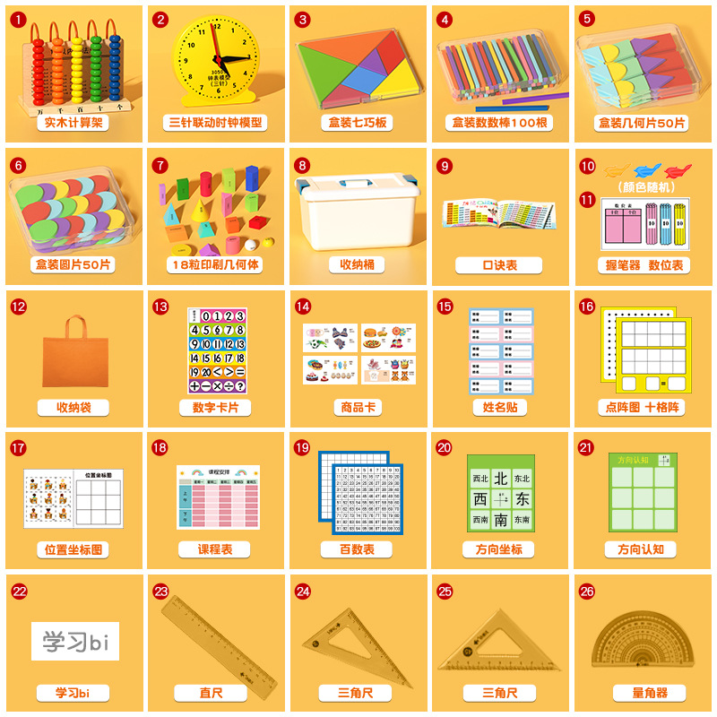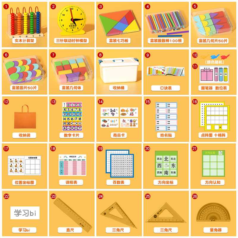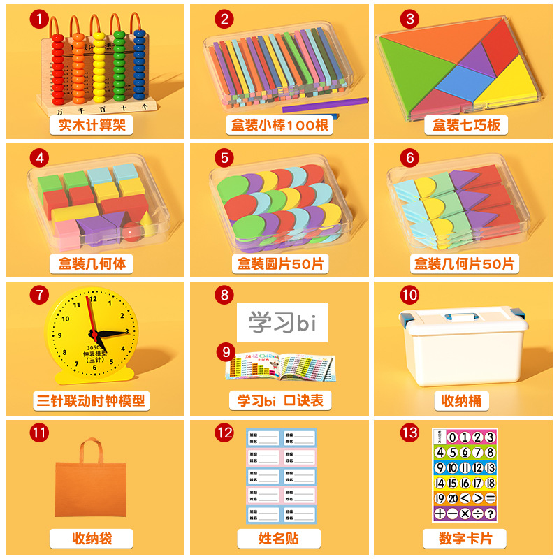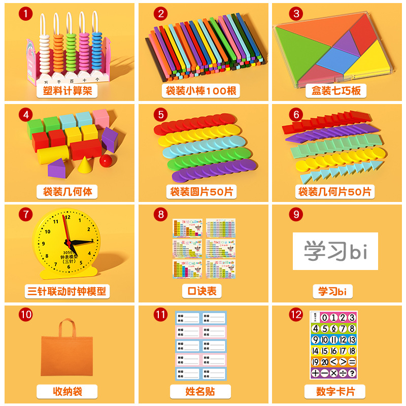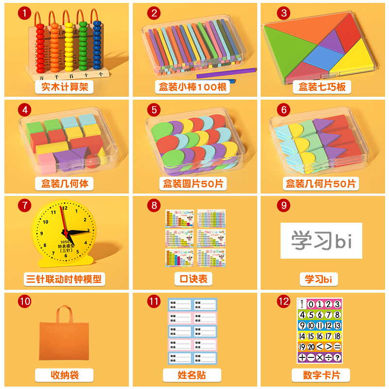 작은 스틱 카운터 학습 도구 상자 세트 상위 및 하위 볼륨 2 학년 tangram 학습 용품 1 학년 수학 교육 보조스토어 가기