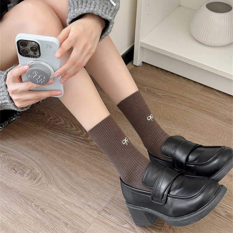 양말 여성의 봄과 가을 중간 길이 양말 순수 코튼 보우 미우 바람 수직 스택 느슨한 입 추적없는 임신 한 어머니의 달 양말
