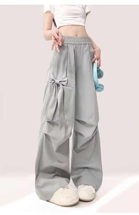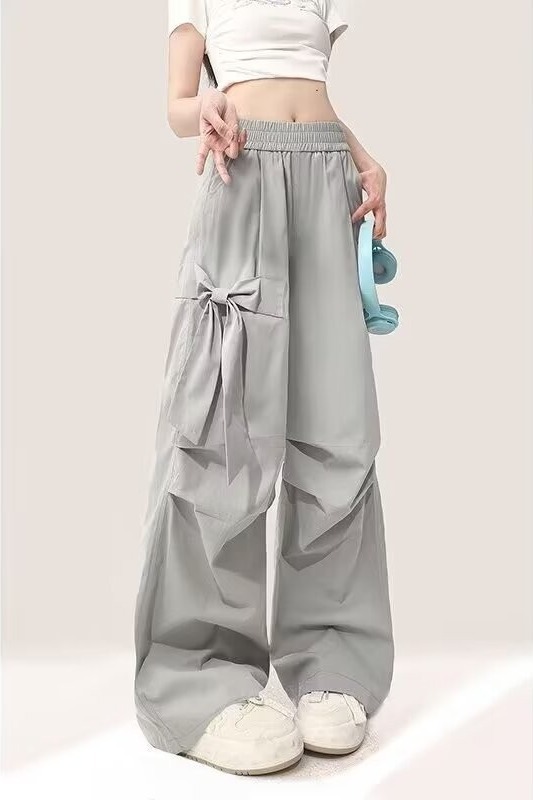 디자인 센스 활 빠른 건조 회색 작업복 캐주얼 바지 여성의 2024 새로운 높은 허리 느슨한 넓은 다리 바지스토어 가기