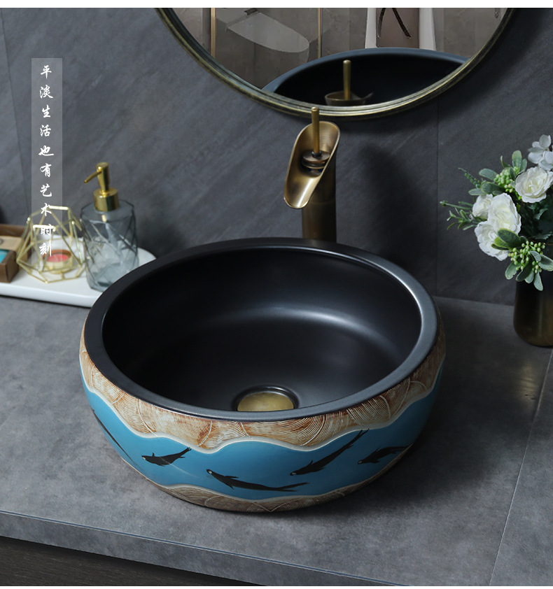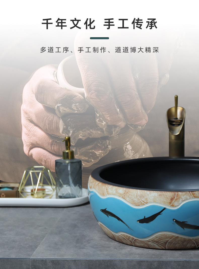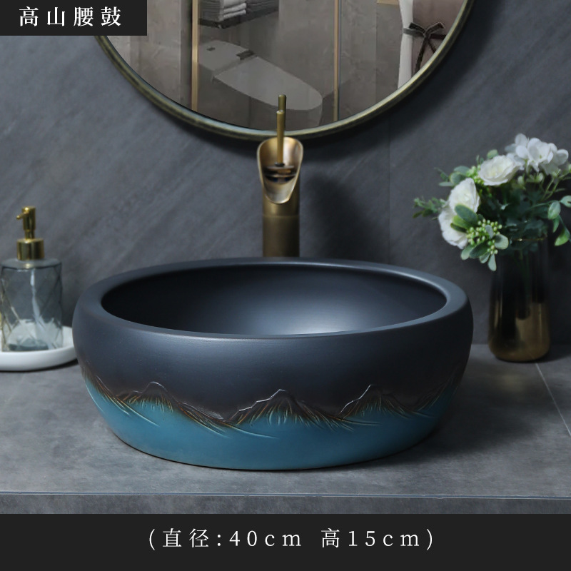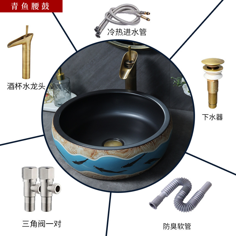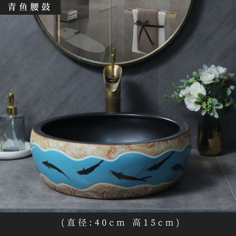 Jingdezhen 세라믹 테이블 분지 세탁기 빈티지 라운드 아트 분지 가정용 욕실 발코니 워시 분지 단일 분지