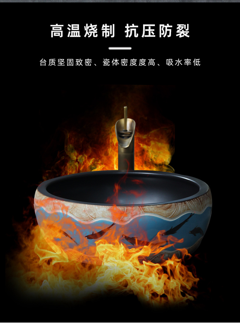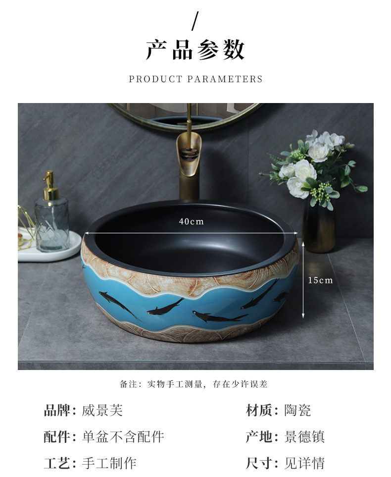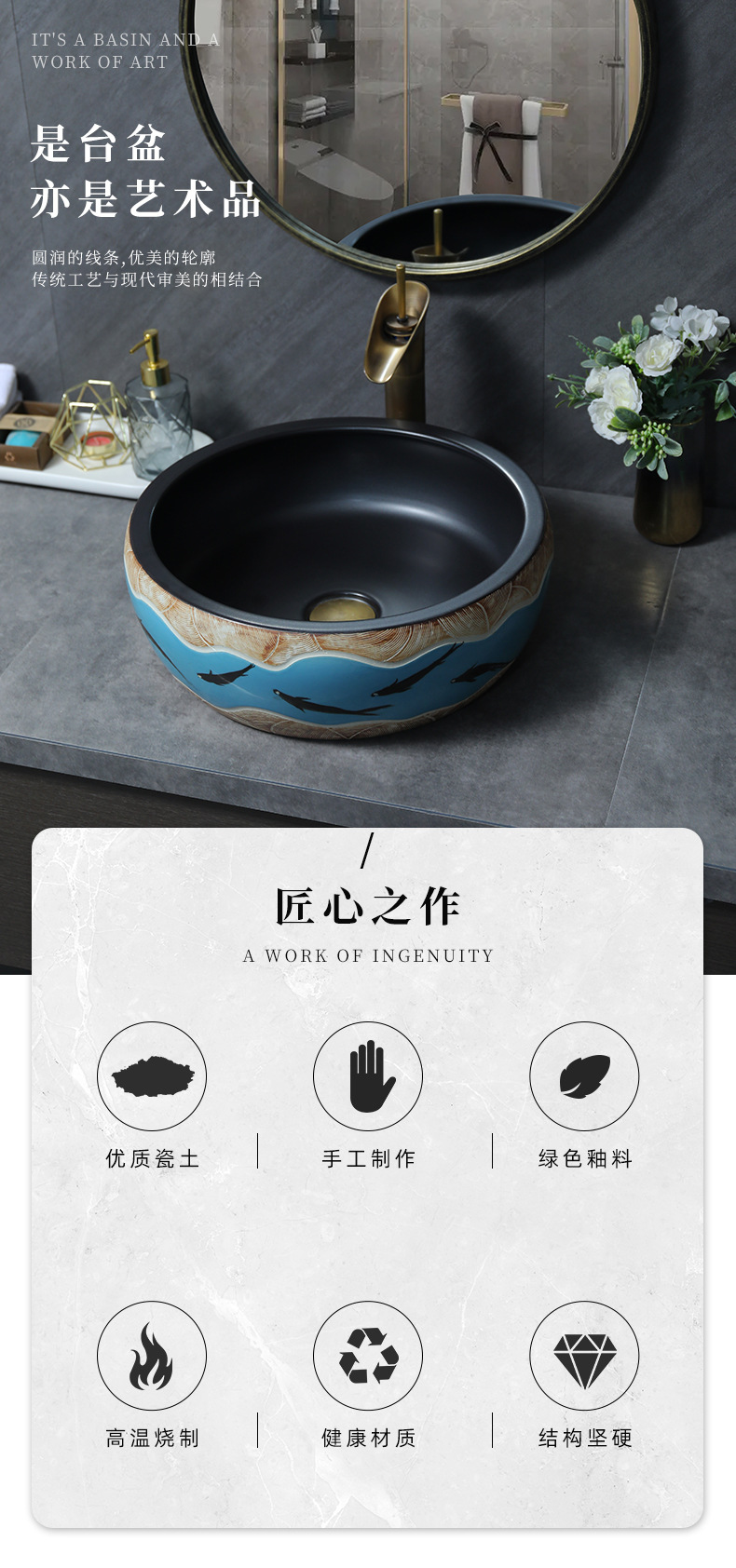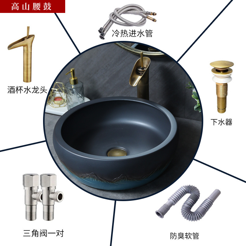 Jingdezhen 세라믹 테이블 분지 세탁기 빈티지 라운드 아트 분지 가정용 욕실 발코니 워시 분지 단일 분지