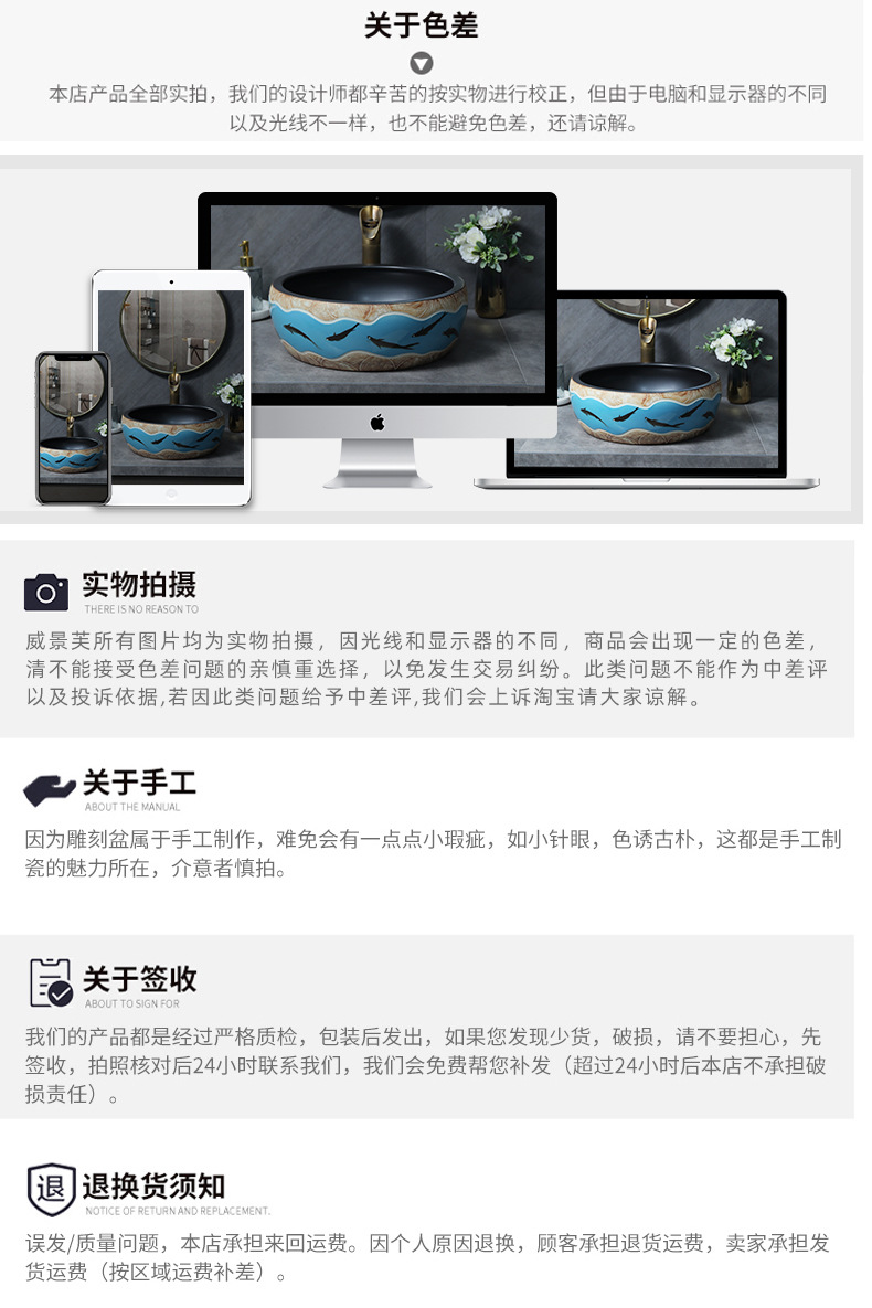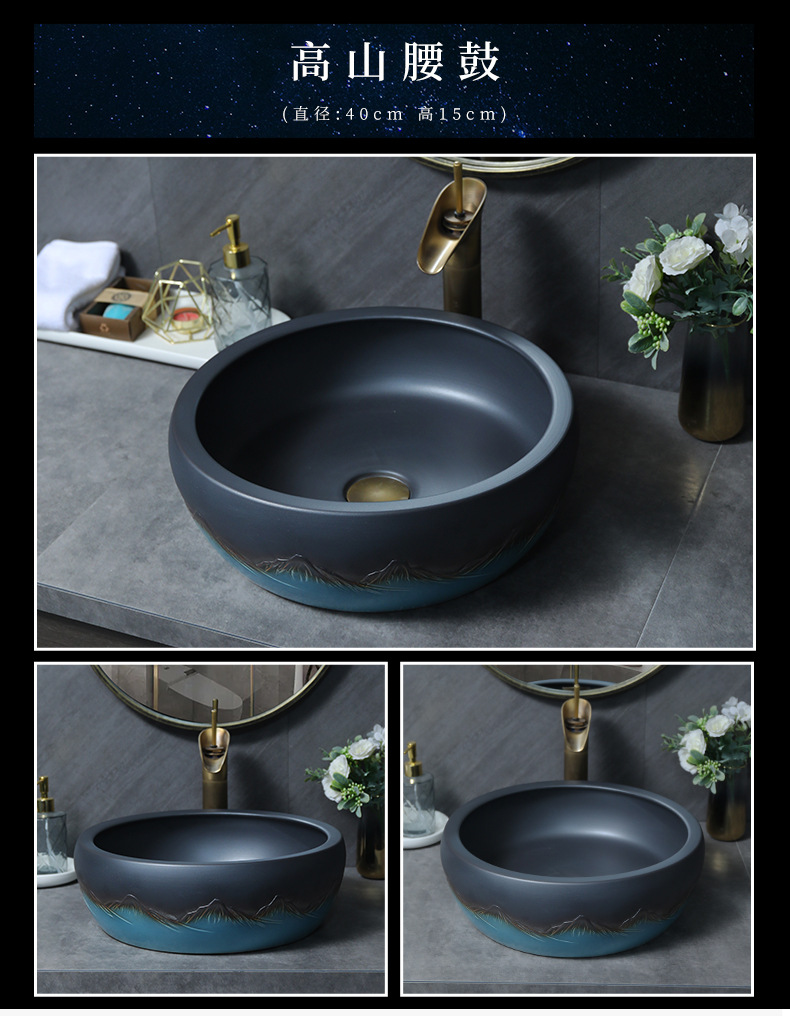 Jingdezhen 세라믹 테이블 분지 세탁기 빈티지 라운드 아트 분지 가정용 욕실 발코니 워시 분지 단일 분지스토어 가기
