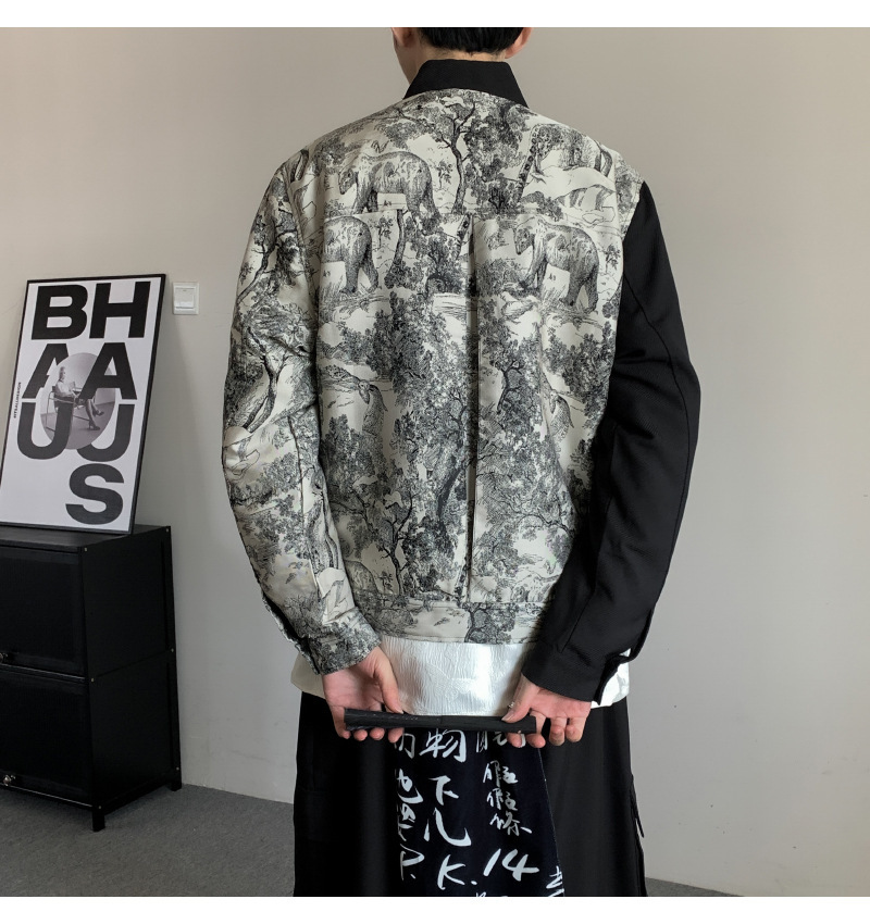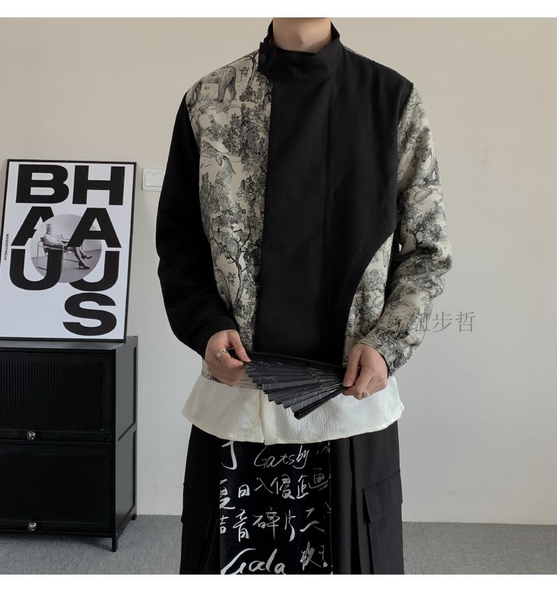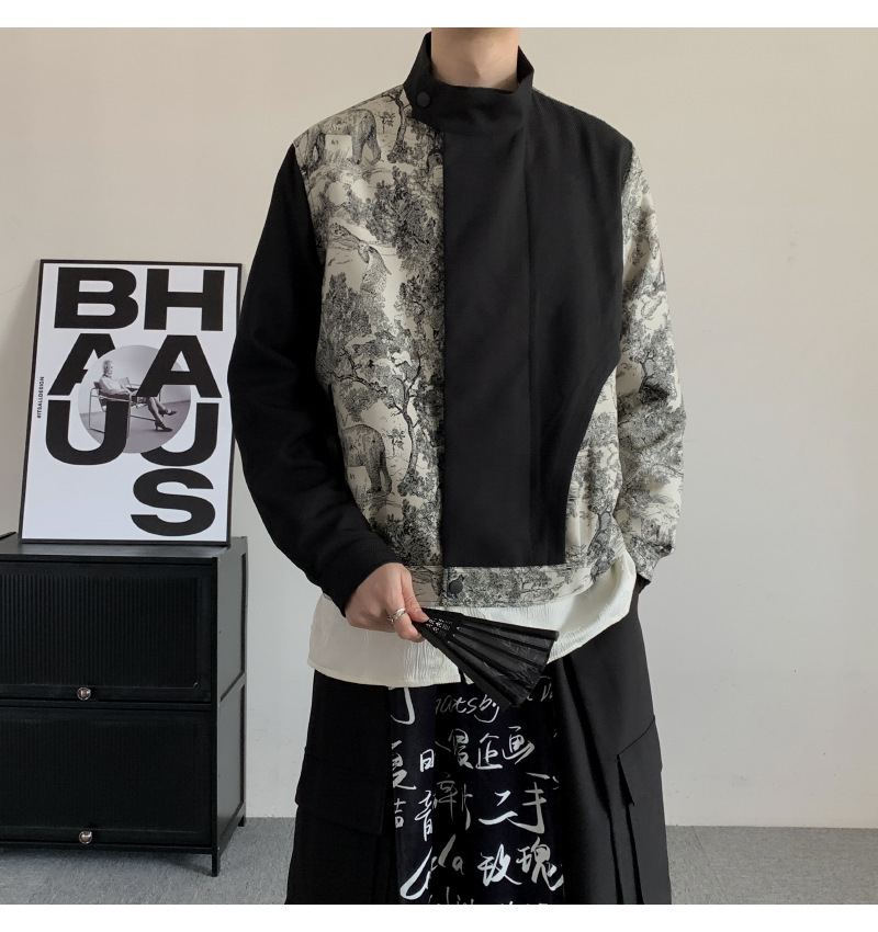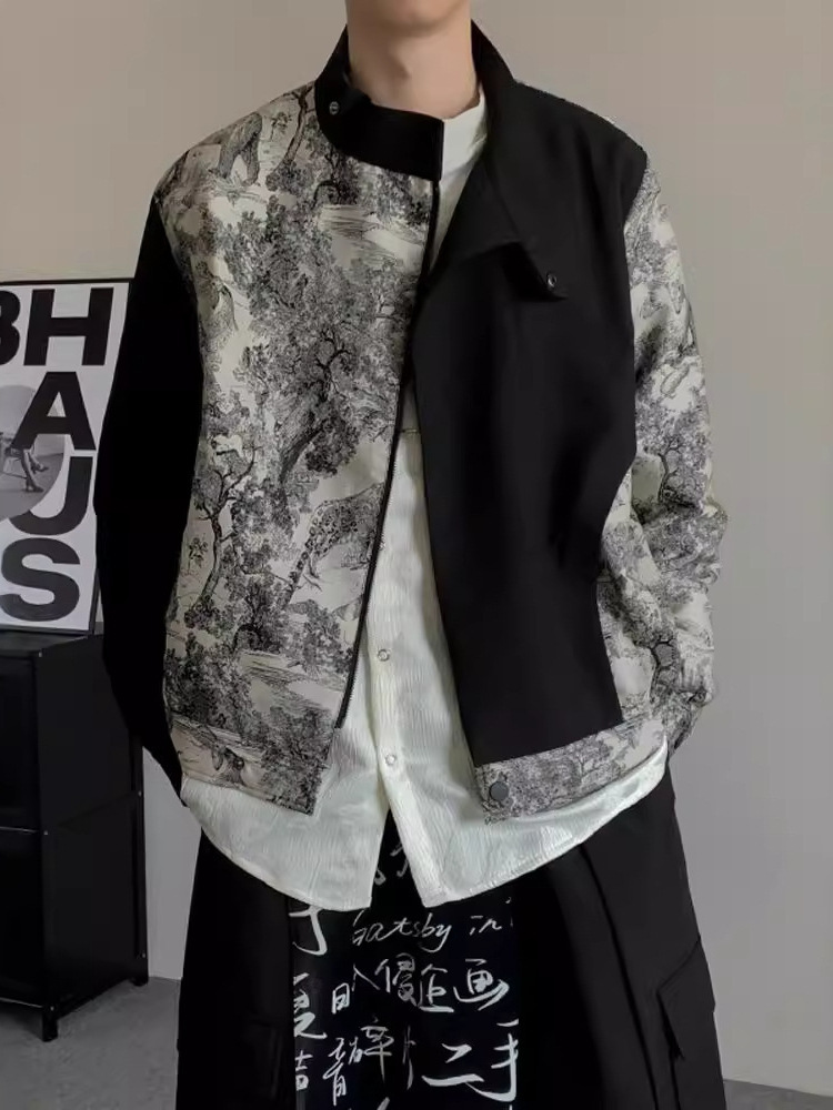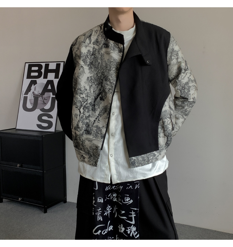 2024 가을 새로운 새로운 중국 스타일 스티칭 칼라 자켓 남성 플러스 사이즈 잉크 페인팅 전국 스타일 재킷 트렌디스토어 가기