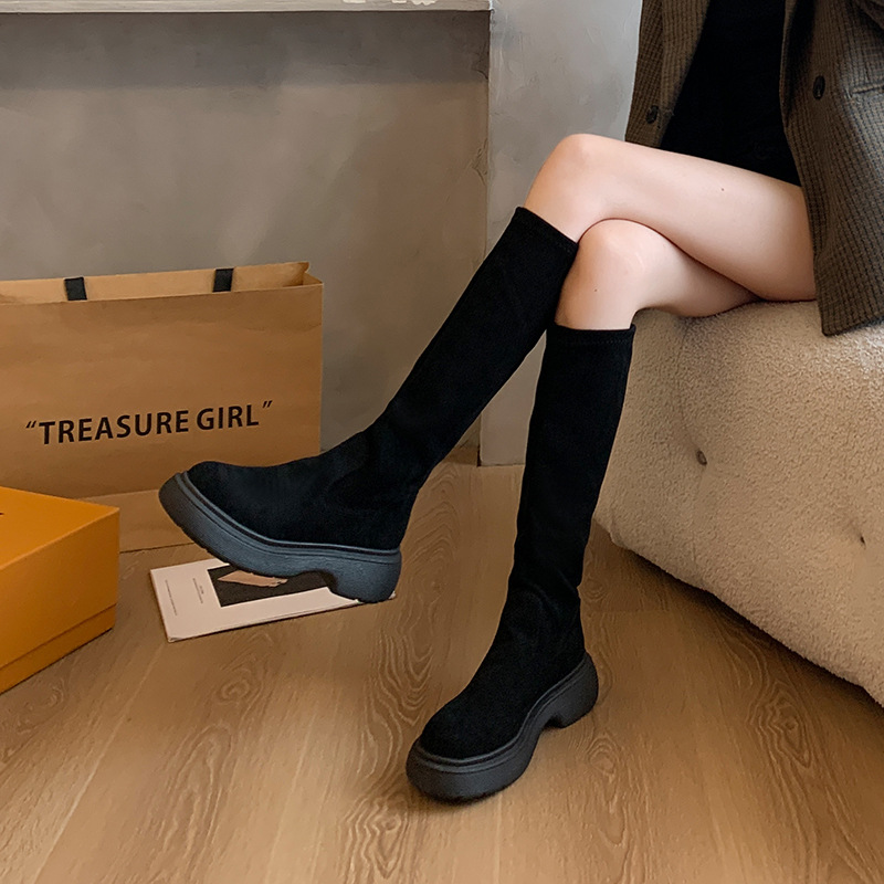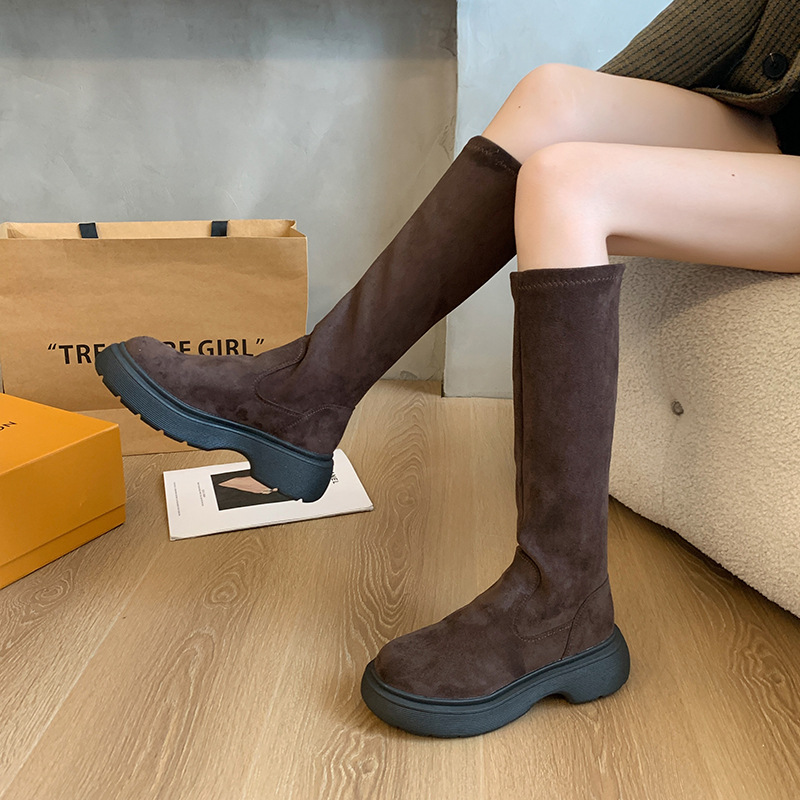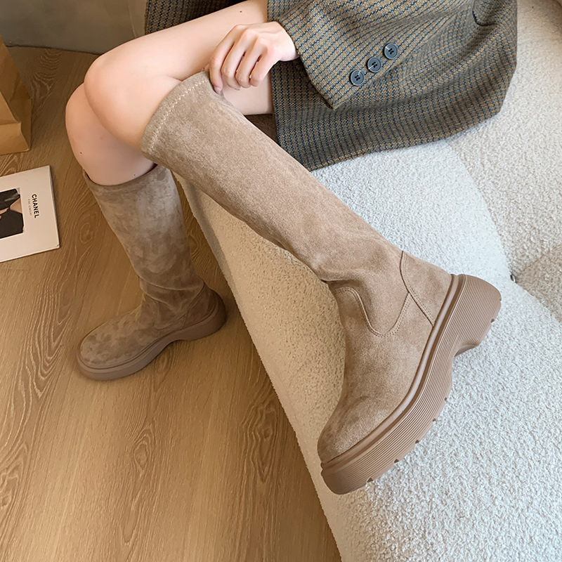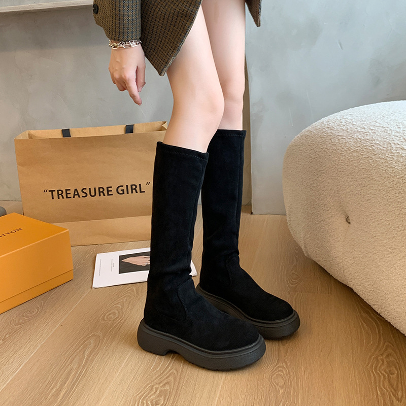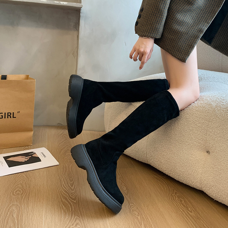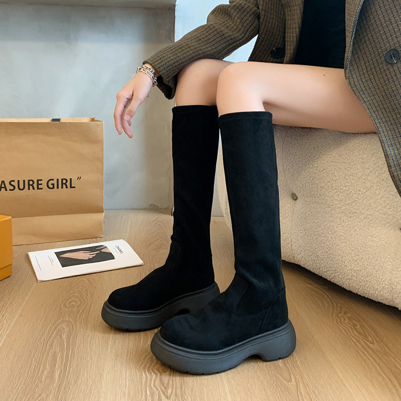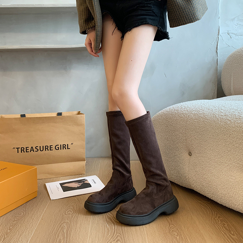 스웨이드 롱 부츠 2024 가을/겨울 새롭지 만 무릎 롱 부츠 레트로 하이 부츠 기모 스트레치 나이트 부츠 여성스토어 가기