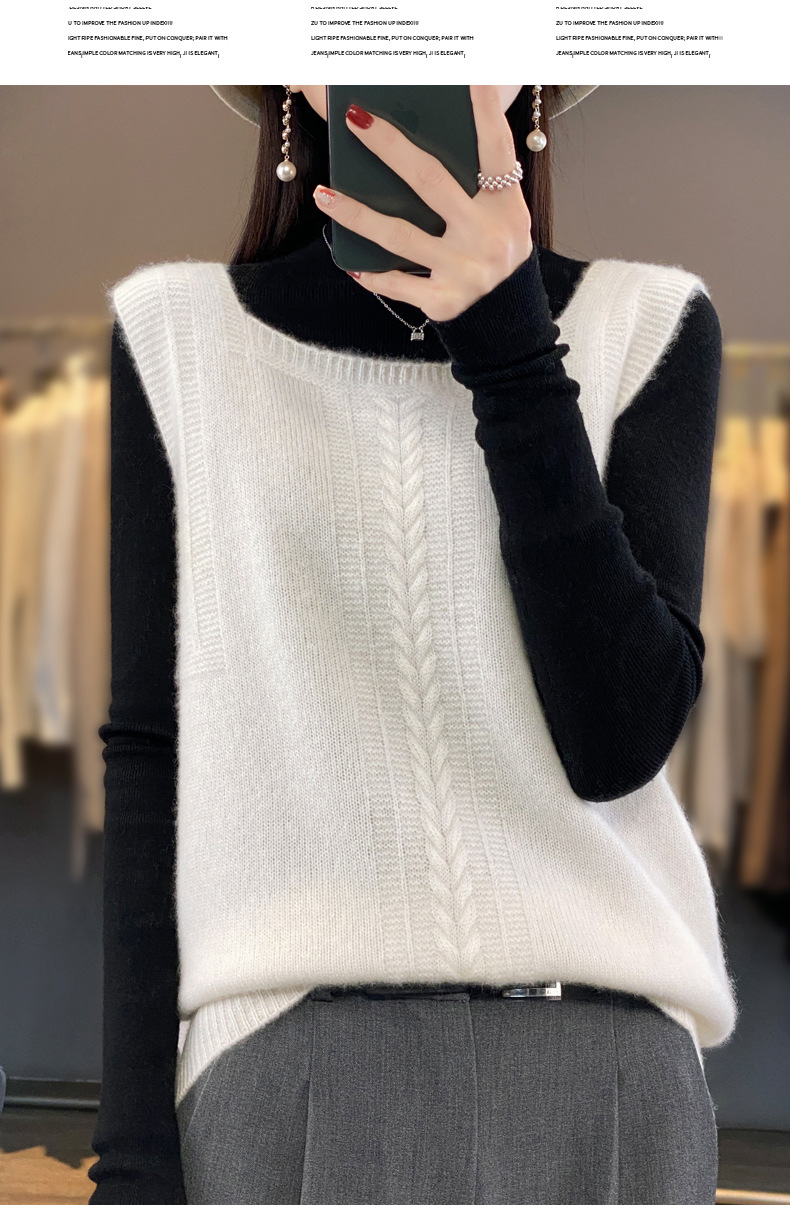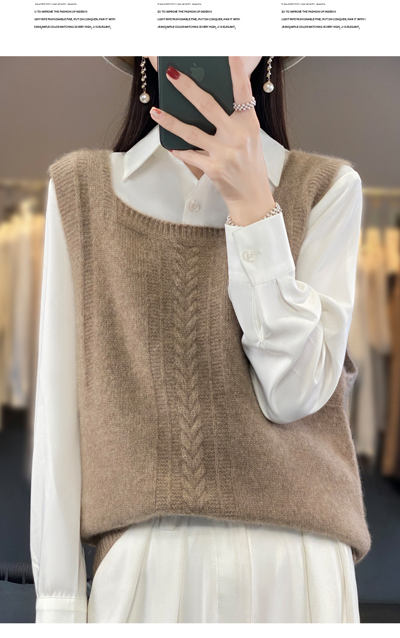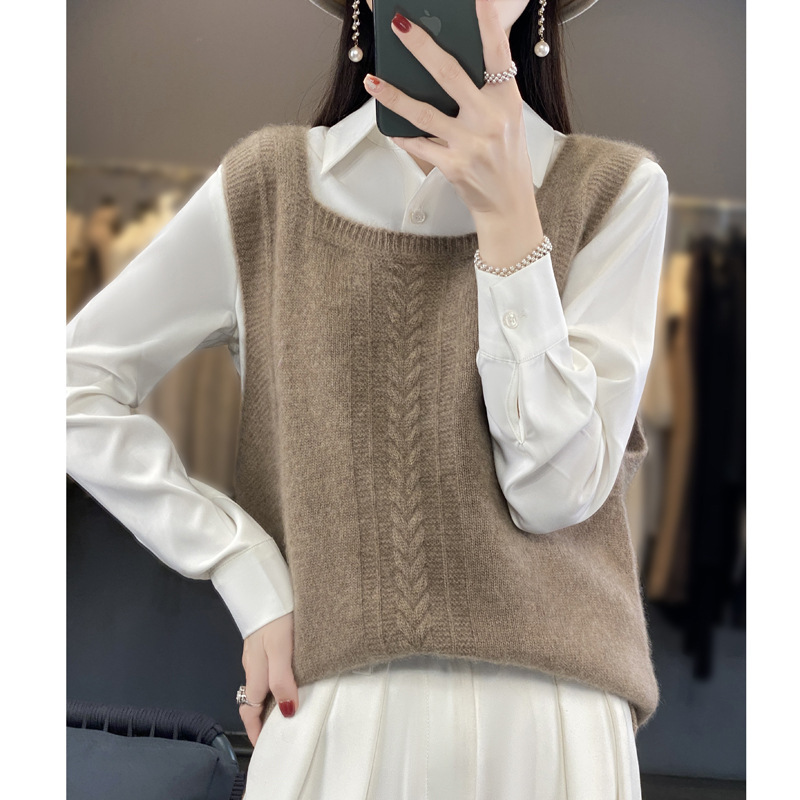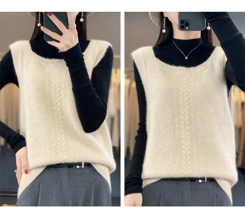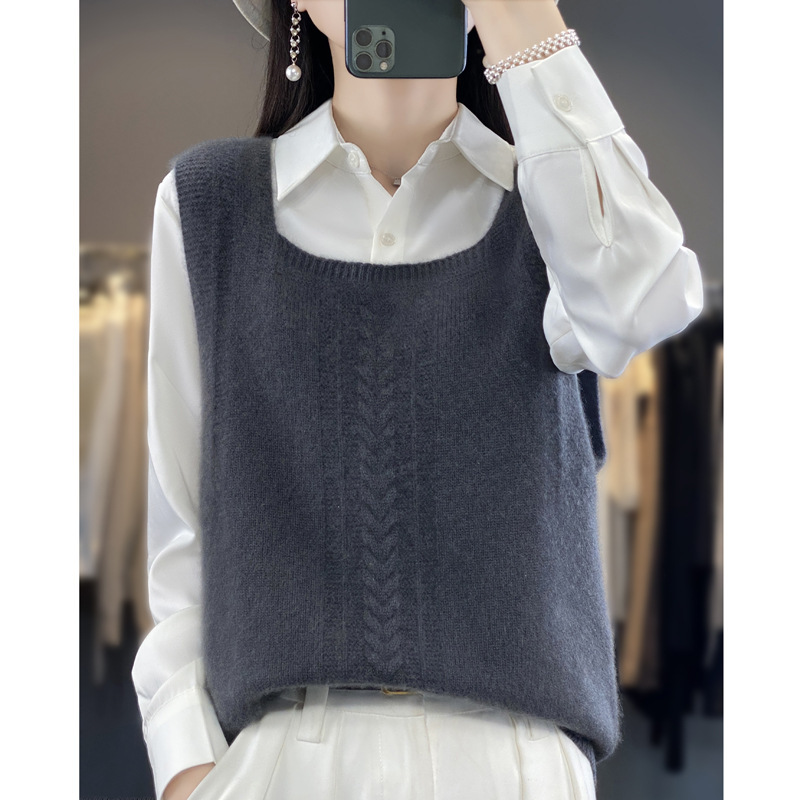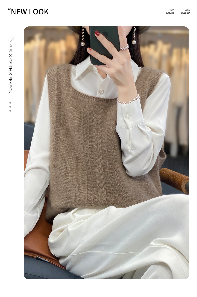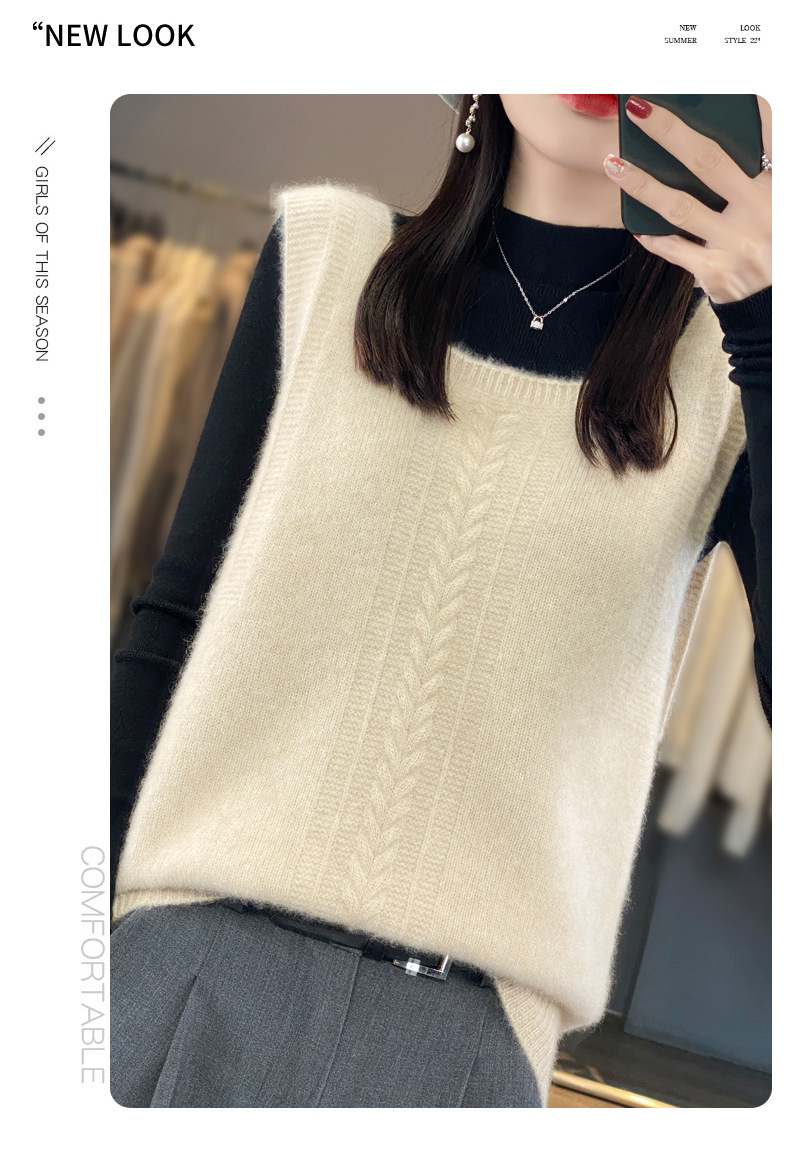 2024 년 가을과 겨울 새로운 양모 니트 조끼 여성 아우터웨어 프렌치 스택 느슨한 민소매 스웨터 웨이스트 코트