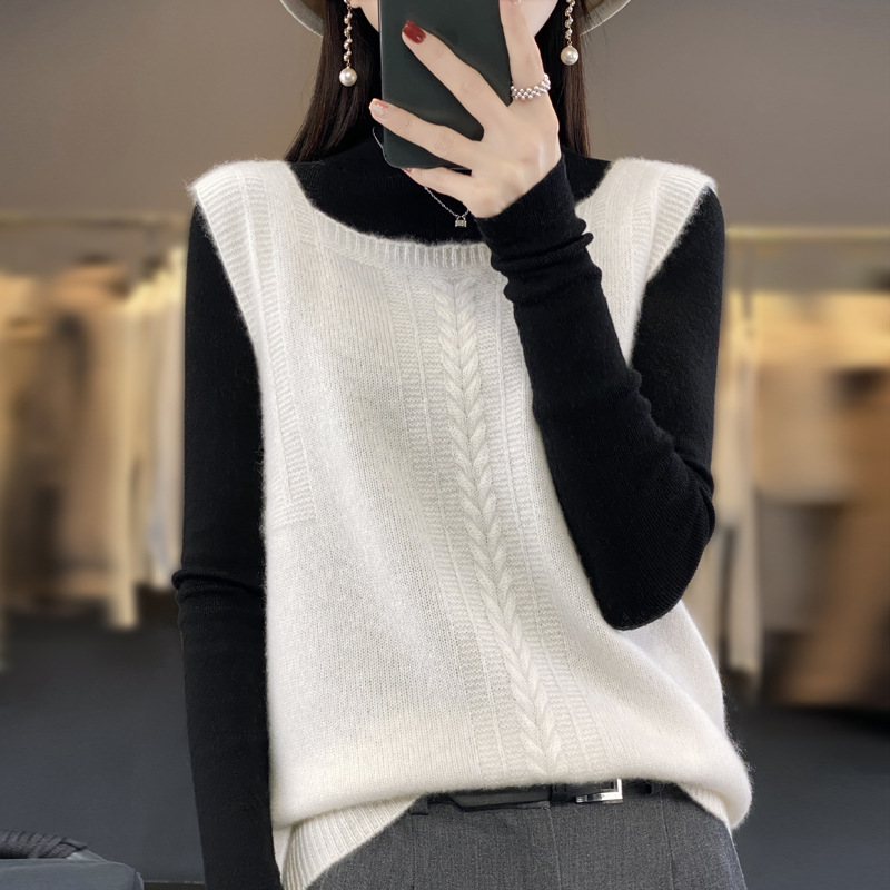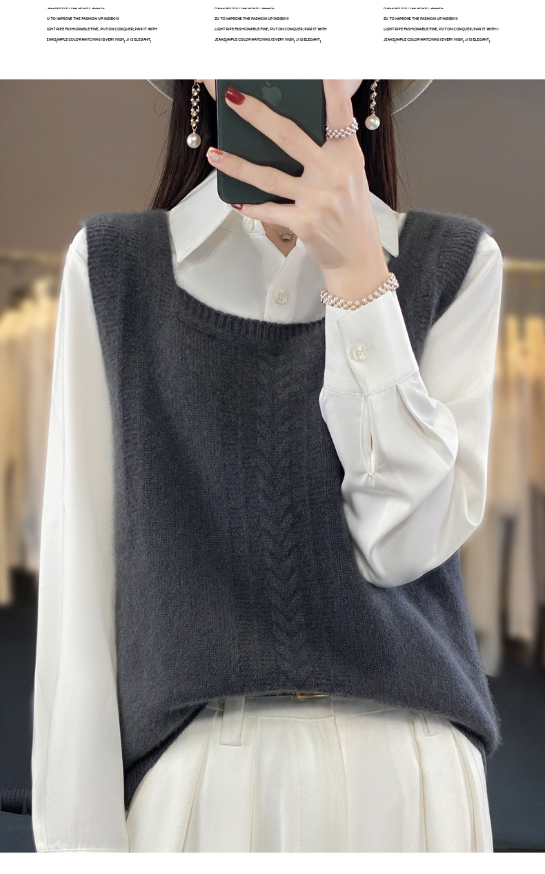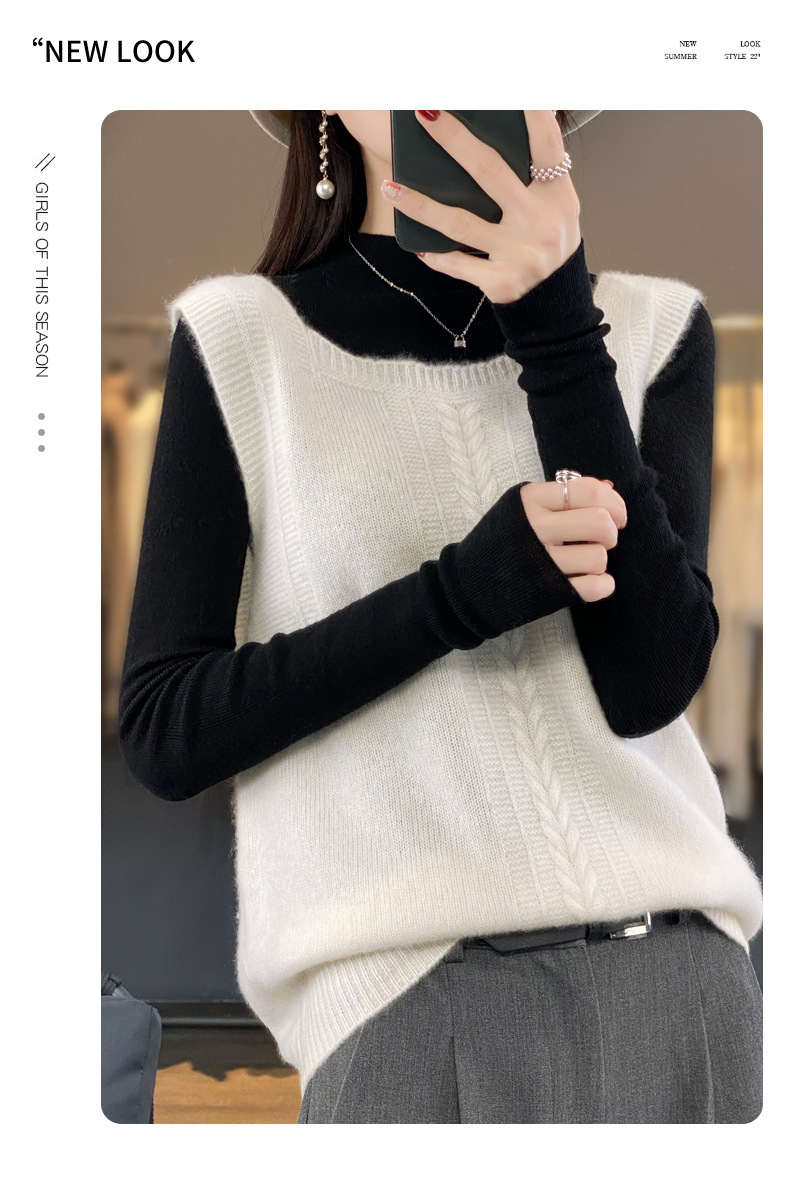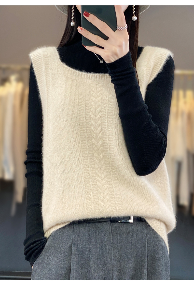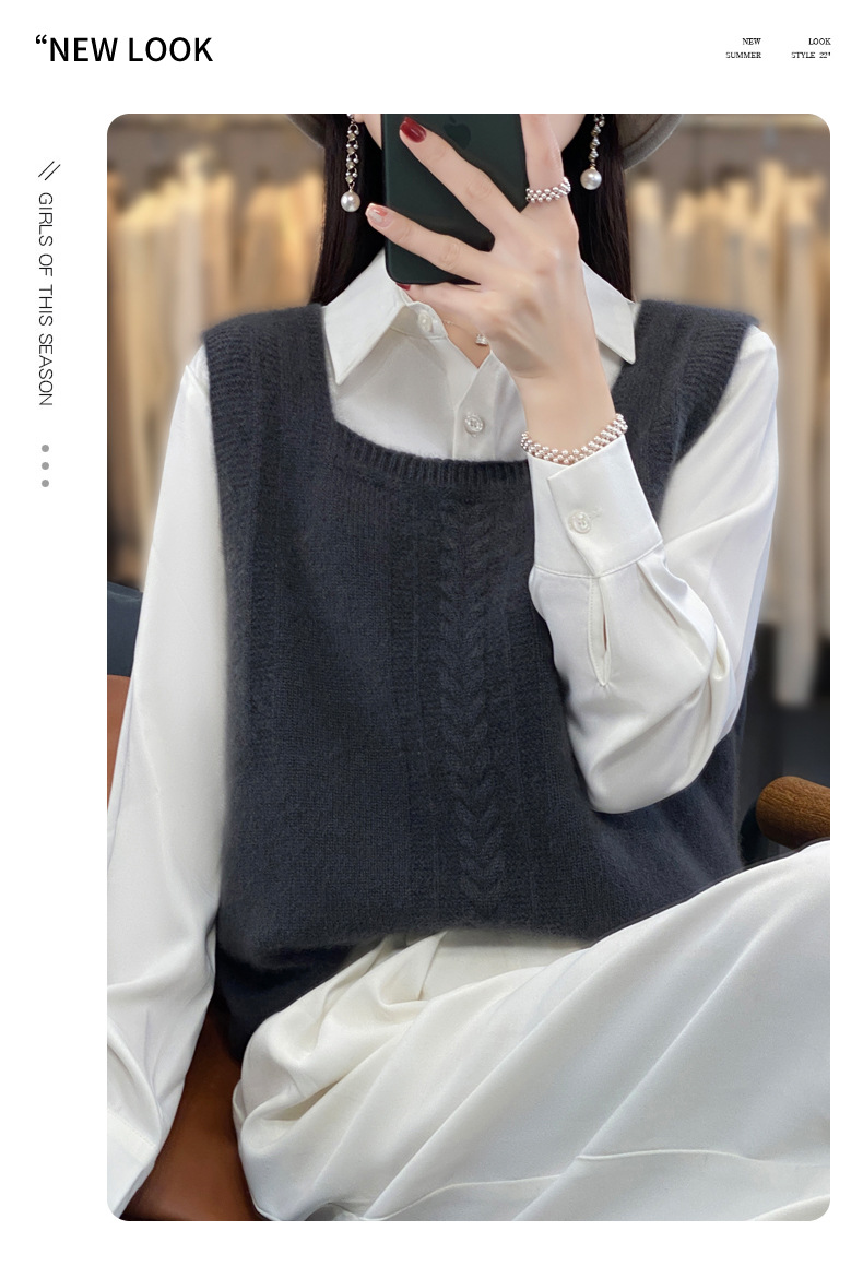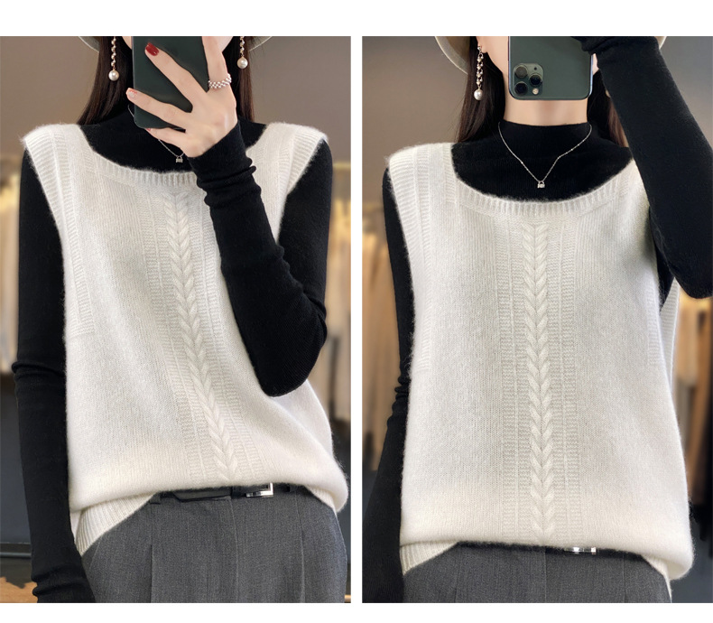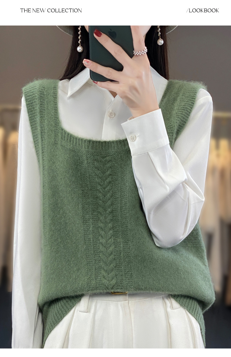 2024 년 가을과 겨울 새로운 양모 니트 조끼 여성 아우터웨어 프렌치 스택 느슨한 민소매 스웨터 웨이스트 코트