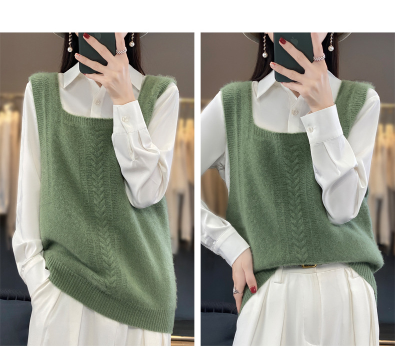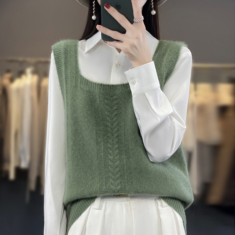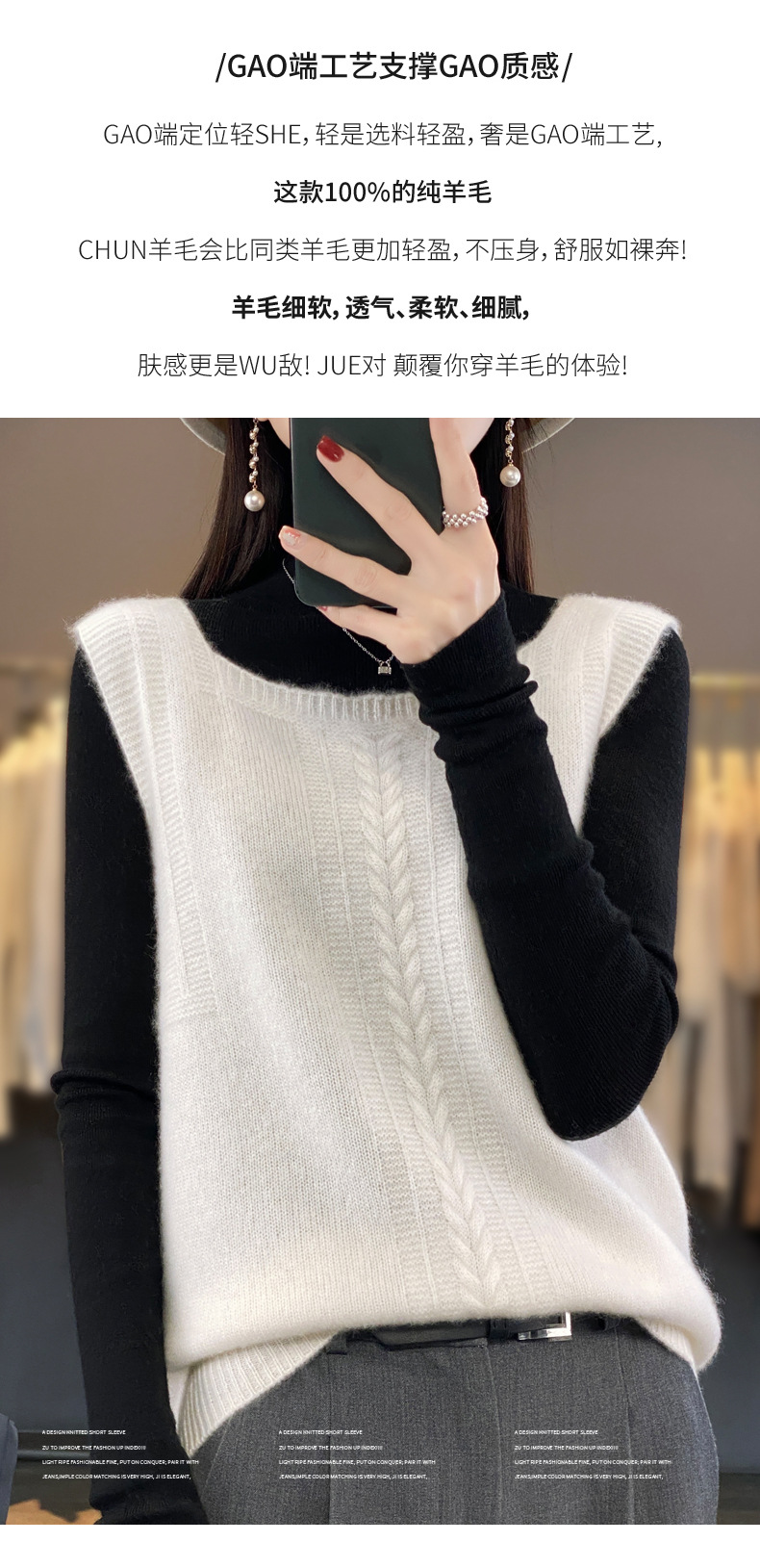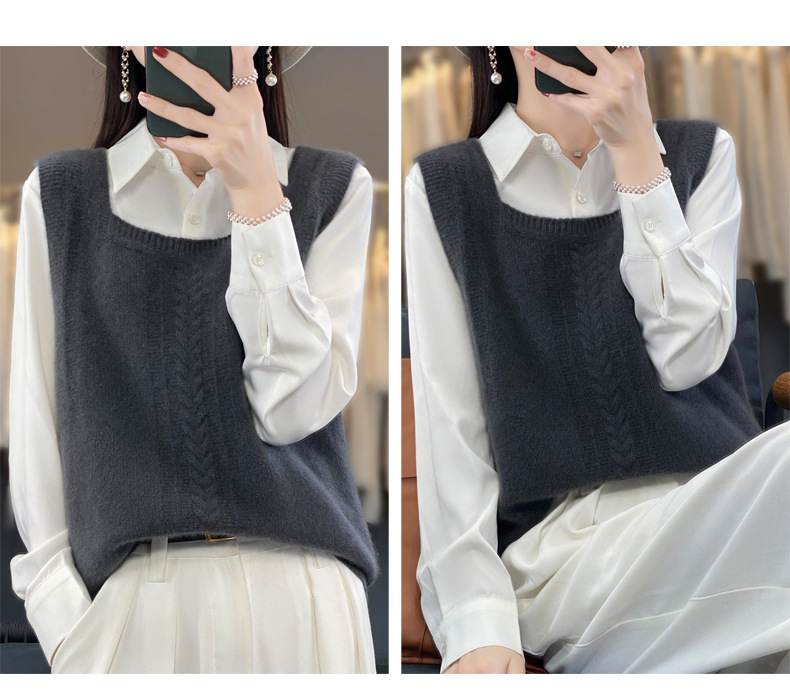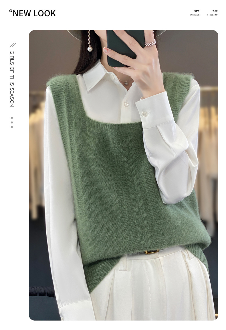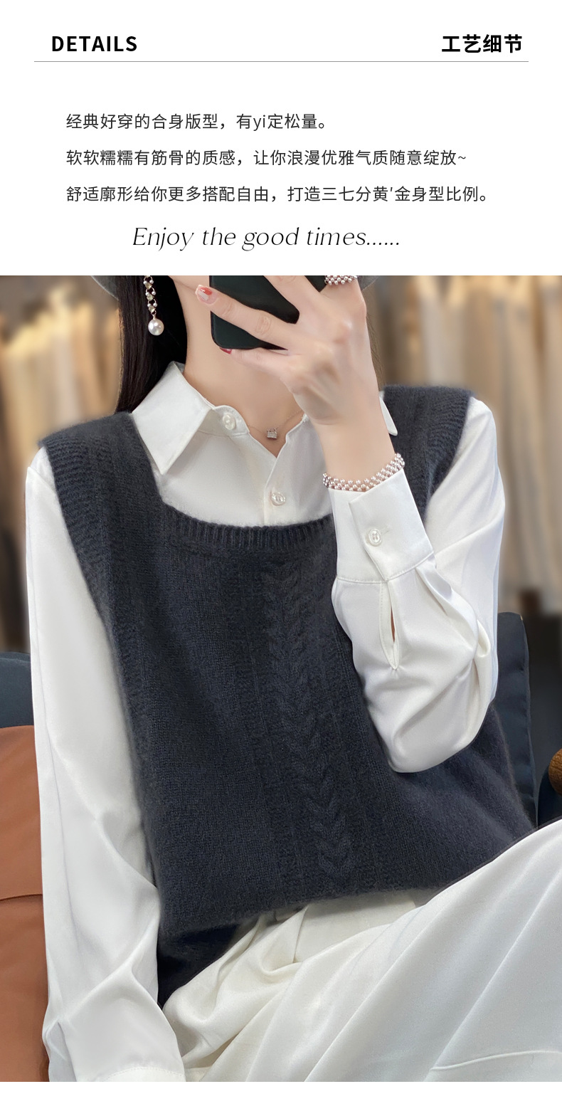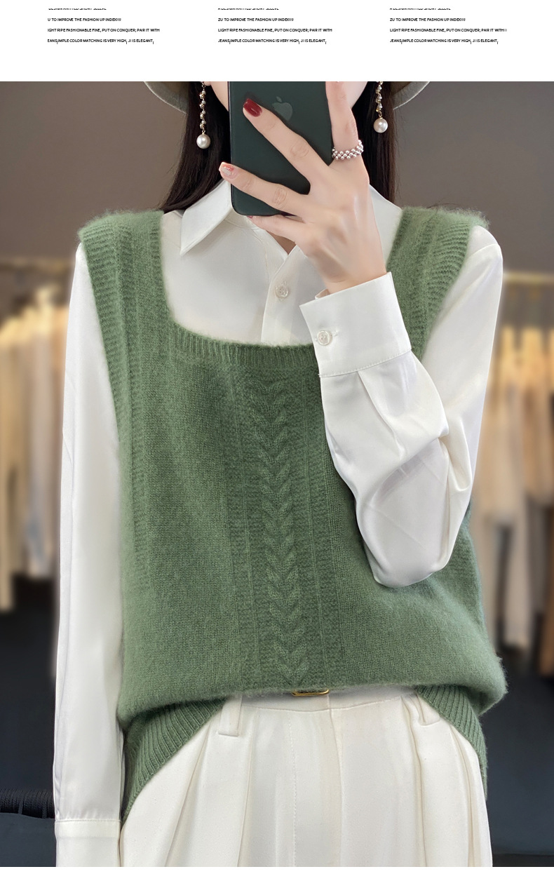 2024 년 가을과 겨울 새로운 양모 니트 조끼 여성 아우터웨어 프렌치 스택 느슨한 민소매 스웨터 웨이스트 코트
